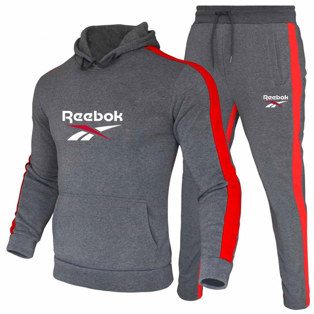 크로스 보더 컬러 매칭 세트 남자의 기모 캐주얼 스포츠 후드 인쇄 스웨터 스포츠 바지 세트 재고