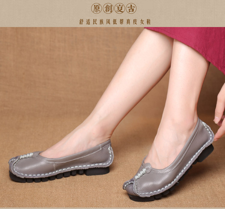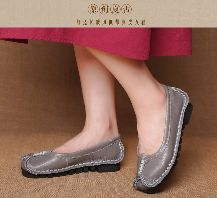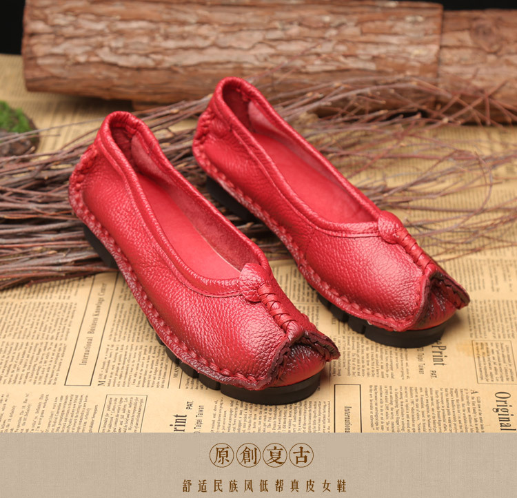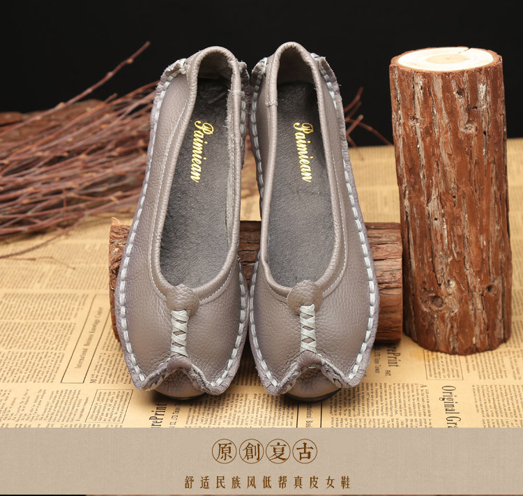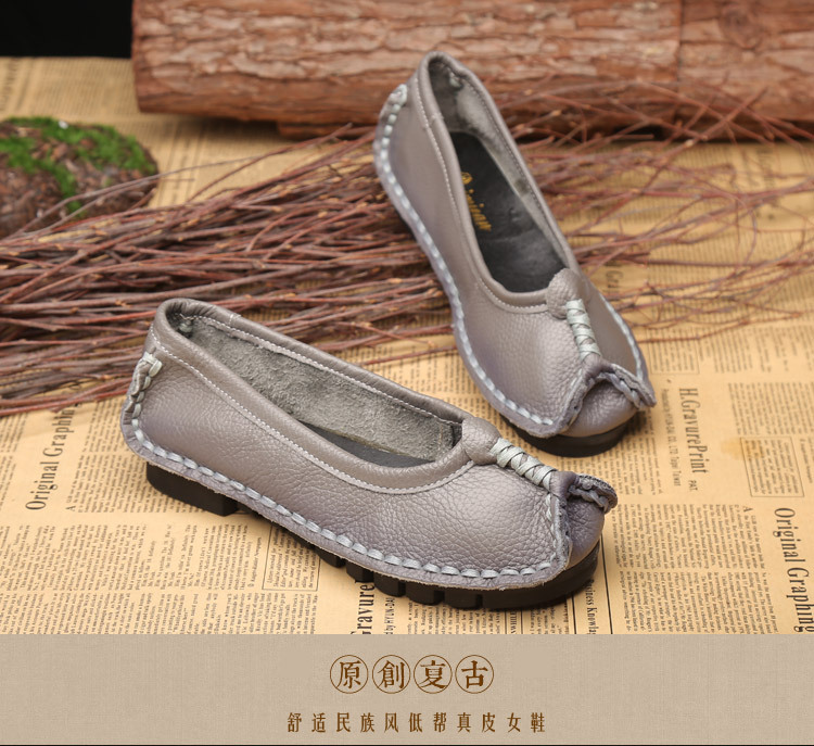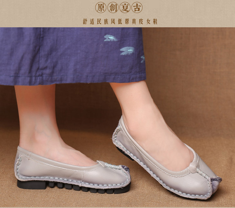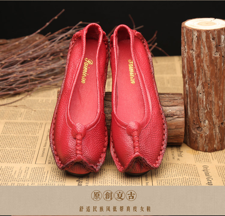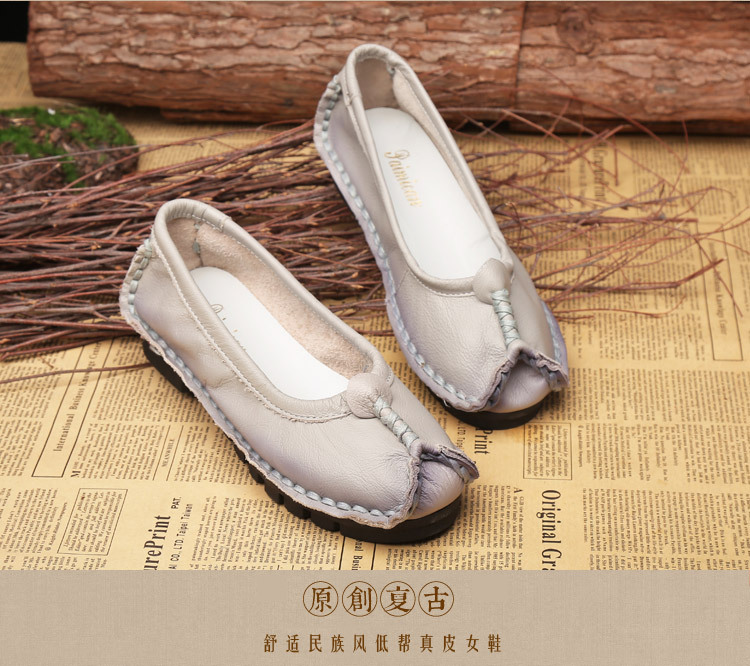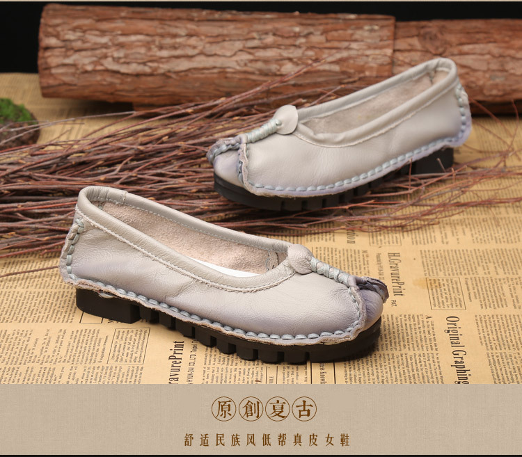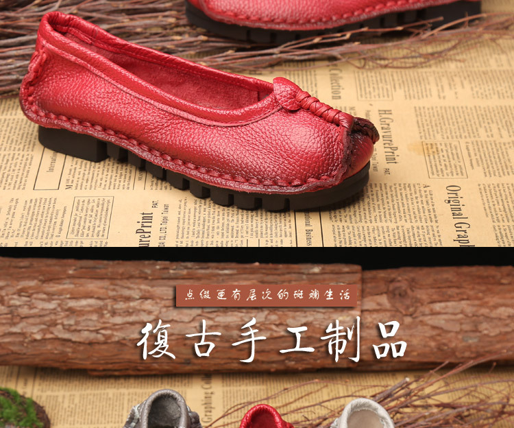 원래 문학 스타일 여성 신발 소가죽 라운드 발가락 수제 캐주얼 신발 레트로 플랫 가죽 신발 여성의 사계절 신발스토어 가기