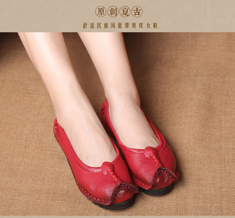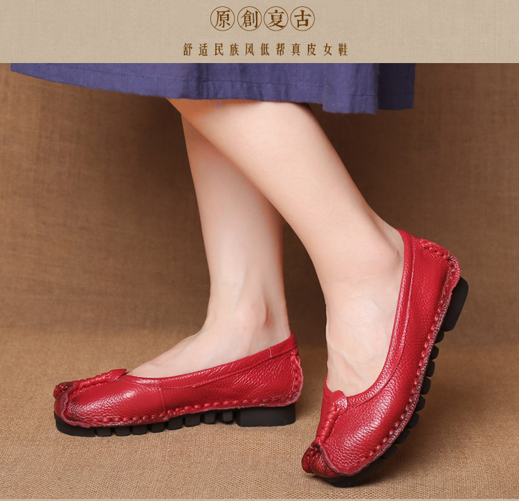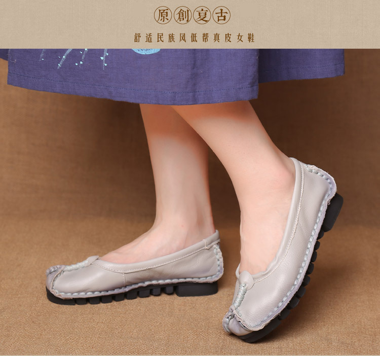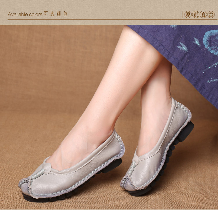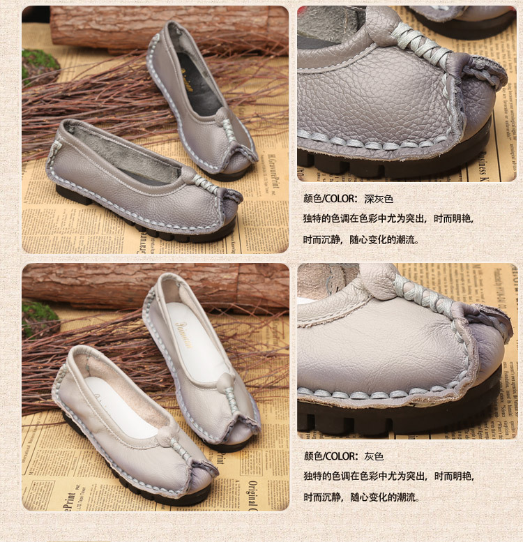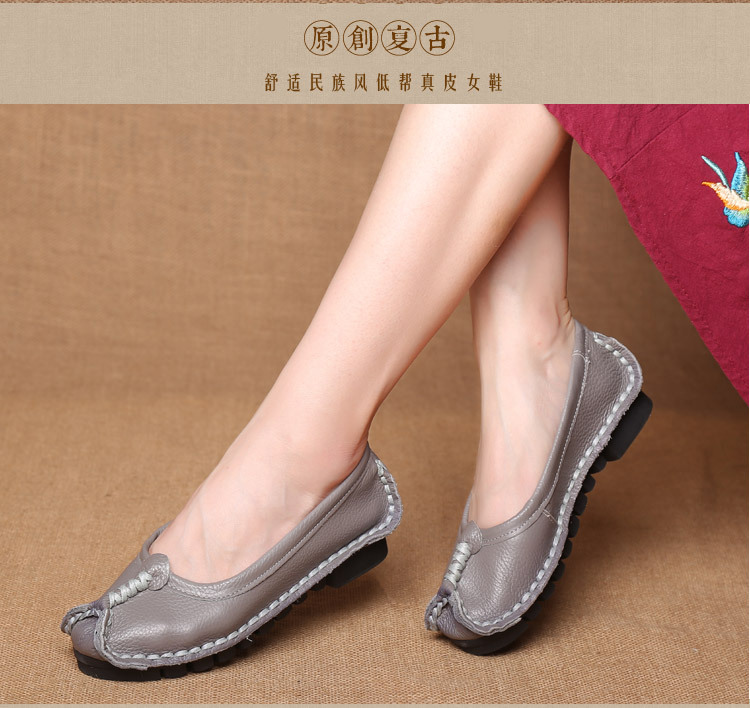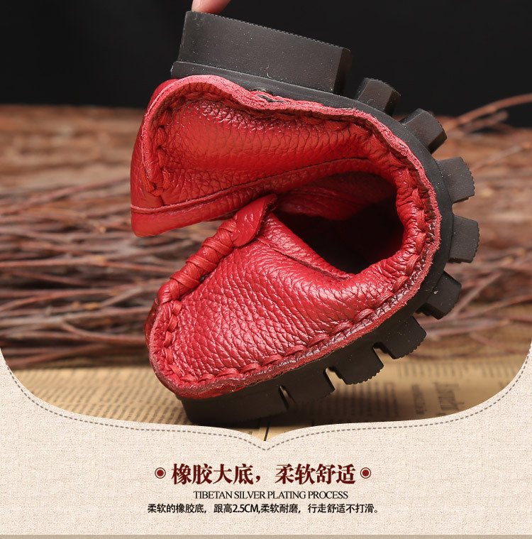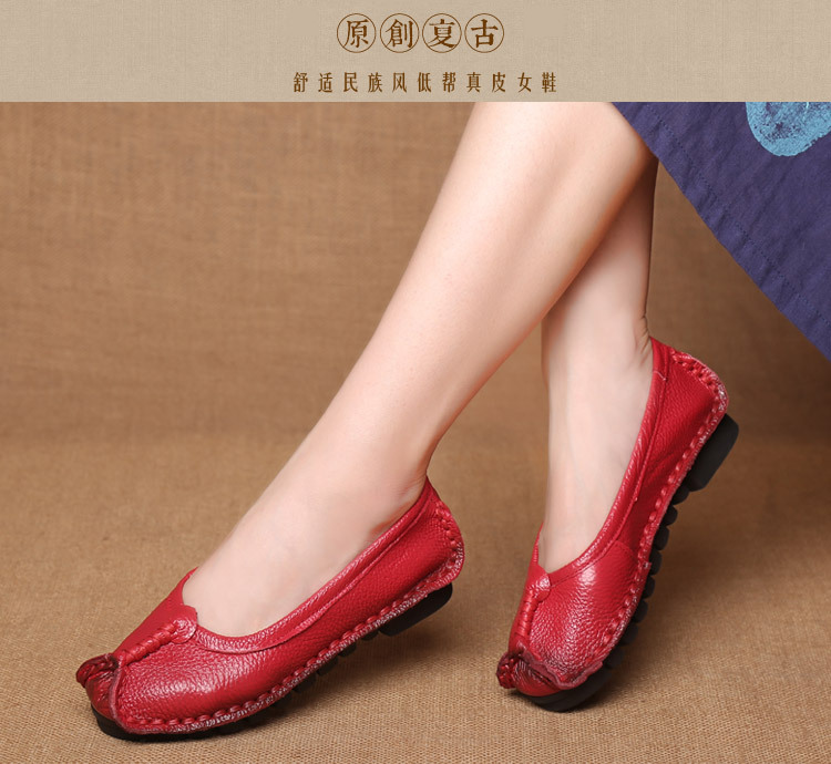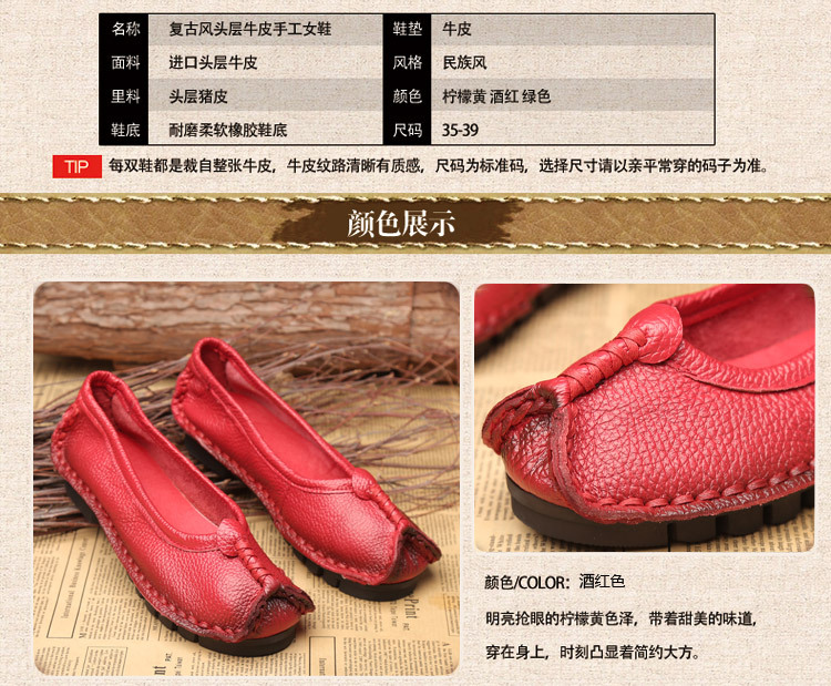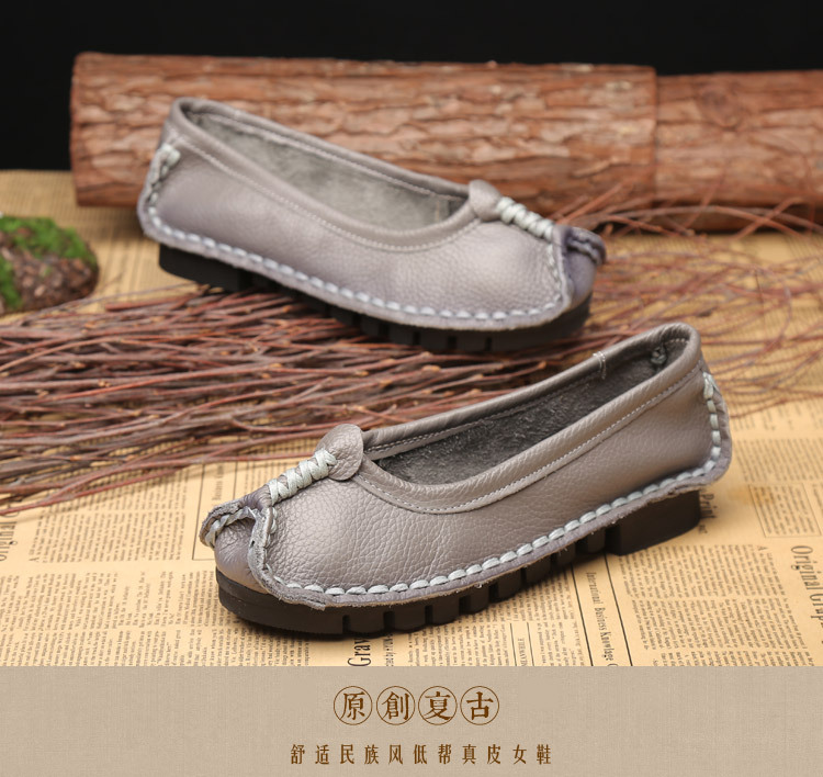 원래 문학 스타일 여성 신발 소가죽 라운드 발가락 수제 캐주얼 신발 레트로 플랫 가죽 신발 여성의 사계절 신발스토어 가기