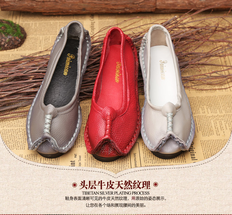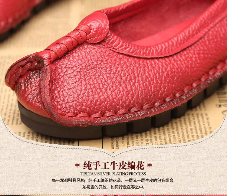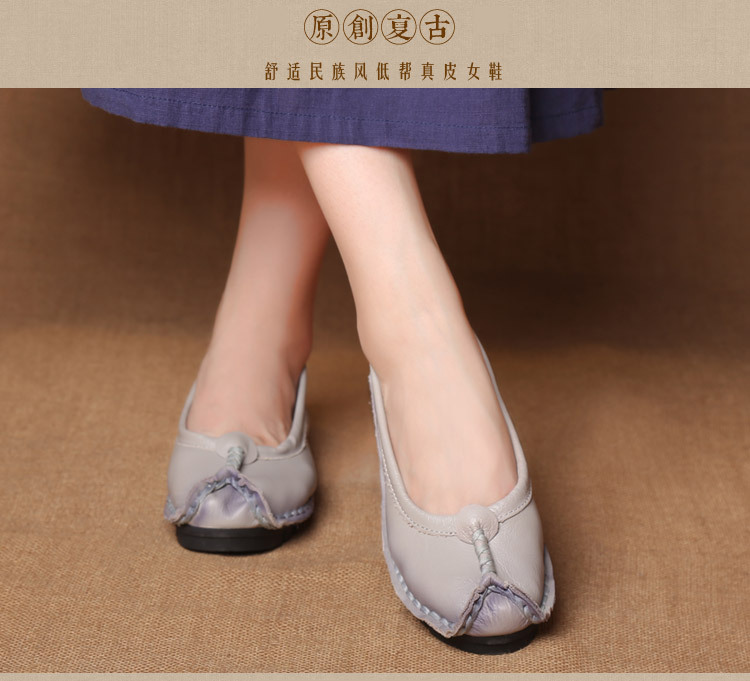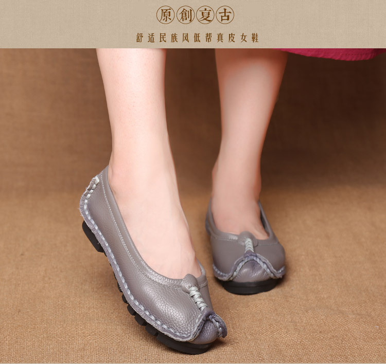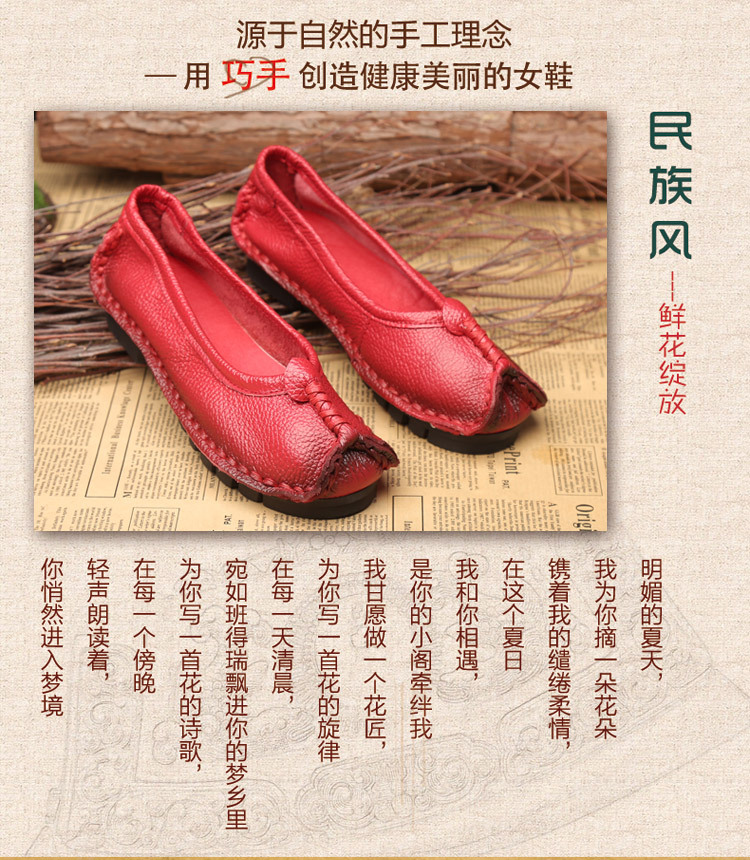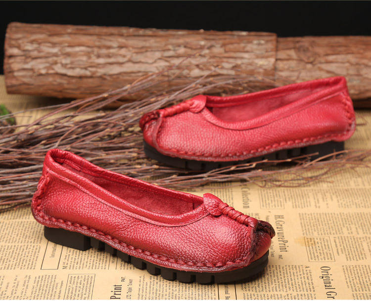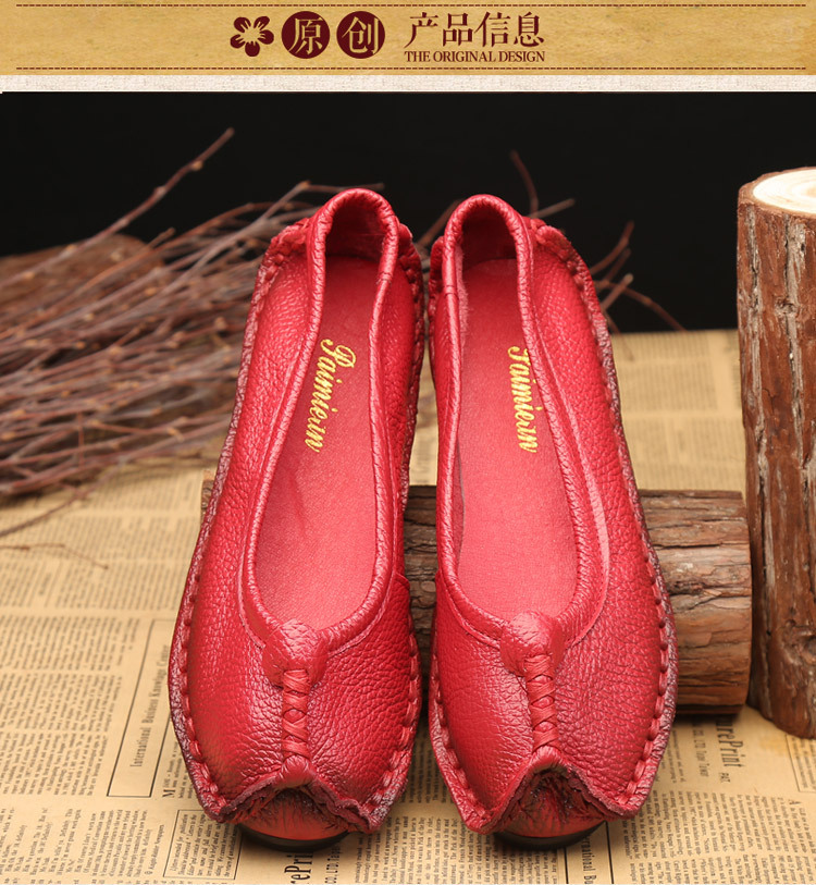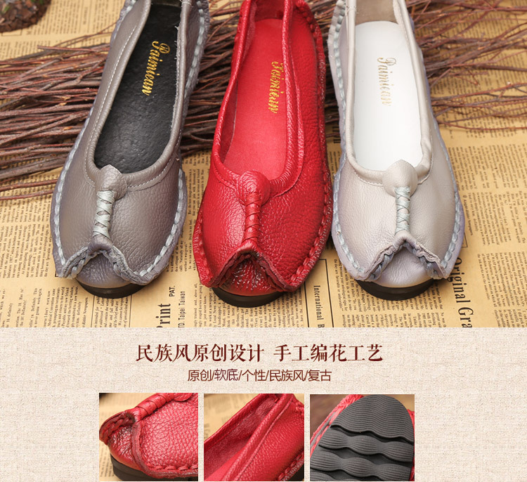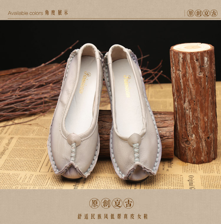 원래 문학 스타일 여성 신발 소가죽 라운드 발가락 수제 캐주얼 신발 레트로 플랫 가죽 신발 여성의 사계절 신발스토어 가기
