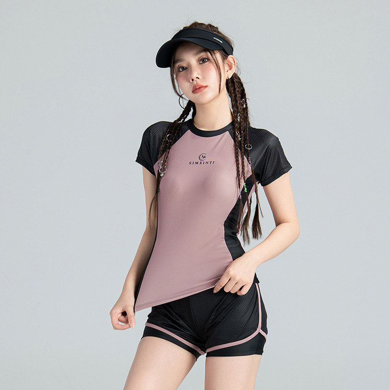 크로스보더 도매 스포츠 수영복 여성용 보수적 인 배꼽 덮음 슬리밍 스플릿 투피스 복서 학생 수영복스토어 가기