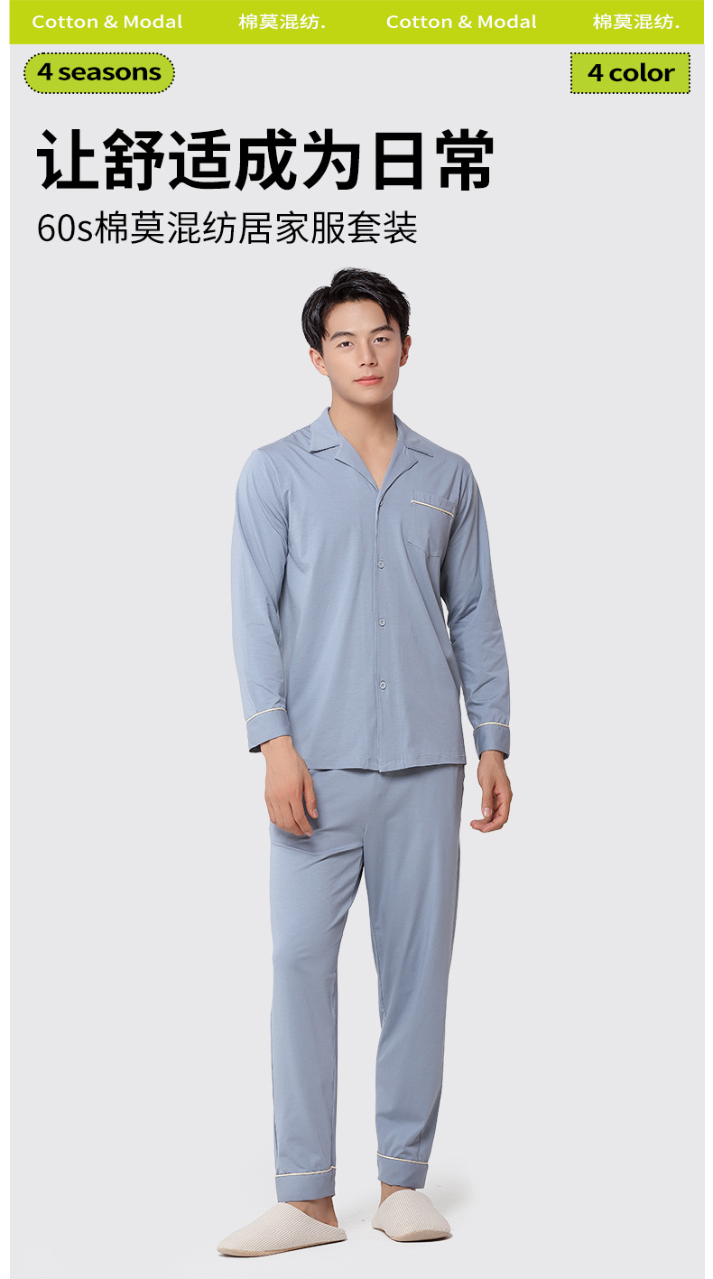 새로운 60 면 모달 남자의 홈 웨어 얇은 봄 가을과 겨울 외출 할 수 있습니다 올해 잠옷 세트 재고스토어 가기