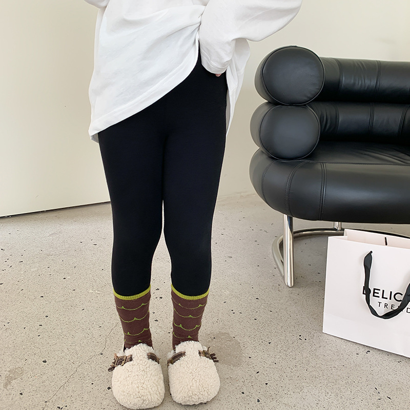 Emo Beibei 아동 봄 가을 바지 아동 울 풀업 레깅스 여아 아기 한국식 슬림핏 아우터 팬츠
