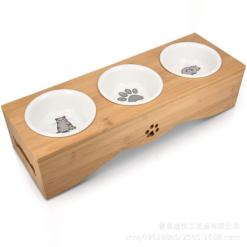 고양이 피더 애완 동물 고양이 먹이 분지 세라믹 고양이 그릇 높은 발 기울기 고양이 그릇 단단한 나무 애완 동물 그릇 랙스토어 가기