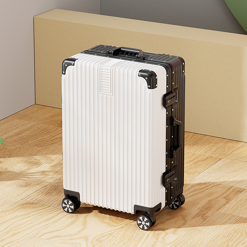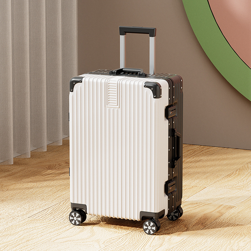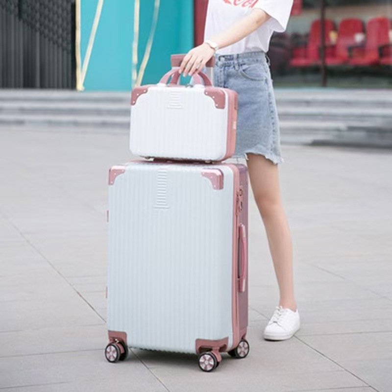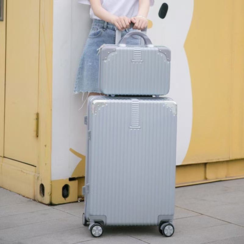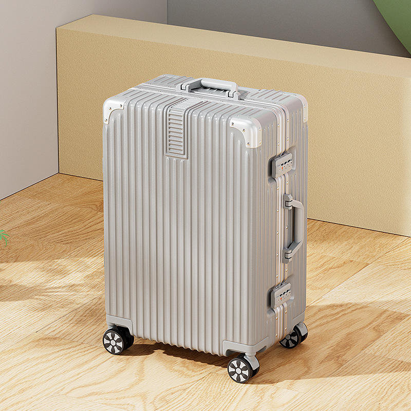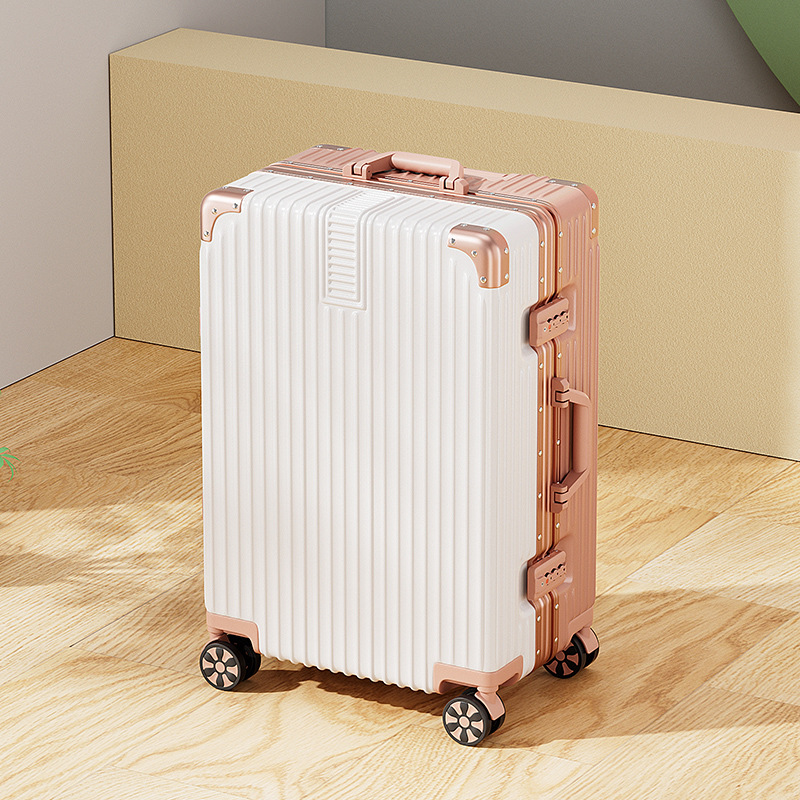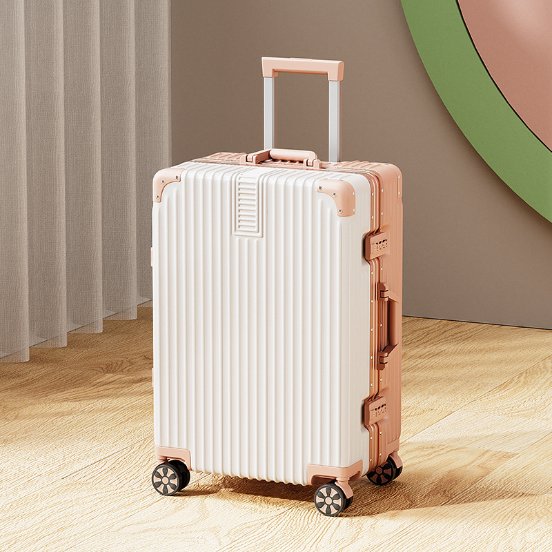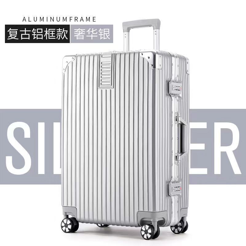 20/ 24inch 알루미늄 프레임 트롤리 케이스, 무소음 회전 바퀴, 학생용 여성용 여행 가방, 비밀번호 기내용 캐리어 여행 가방스토어 가기