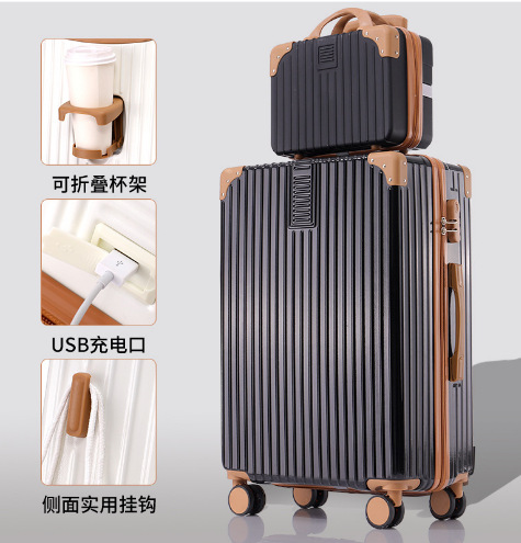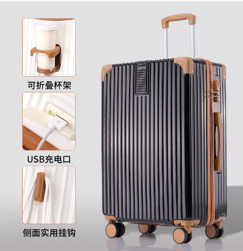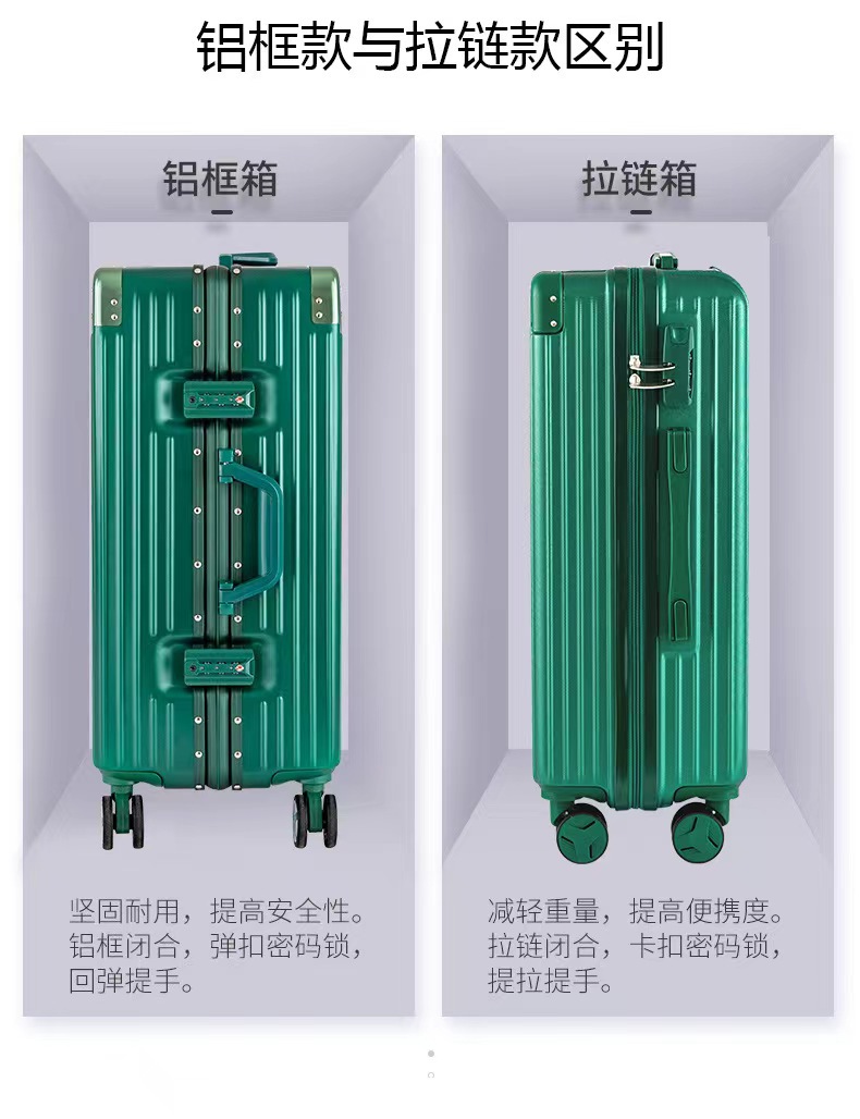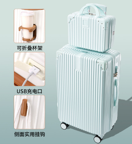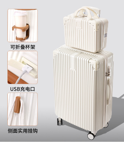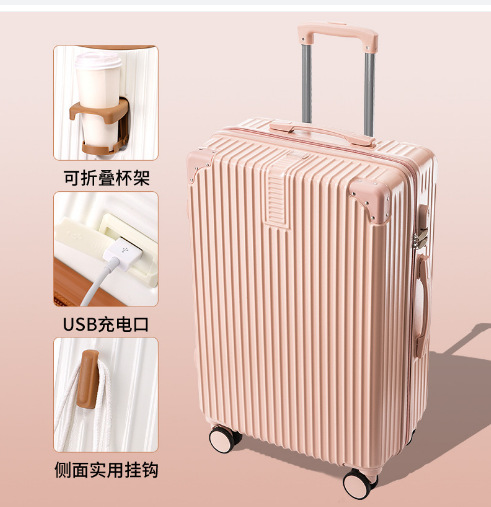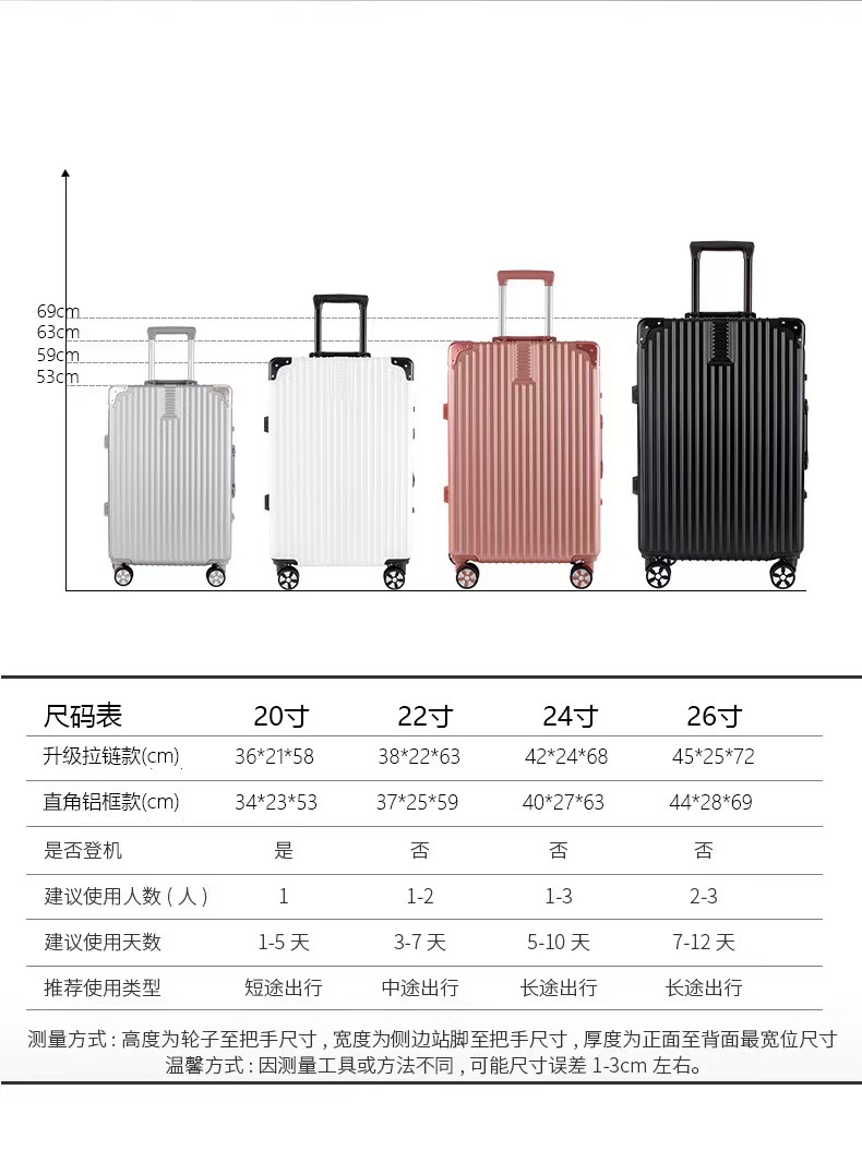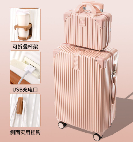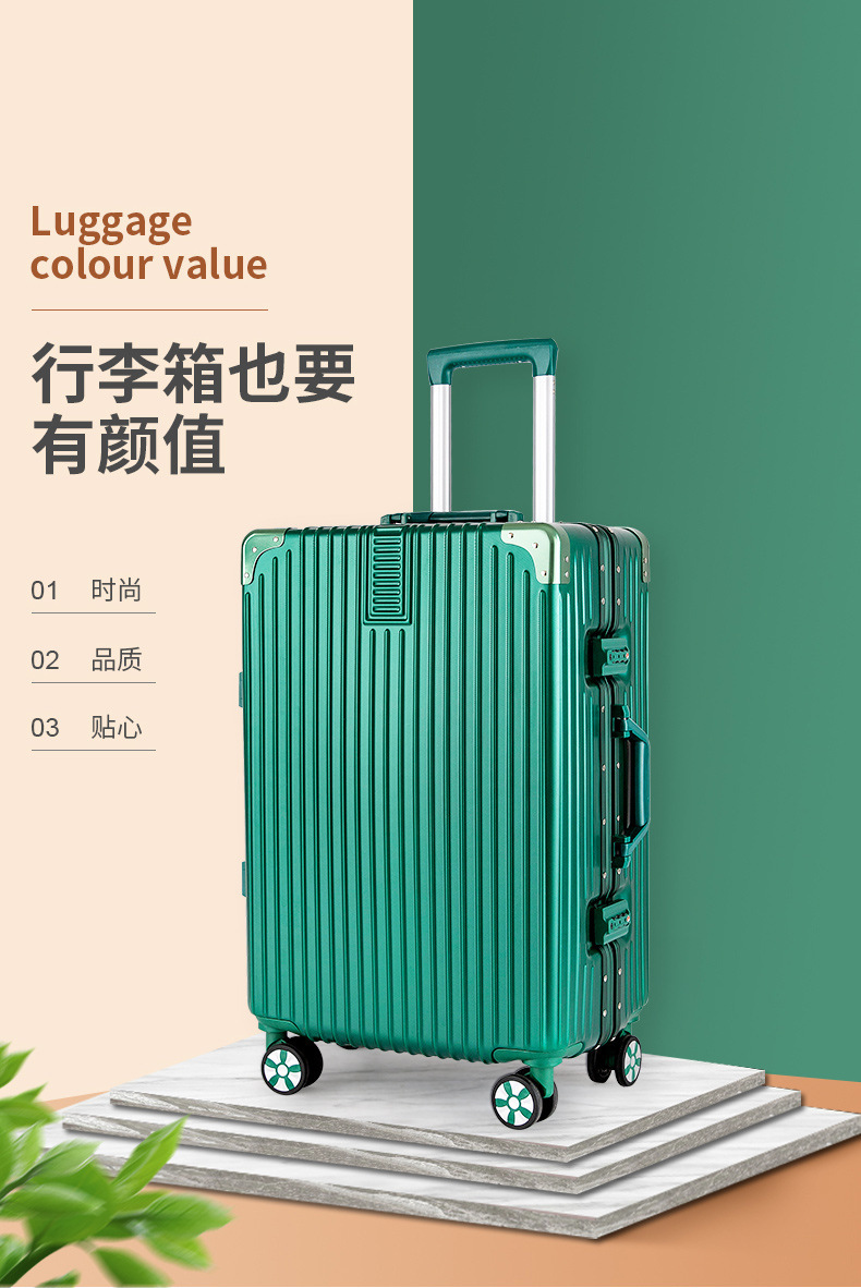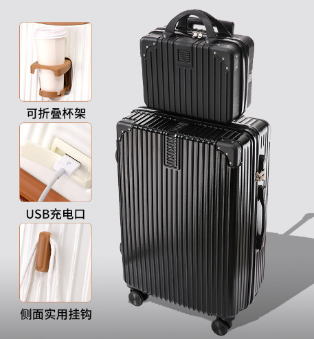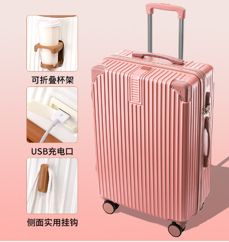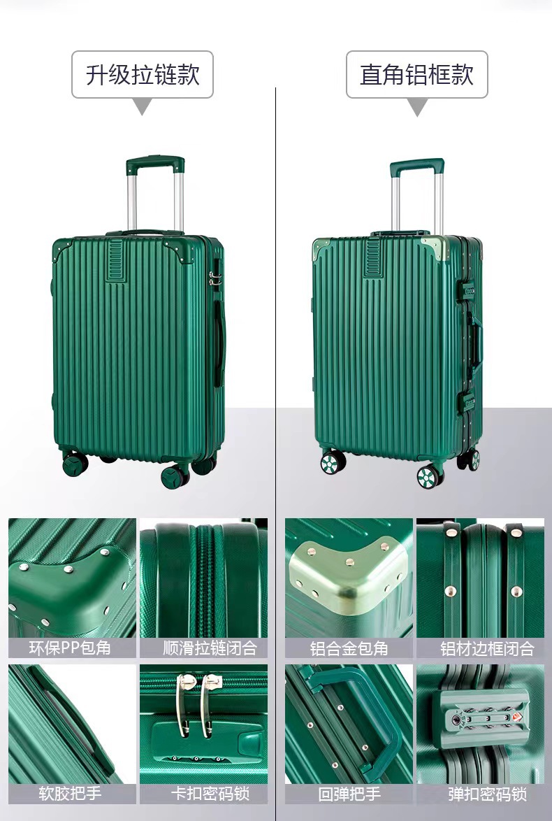 20/ 24inch 알루미늄 프레임 트롤리 케이스, 무소음 회전 바퀴, 학생용 여성용 여행 가방, 비밀번호 기내용 캐리어 여행 가방스토어 가기