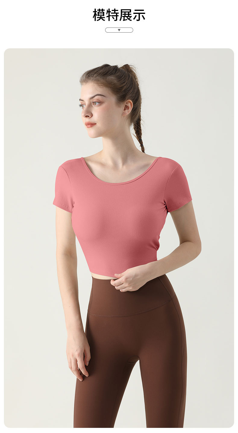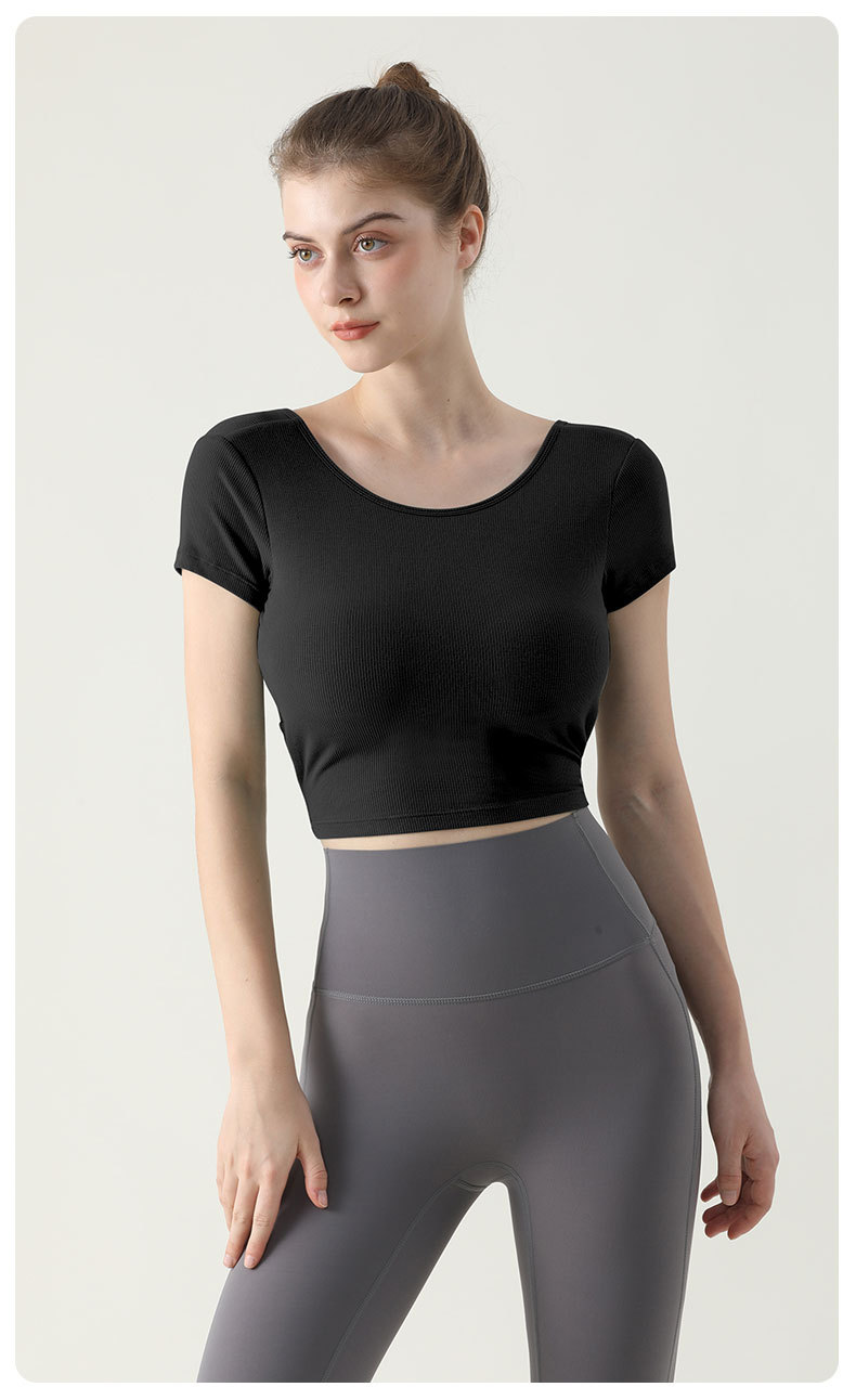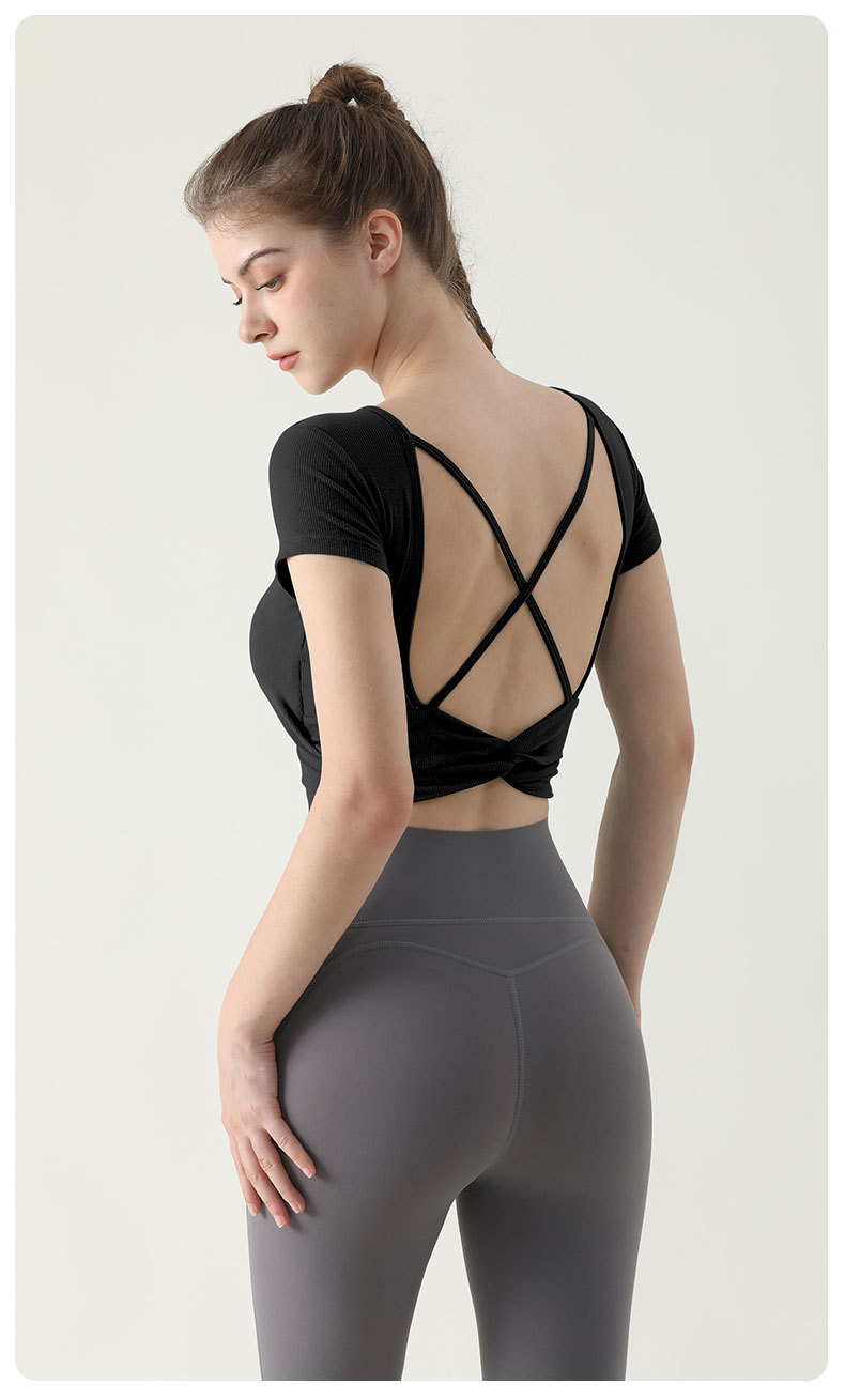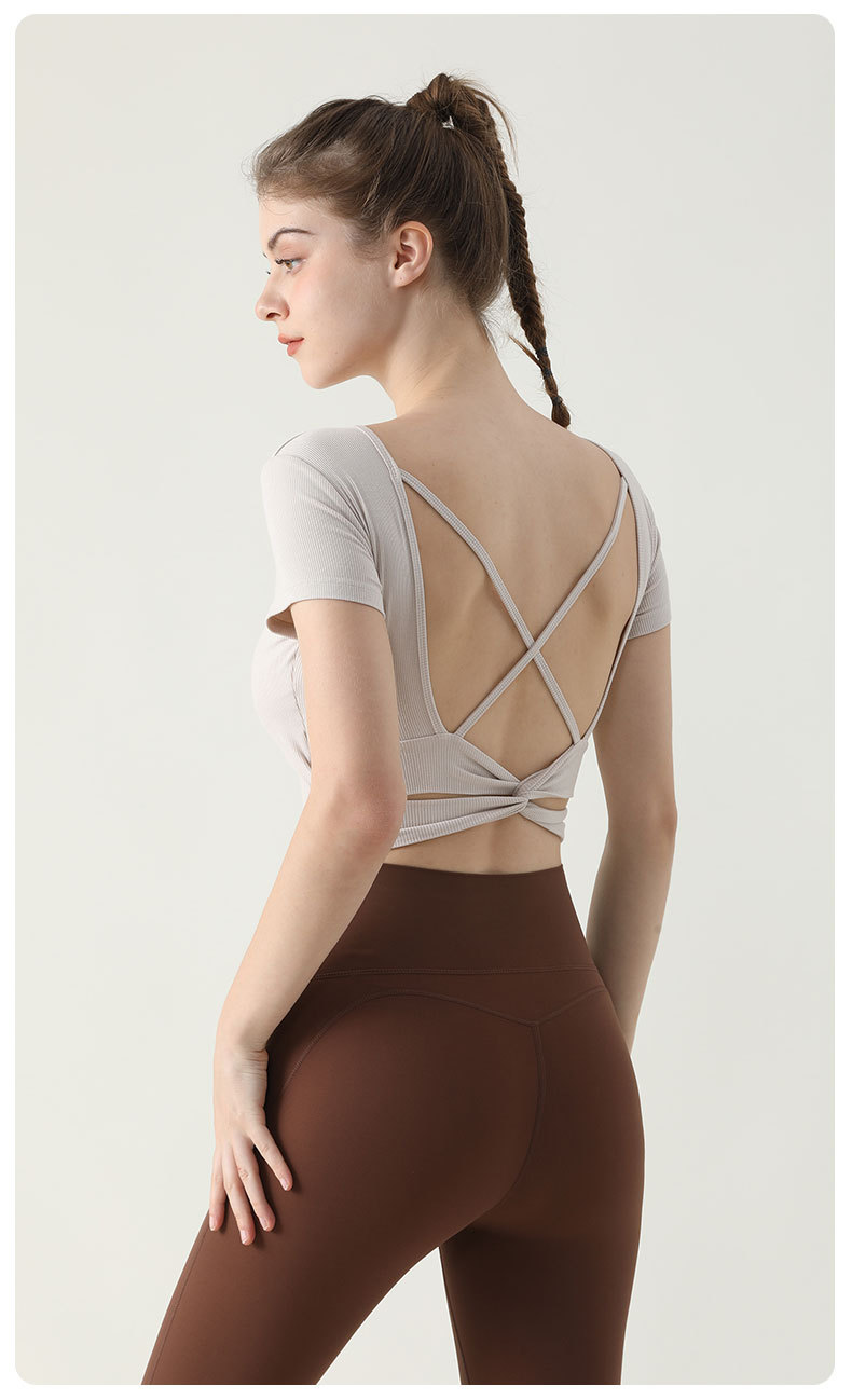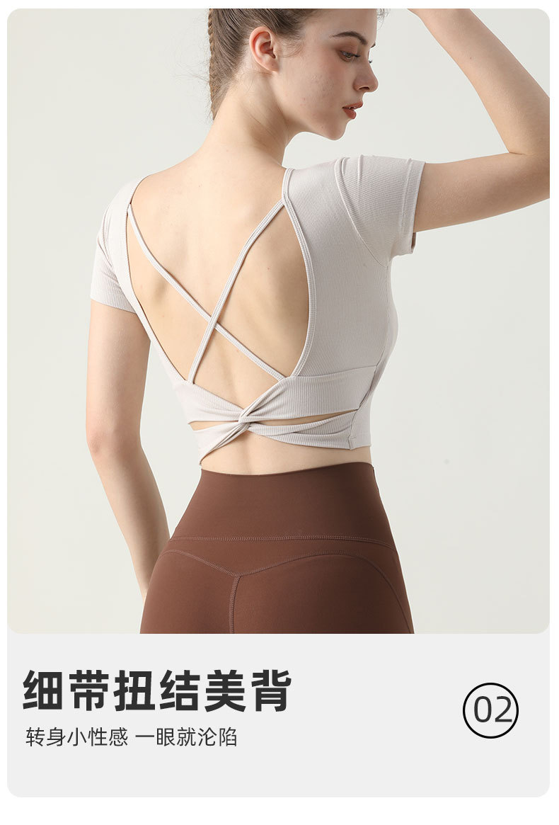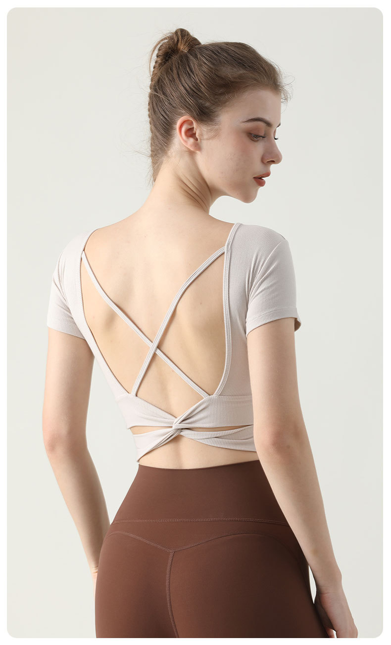 여성용 크로스백 요가복, 여름 가슴 패드, 일체형 스포츠 블라우스, 속건성 피트니스 반팔 요가 필라테스 상의스토어 가기