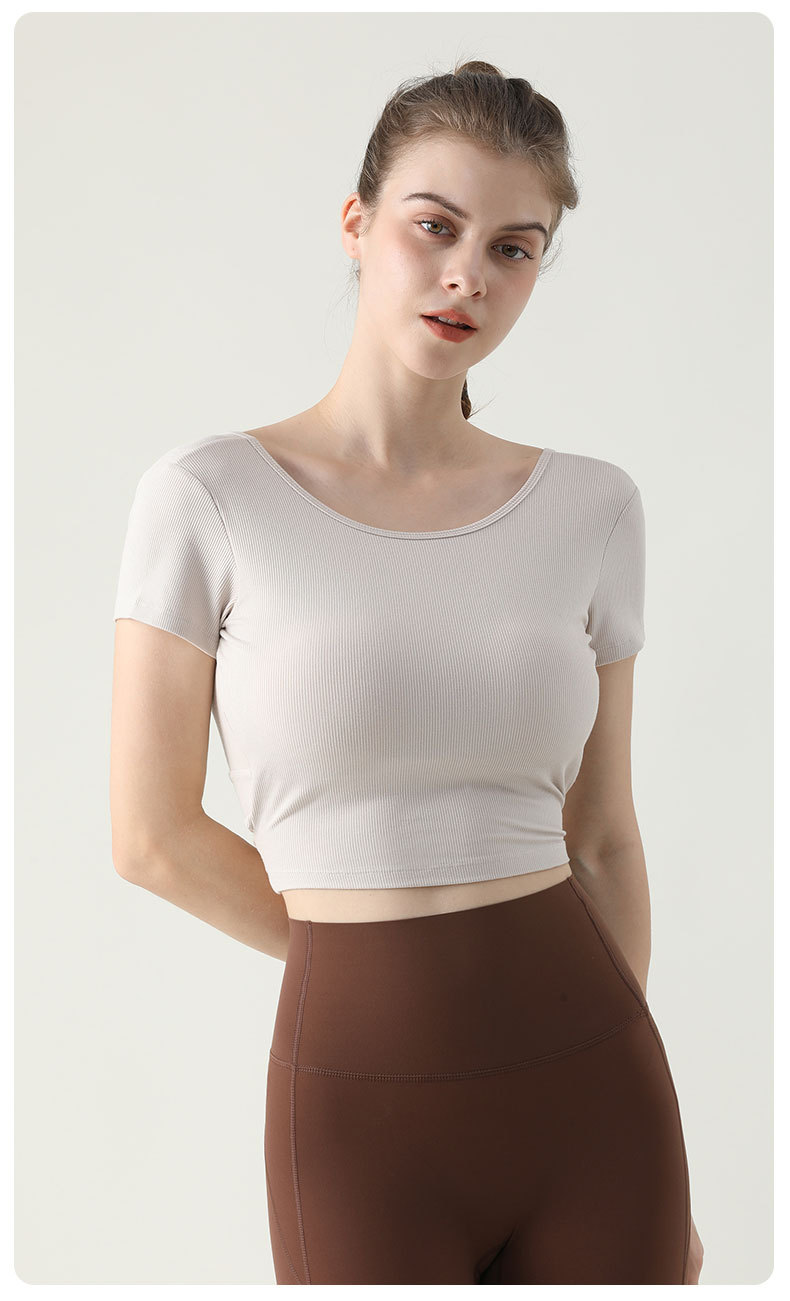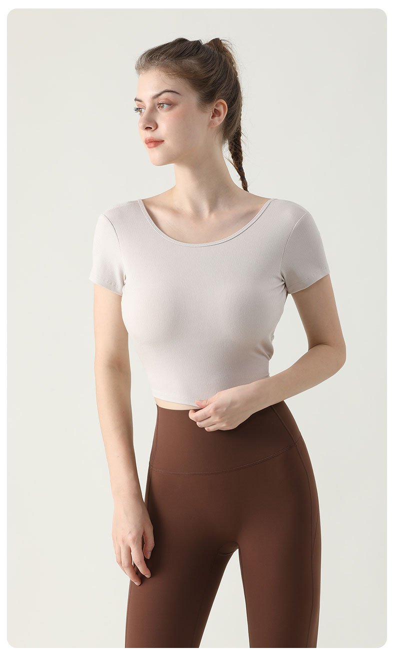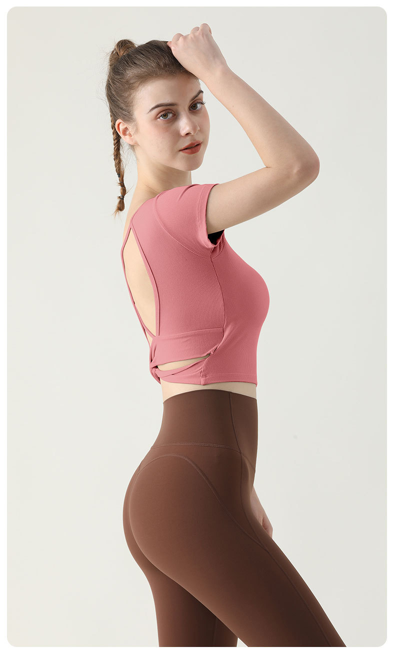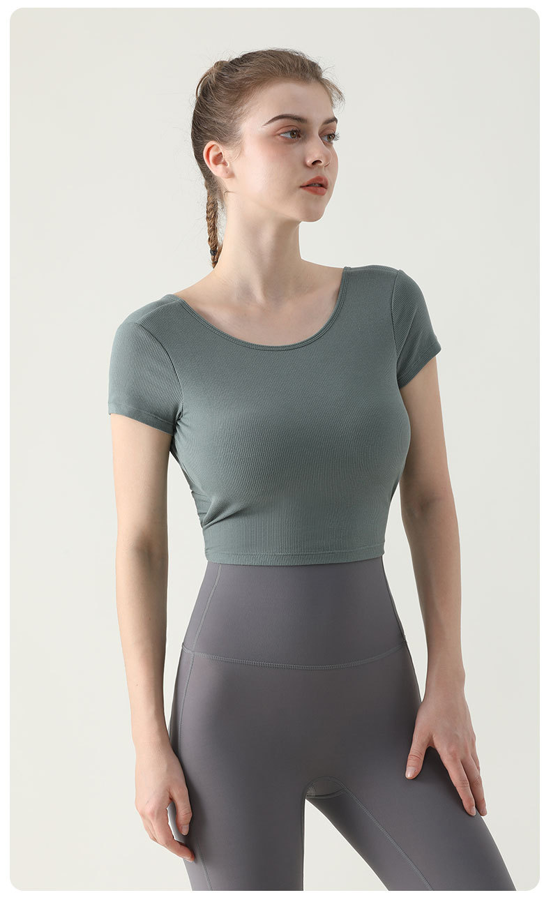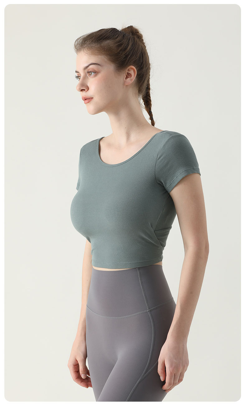 여성용 크로스백 요가복, 여름 가슴 패드, 일체형 스포츠 블라우스, 속건성 피트니스 반팔 요가 필라테스 상의스토어 가기