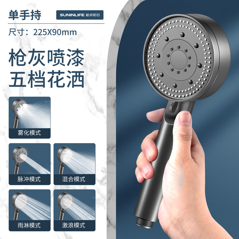 • 【2024년 신규 색상】 건메탈 5단 수압 조절 샤워기 - 풍부한 수압