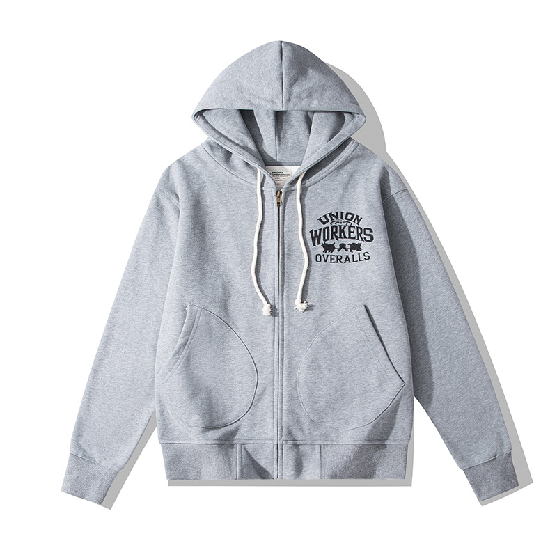 毛圈底有轻抓绒手感,并非加绒,五金采用的是YKK拉链,