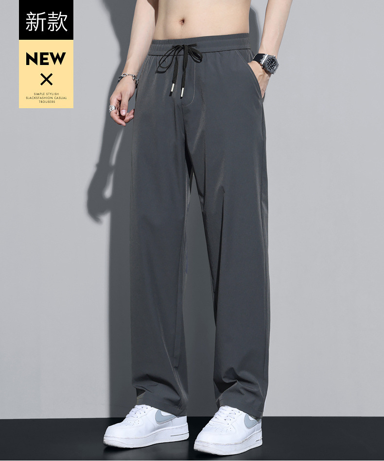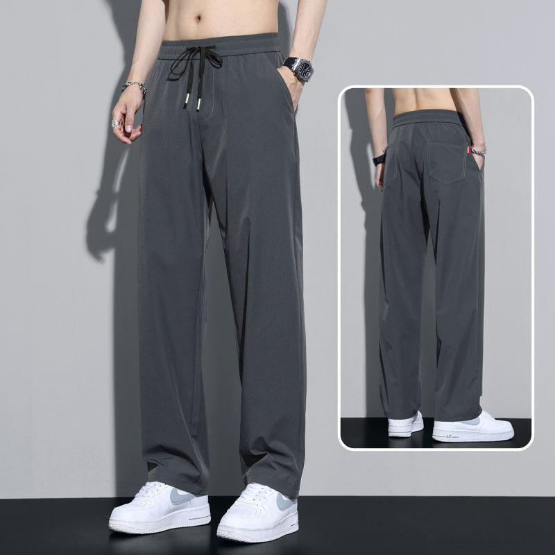 冰丝休闲裤男士直筒宽松夏季薄款坠垂感松紧腰阔腿速干运动长裤子