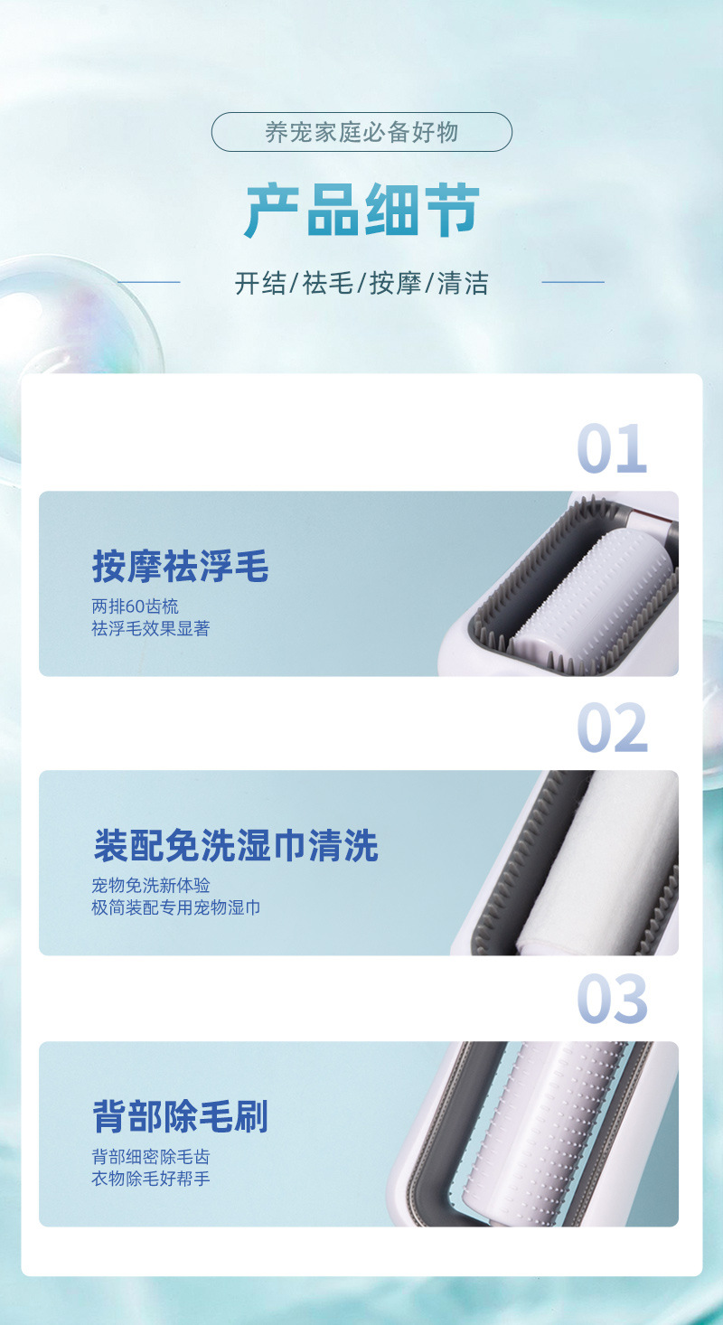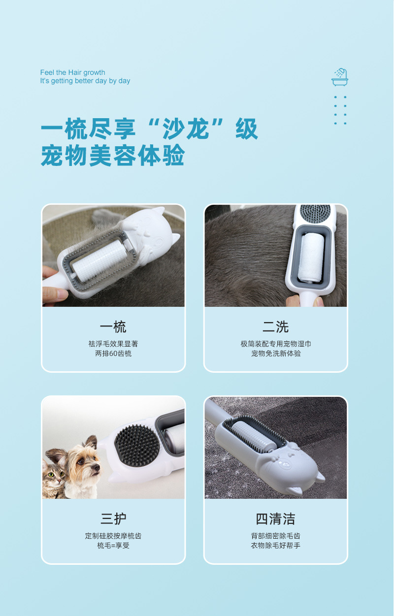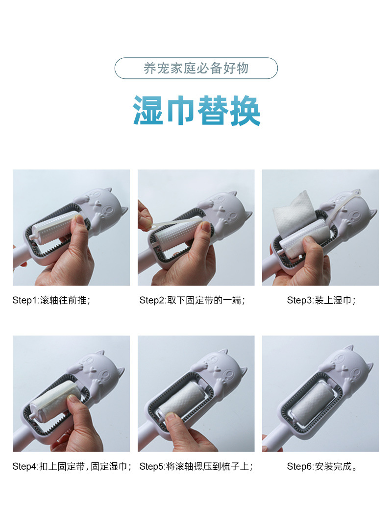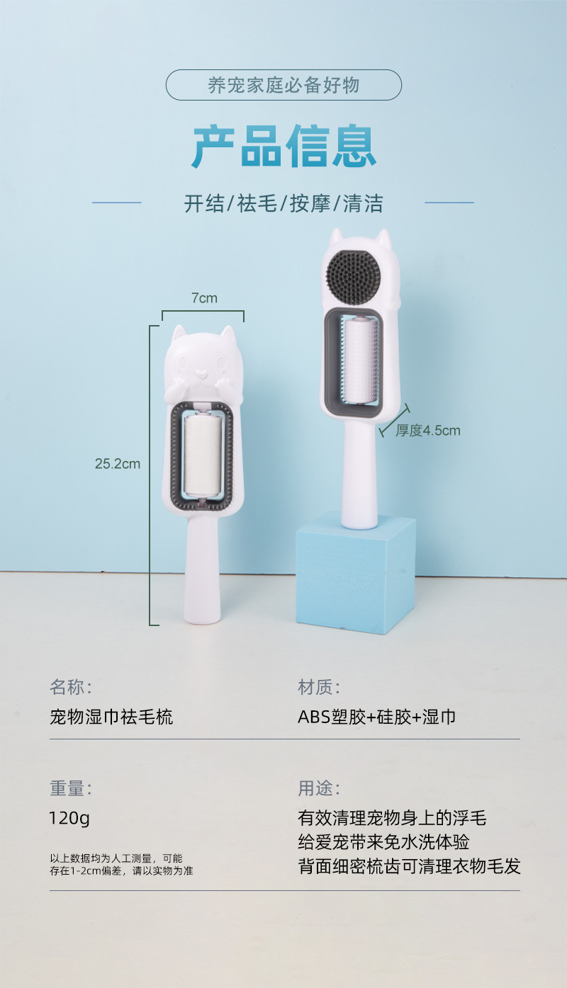 업그레이드 된 애완 동물 빗 청소 제모 빗 고양이 빗 플로팅 헤어 일회용 물티슈 브러시 헤어 스티커 고양이와 개를위한 범용
