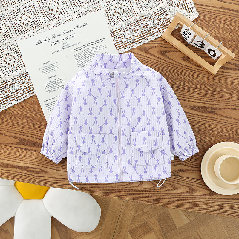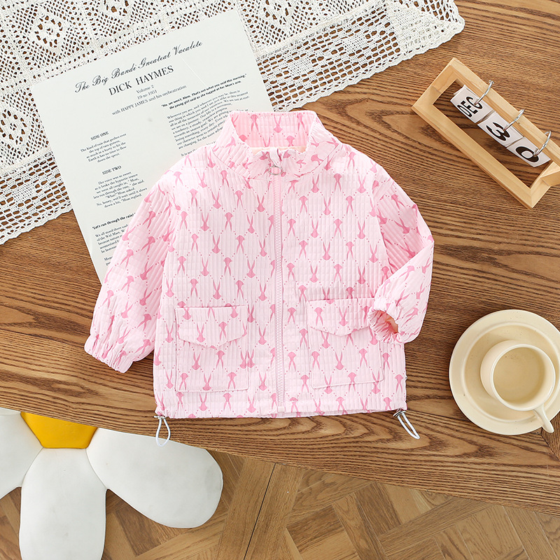 소녀 공주 코트 한국 스타일 캐주얼 봄과 가을 새로운 인쇄 서양식 재킷 어린이 전체 인쇄 토끼 머리 코트 가을 의류스토어 가기