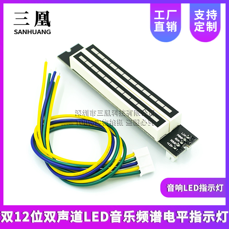 特点:1.双12位音乐屏谱电平超小体积立体声电平灯,可自由调节灯条的上升、下降速度和峰值灯的停留时间、下降速度。每个灯单独设置一个限流电阻,既保证不同颜色灯的亮度一致,更保证在灯亮得多的情况下不存在灯亮暗变化的情况。信号输入经过运放隔离避免单片机高频干扰串入音频中。