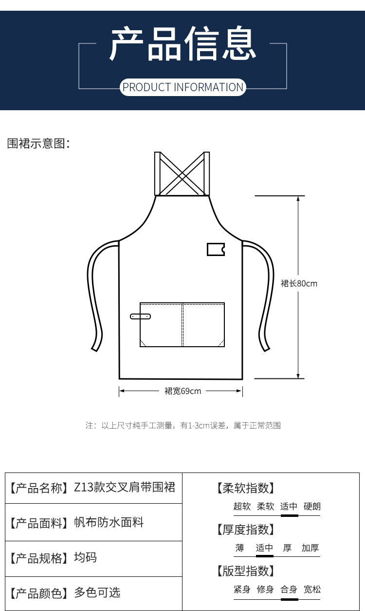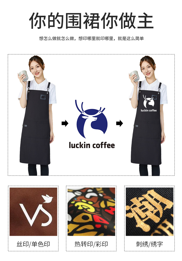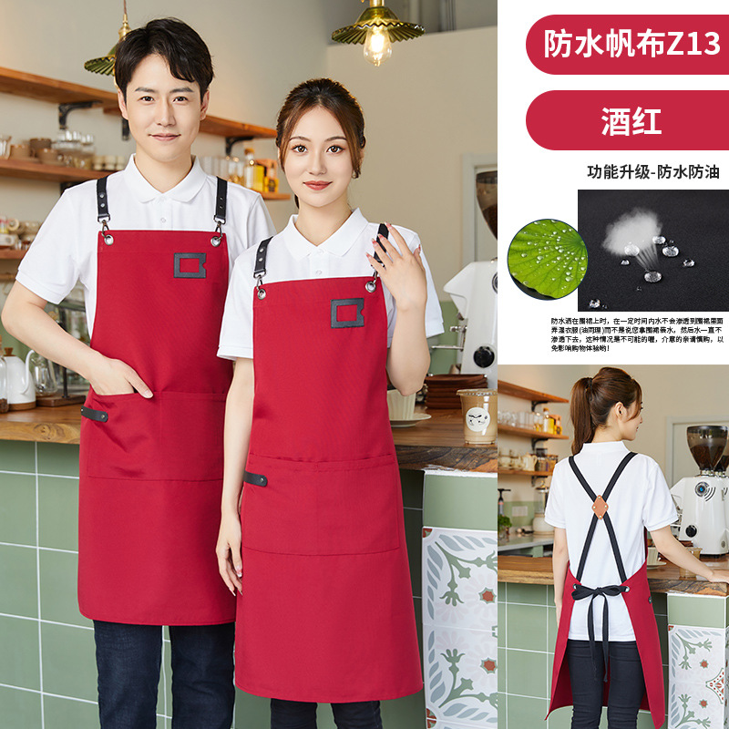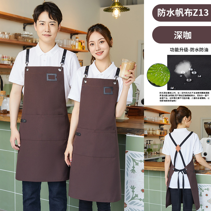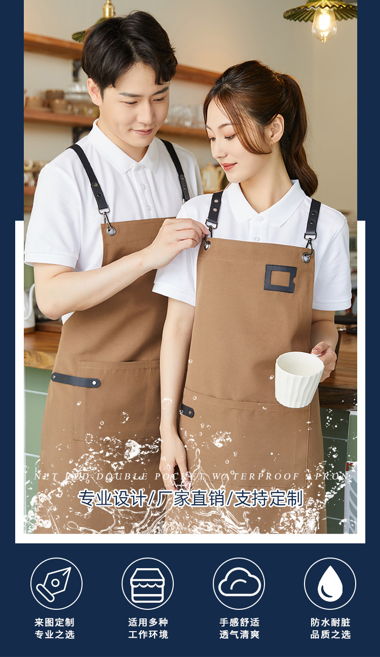 캔버스 방수 앞치마 취사 특별 주문 로고 인쇄 커피 우유 차 가게 웨이터 허리 작업복
