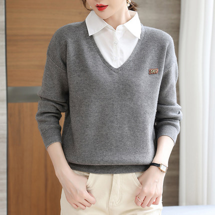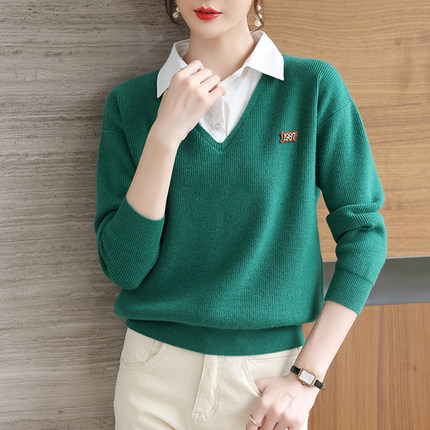 여성용 페이크 투피스 니트 스웨터 봄 가을 2025 신상 패션 여성복 큰 사이즈 스웨터 뚱뚱한 여성용 셔츠 이너웨어스토어 가기