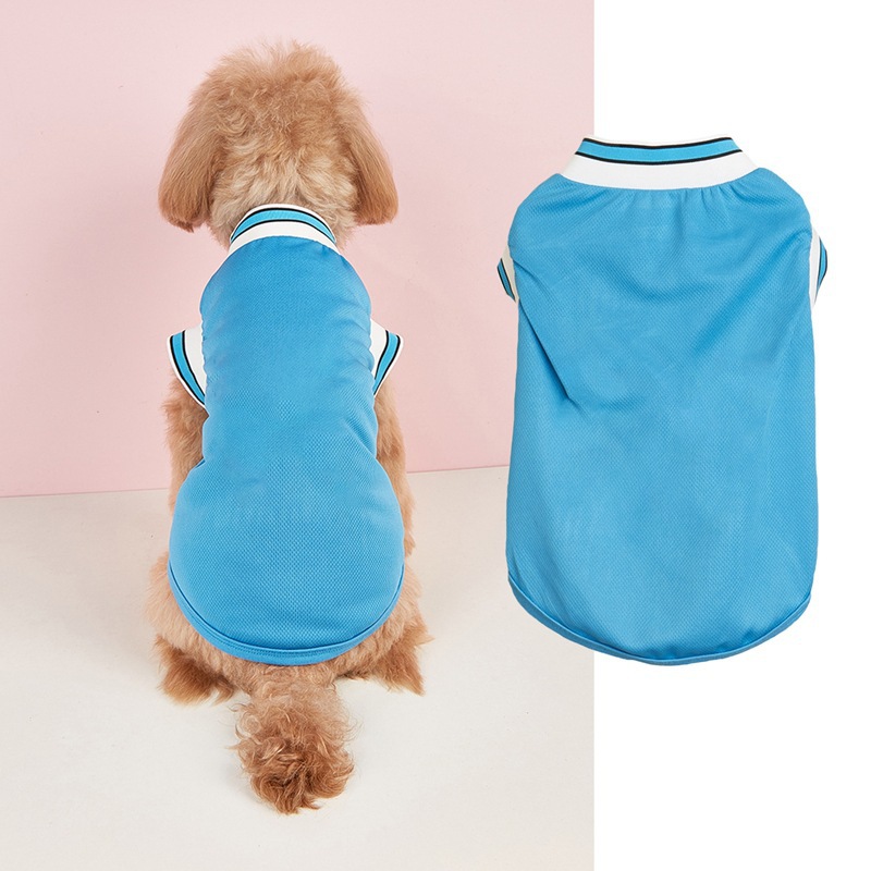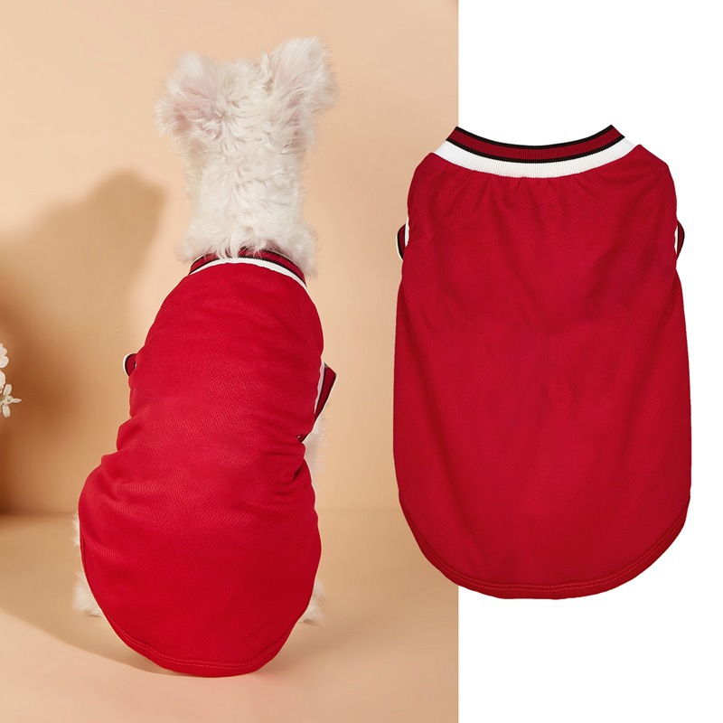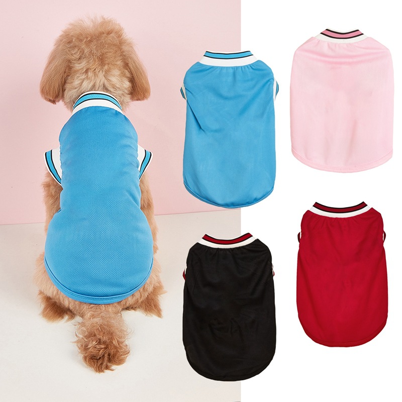 新款宠物背心涤纶网眼球服篮球足球运动风无袖纯色猫咪狗狗衣服