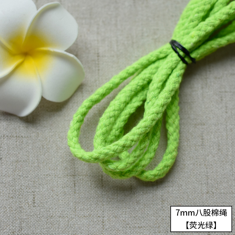 • 7mm 8 가닥 코튼 로프 [형광 그린] 1 m