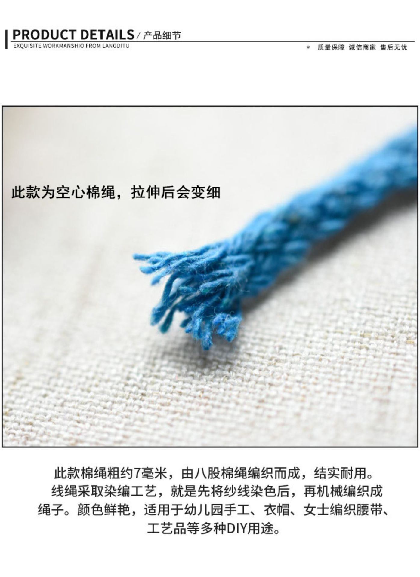 7mm 컬러 코튼 로프 순면 수제 DIY 면 짠 졸라매는 끈 코트 후드 로프 바지 스트랩 로프 두꺼운 로프 끈 끈스토어 가기