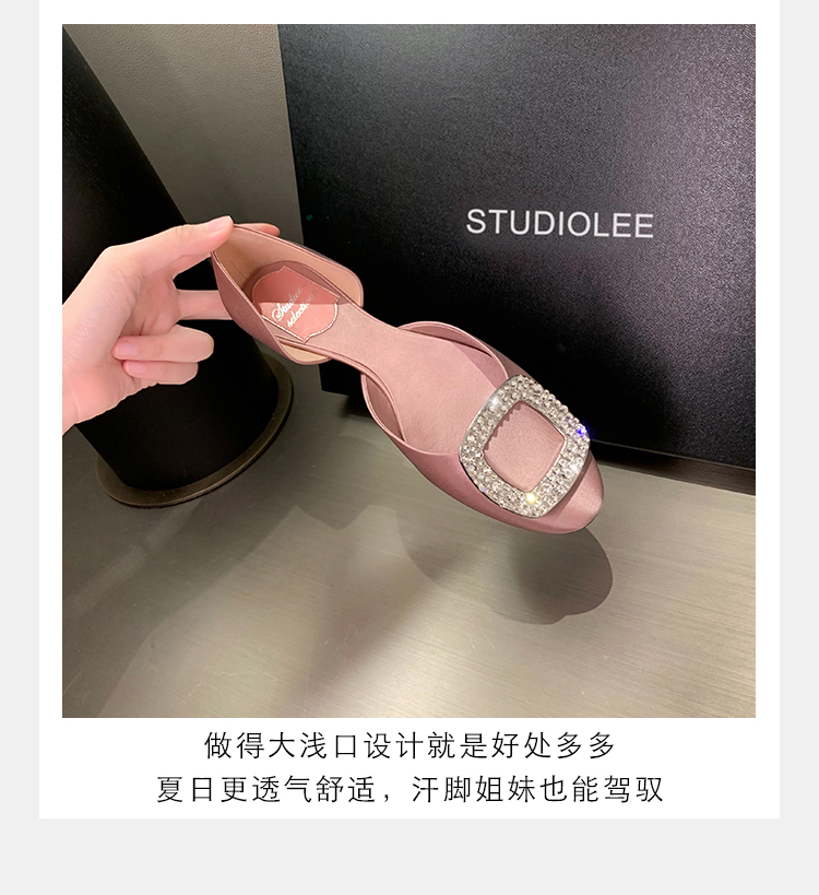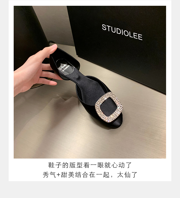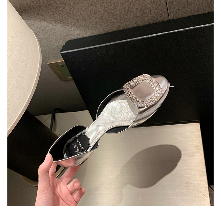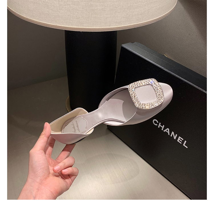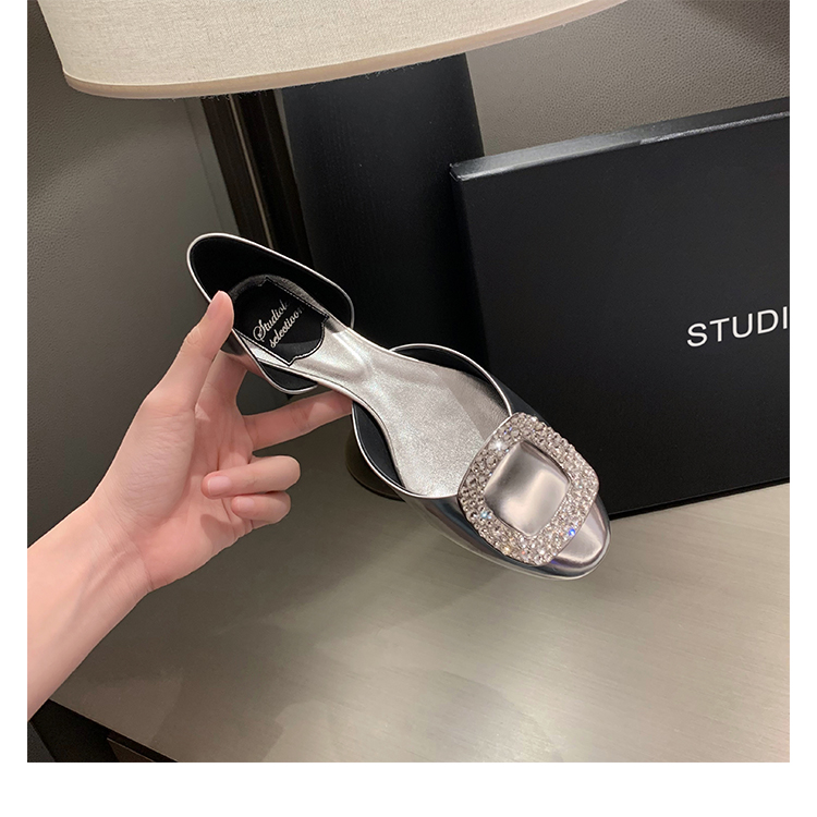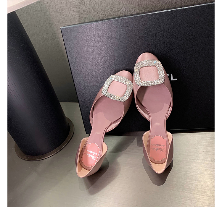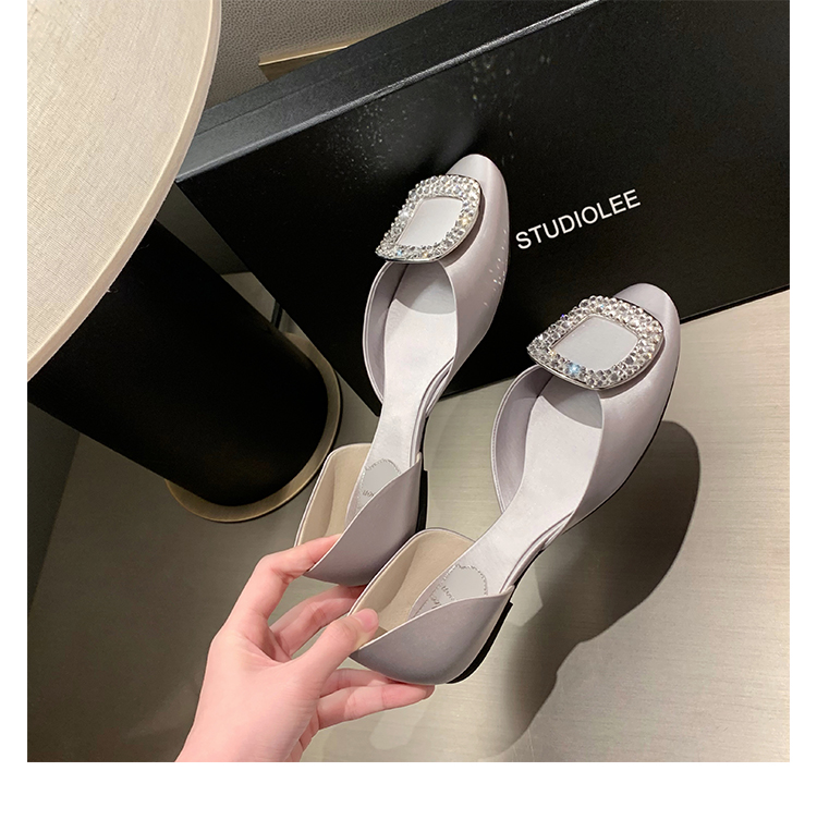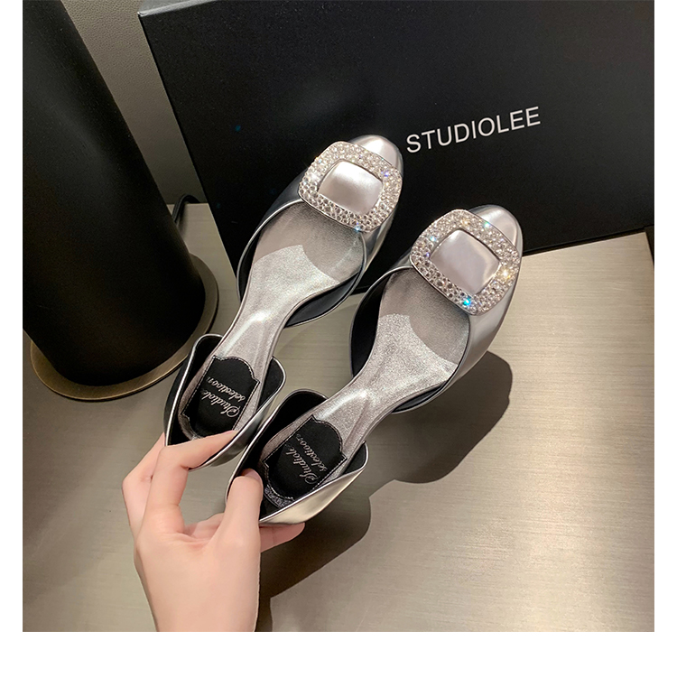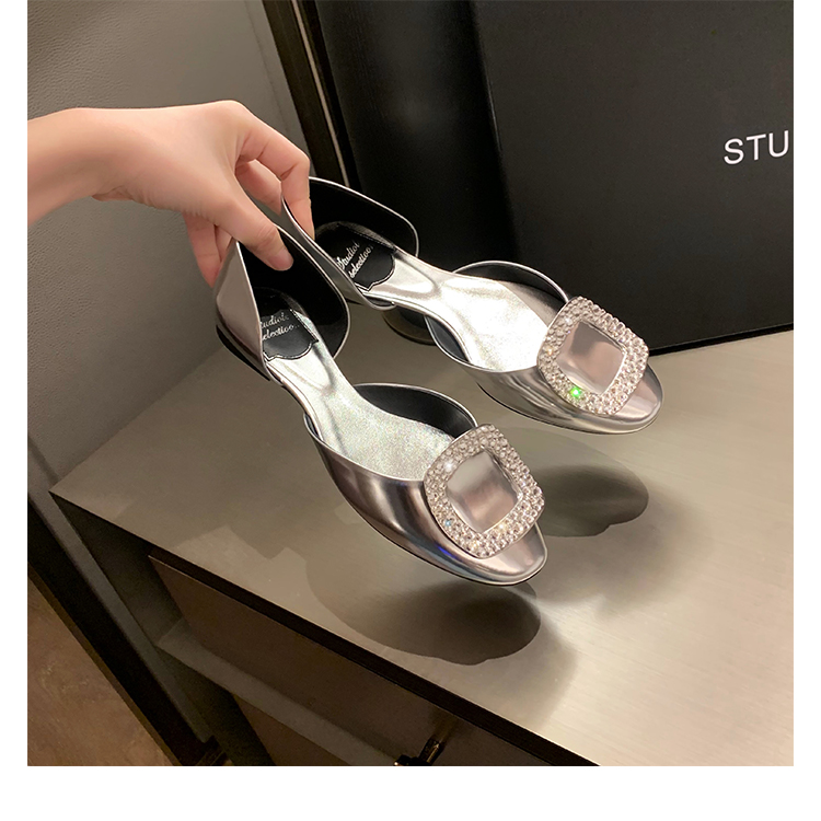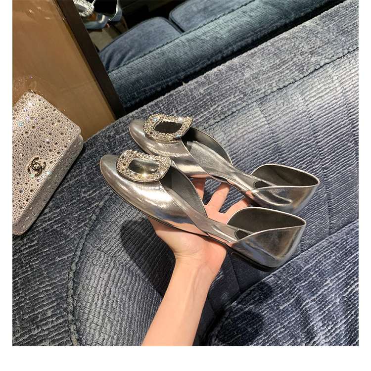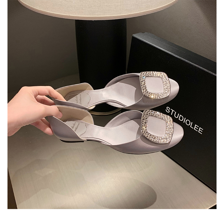 재고 있음 ~ 포도 엄마 여름 새로운 패션 요정 둥근 발가락 사각형 다이아몬드 장식 얕은 입 중공 플랫 신발 여성을위한