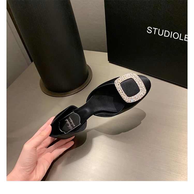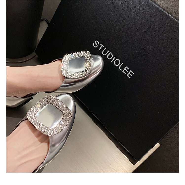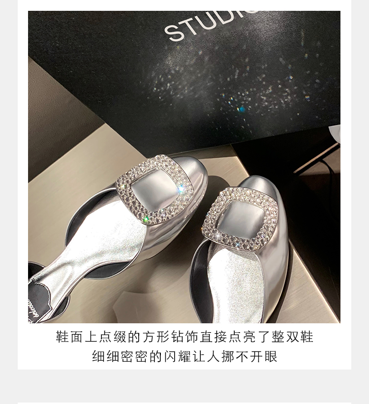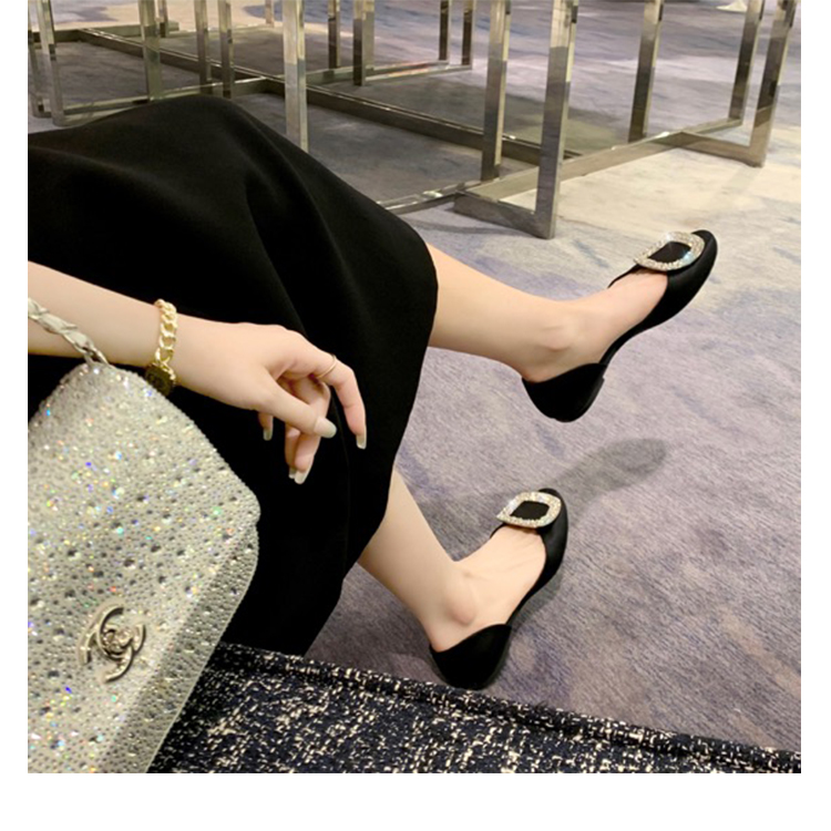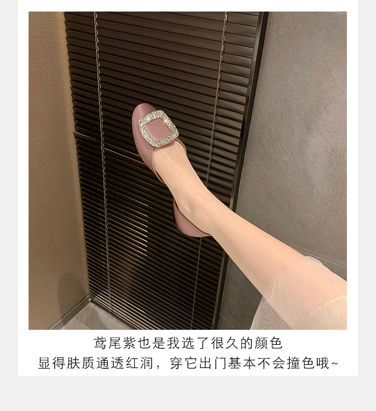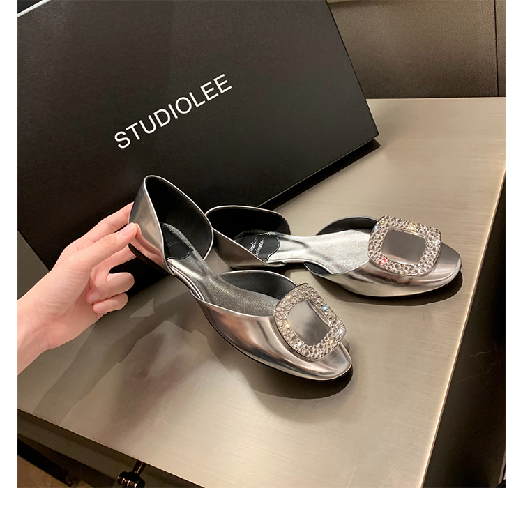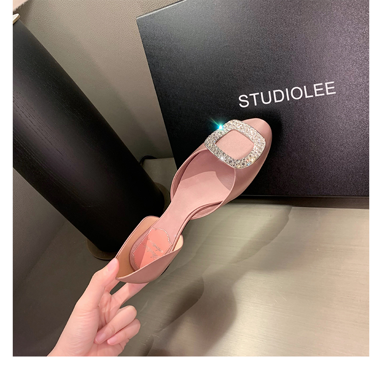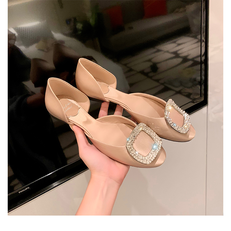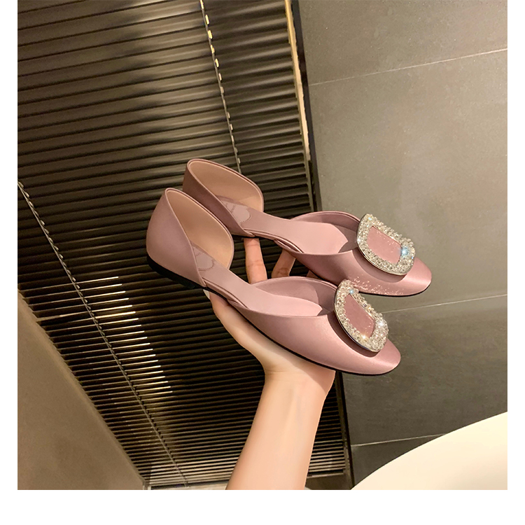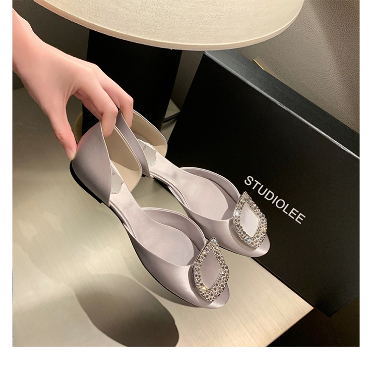 재고 있음 ~ 포도 엄마 여름 새로운 패션 요정 둥근 발가락 사각형 다이아몬드 장식 얕은 입 중공 플랫 신발 여성을위한