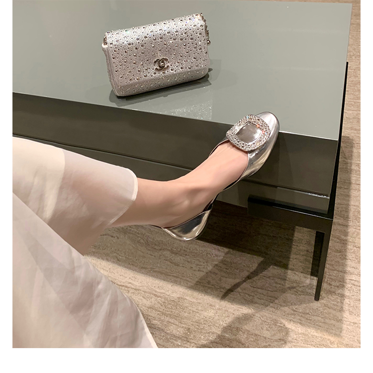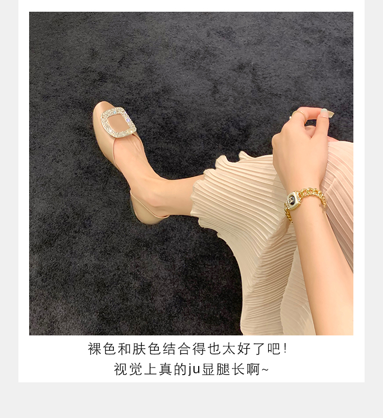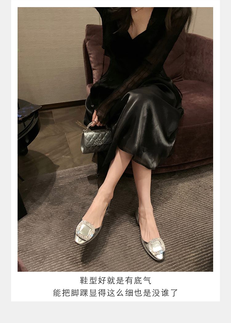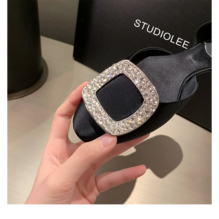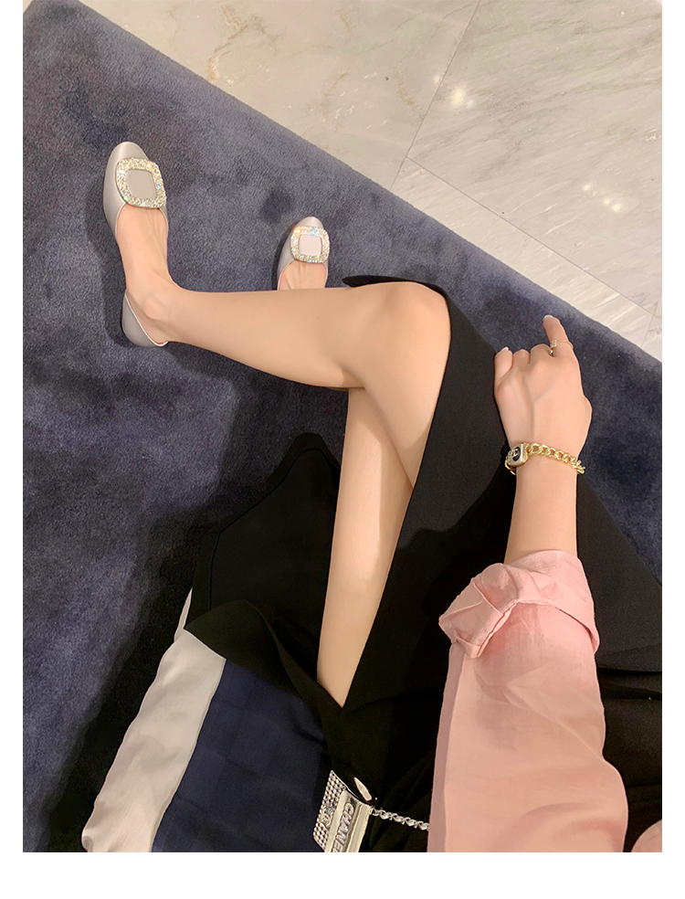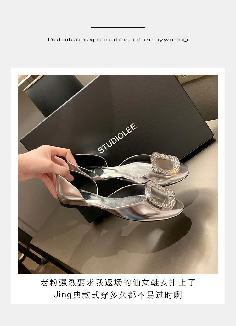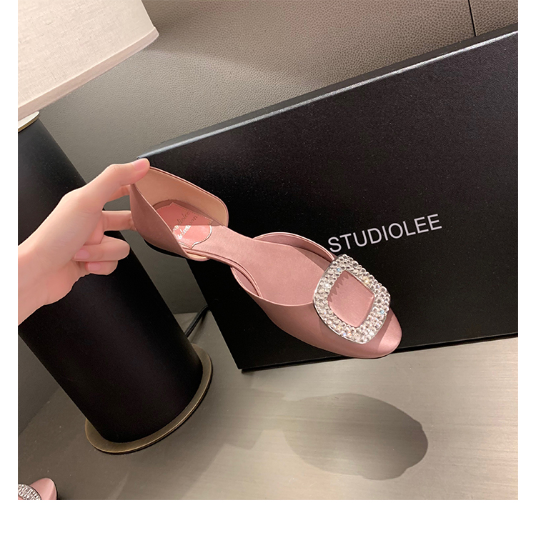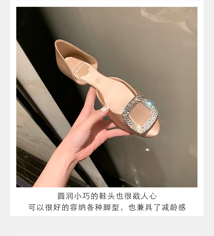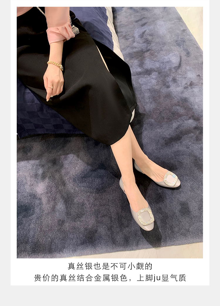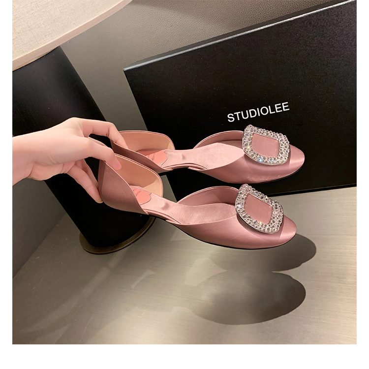 재고 있음 ~ 포도 엄마 여름 새로운 패션 요정 둥근 발가락 사각형 다이아몬드 장식 얕은 입 중공 플랫 신발 여성을위한