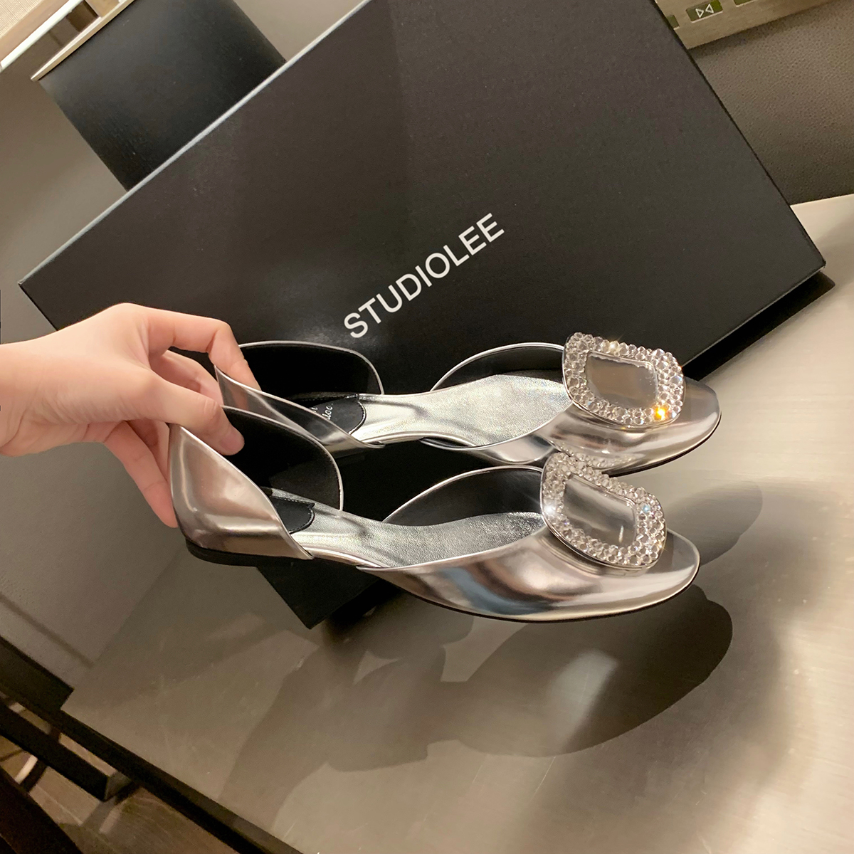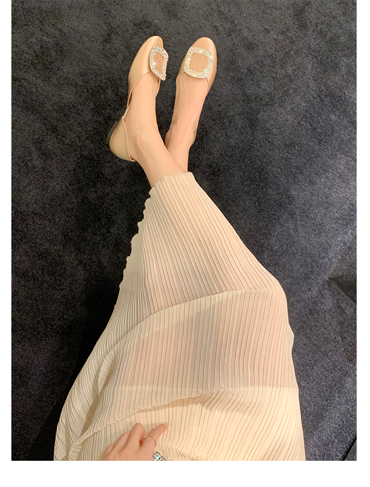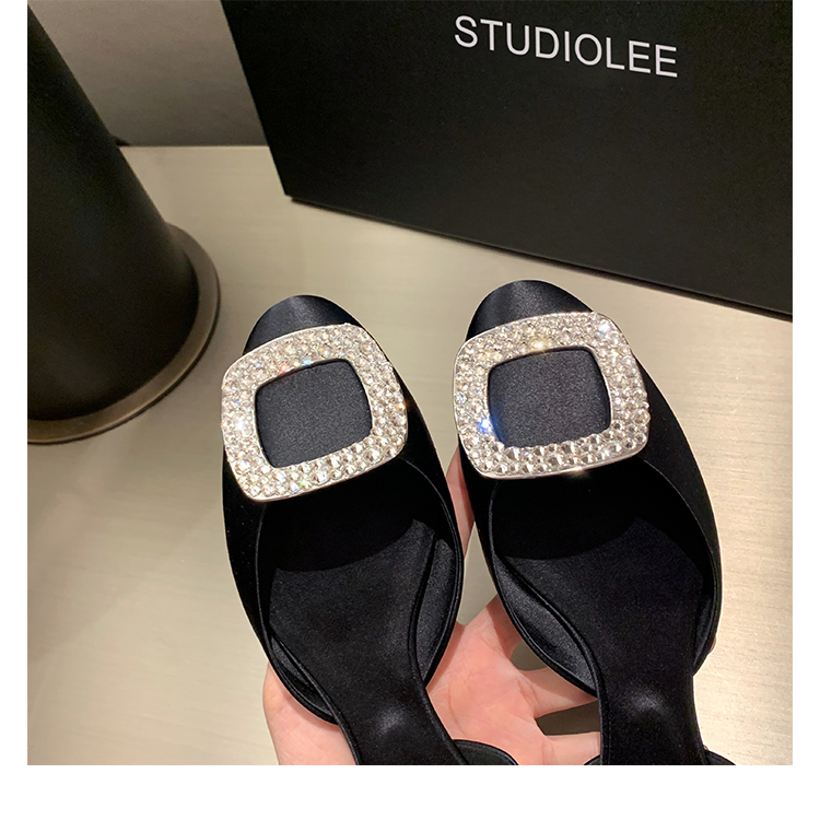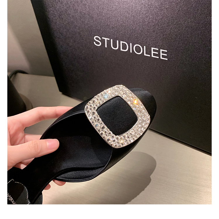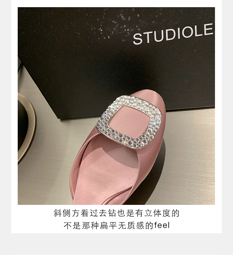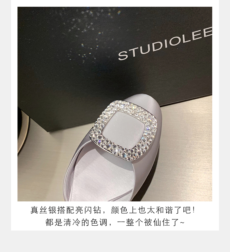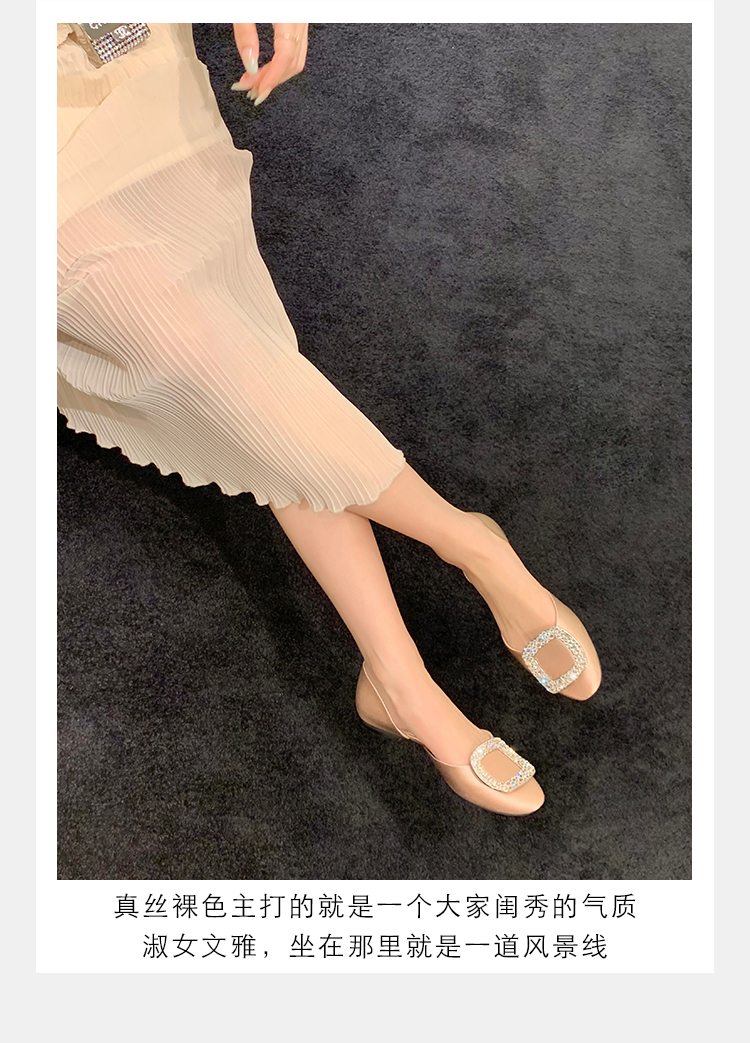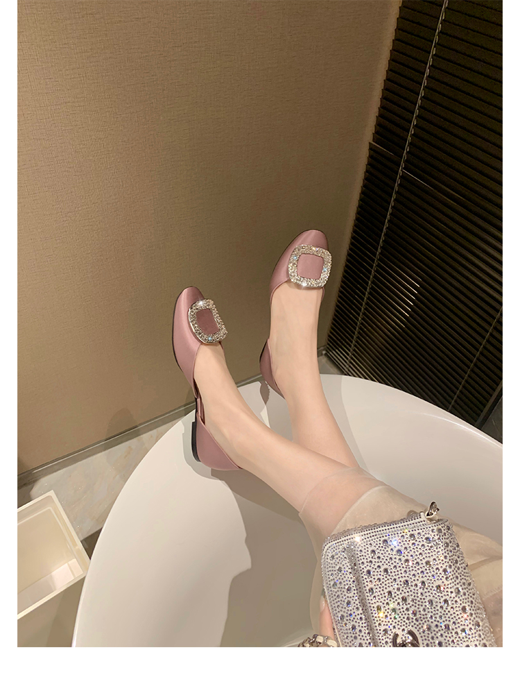 재고 있음 ~ 포도 엄마 여름 새로운 패션 요정 둥근 발가락 사각형 다이아몬드 장식 얕은 입 중공 플랫 신발 여성을위한