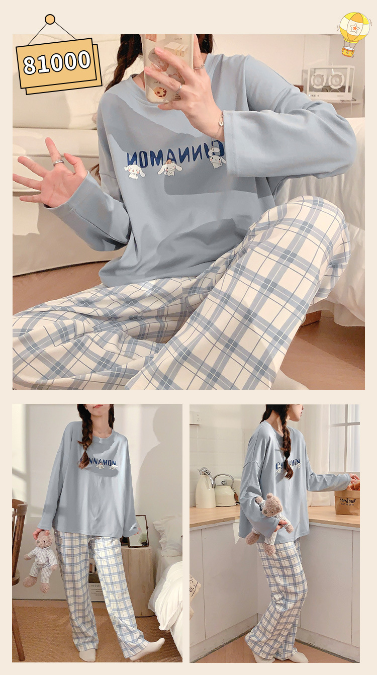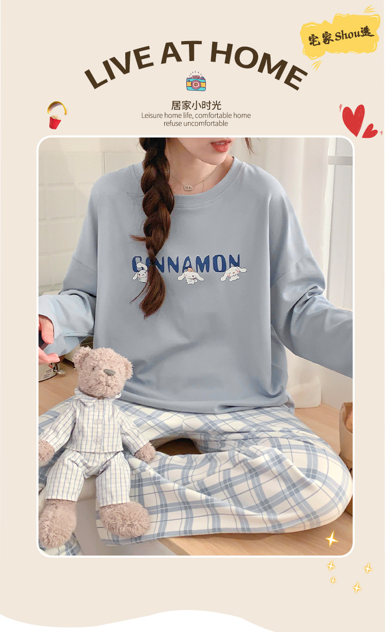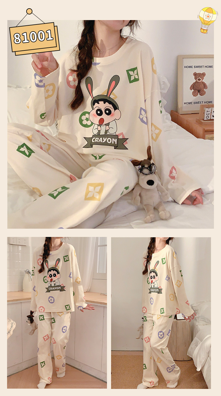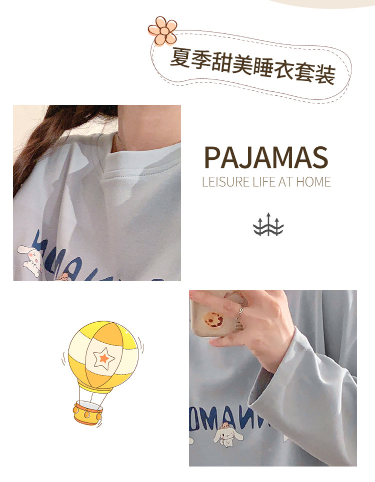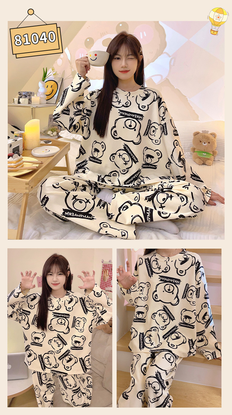 봄과 가을 잠옷 여자의 긴 소매 바지 만화 세트 2023 새로운 여름 가정 의류 인터넷 인기있는 스타일 겉옷스토어 가기