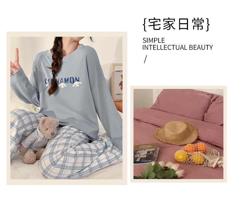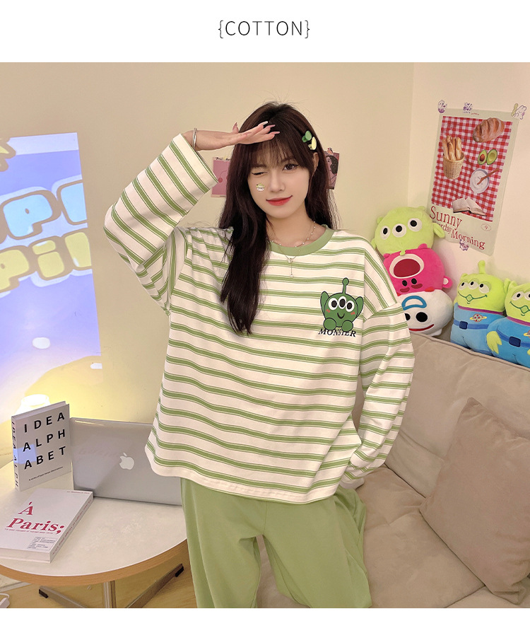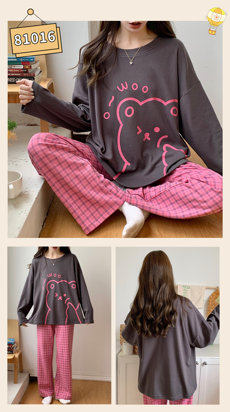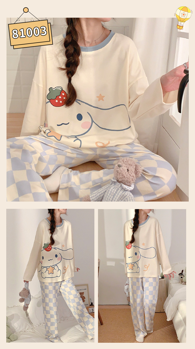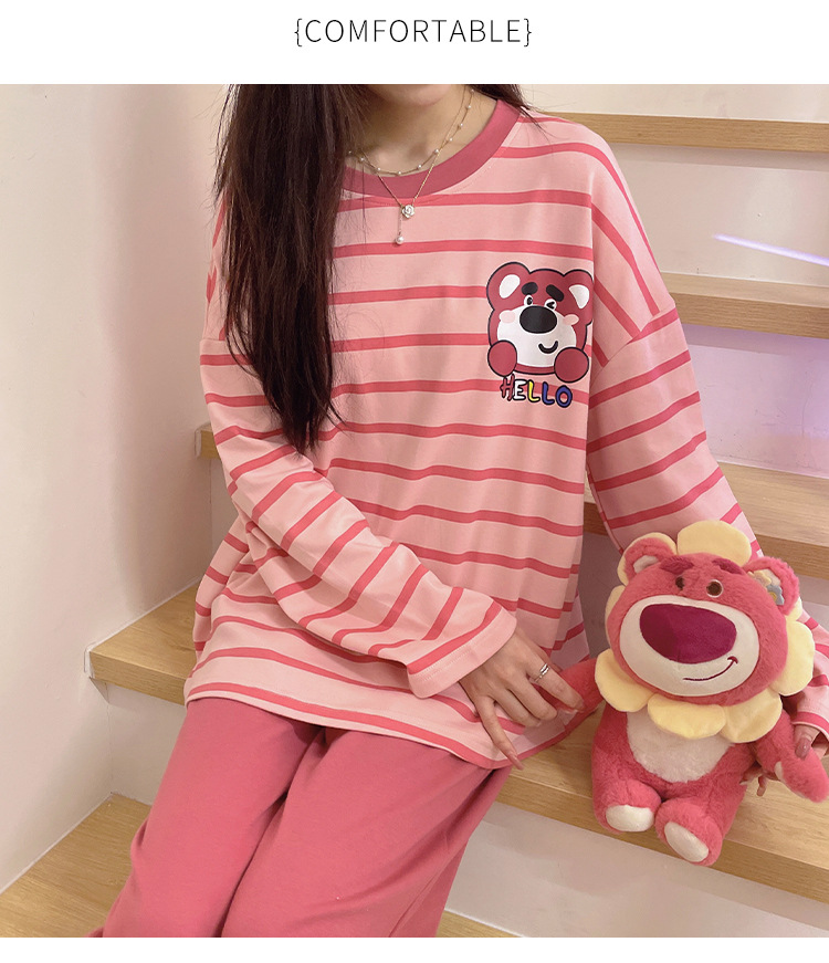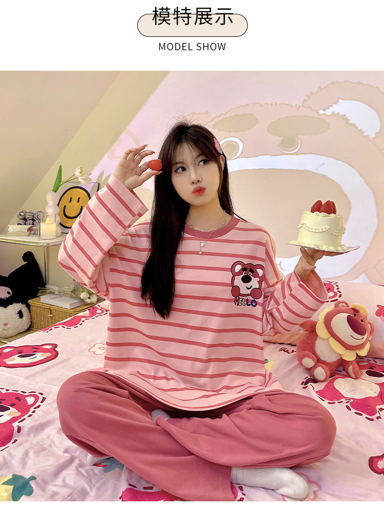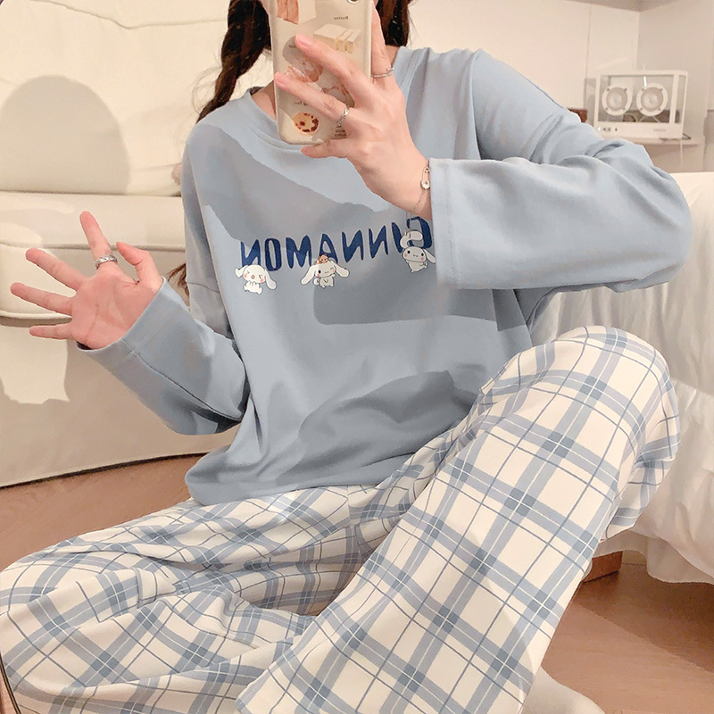 봄과 가을 잠옷 여자의 긴 소매 바지 만화 세트 2023 새로운 여름 가정 의류 인터넷 인기있는 스타일 겉옷스토어 가기