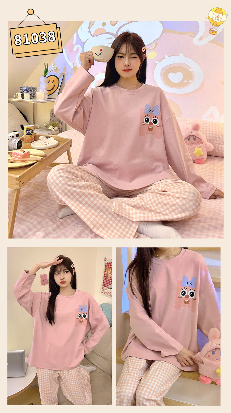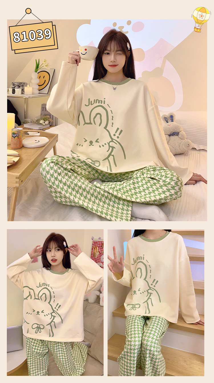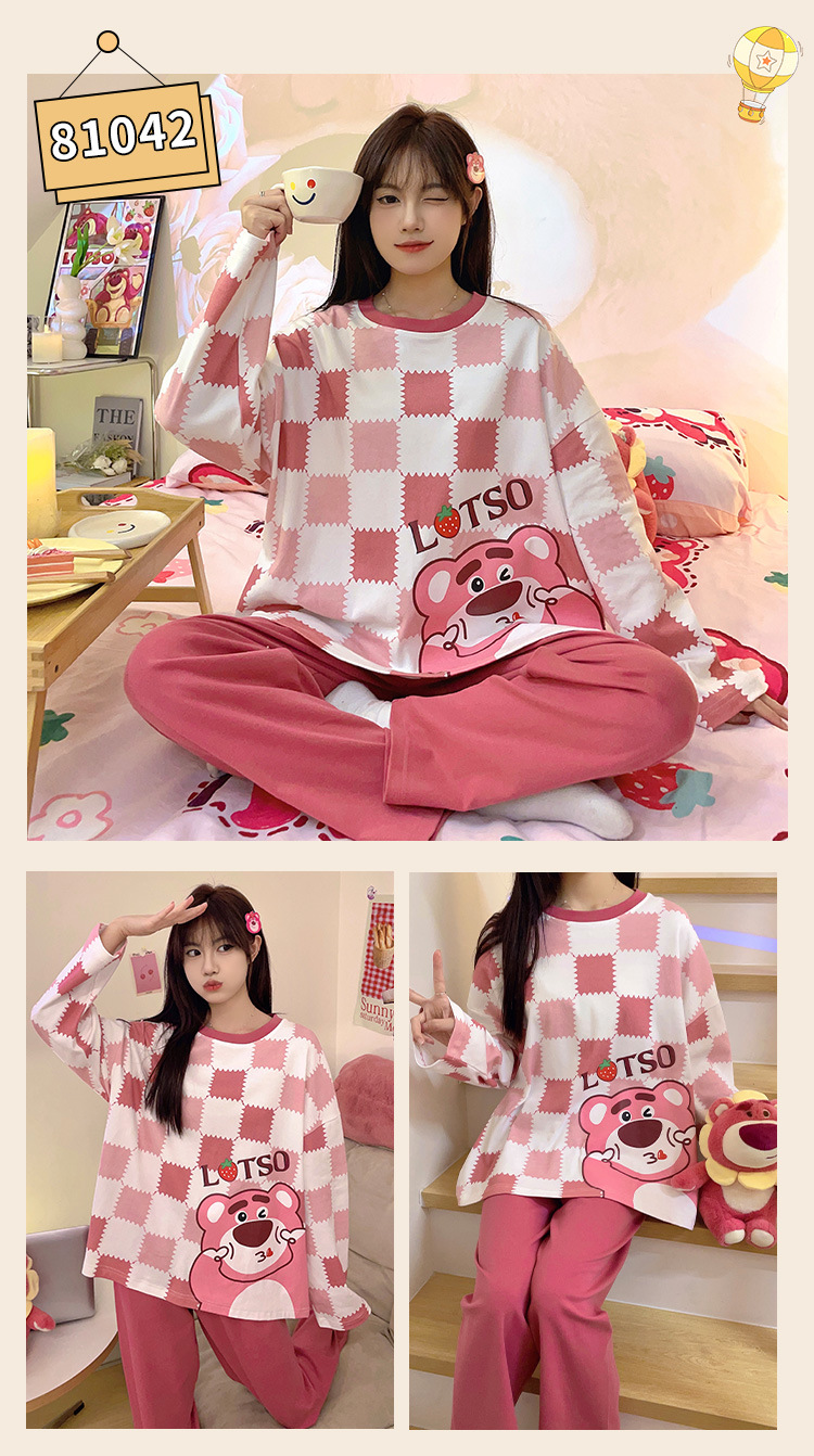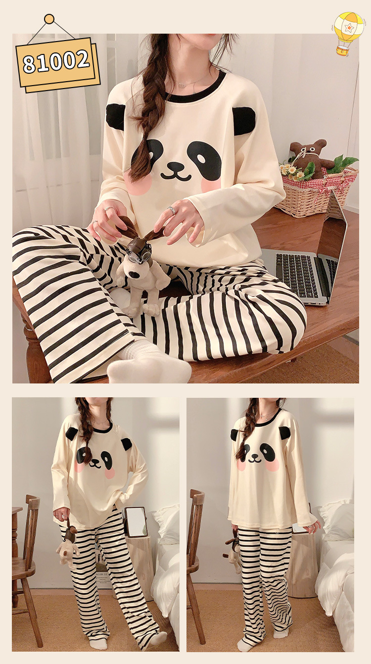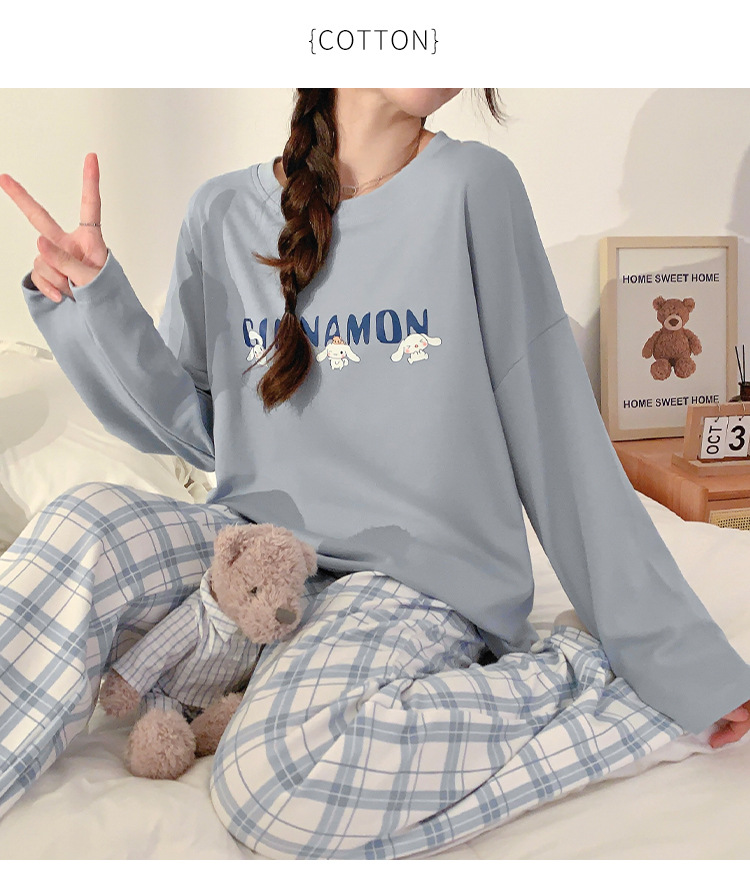 봄과 가을 잠옷 여자의 긴 소매 바지 만화 세트 2023 새로운 여름 가정 의류 인터넷 인기있는 스타일 겉옷스토어 가기