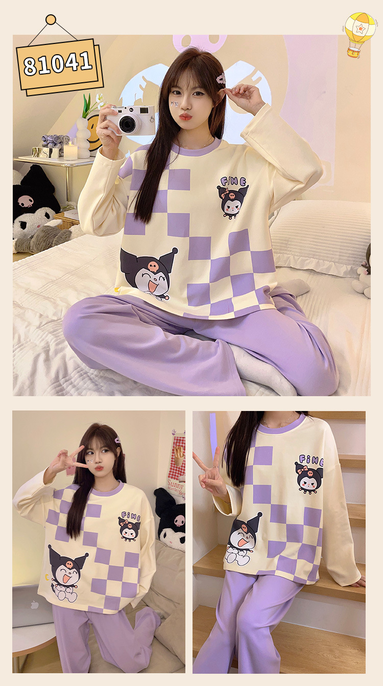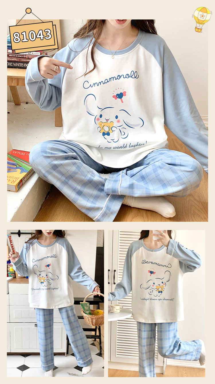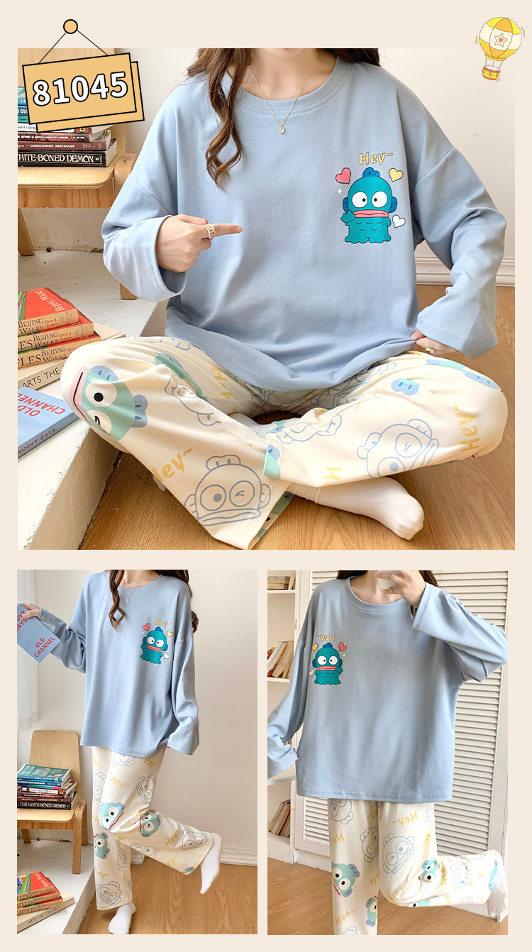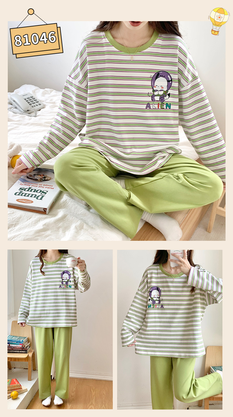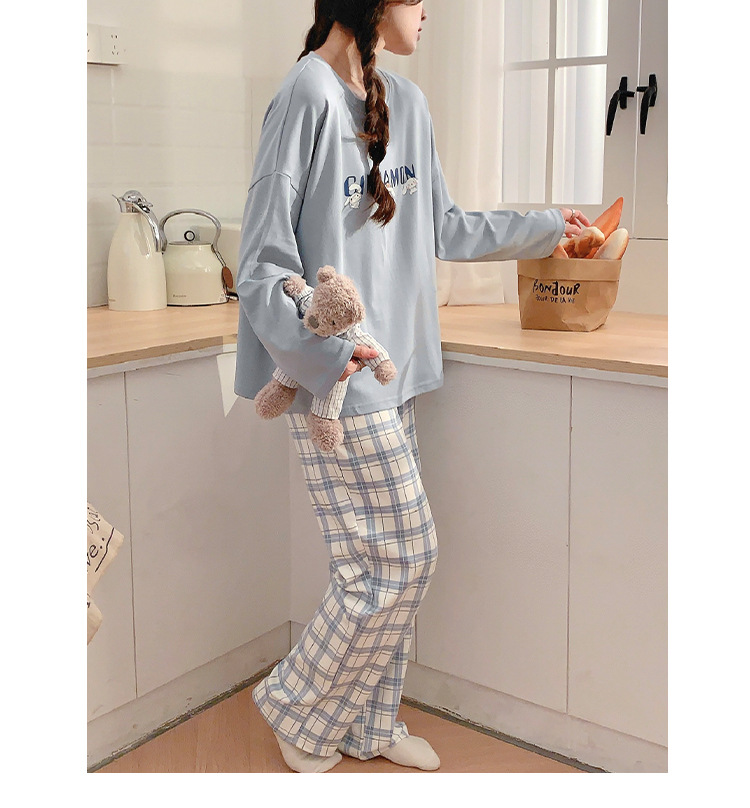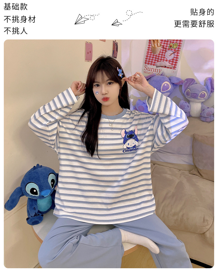 봄과 가을 잠옷 여자의 긴 소매 바지 만화 세트 2023 새로운 여름 가정 의류 인터넷 인기있는 스타일 겉옷스토어 가기
