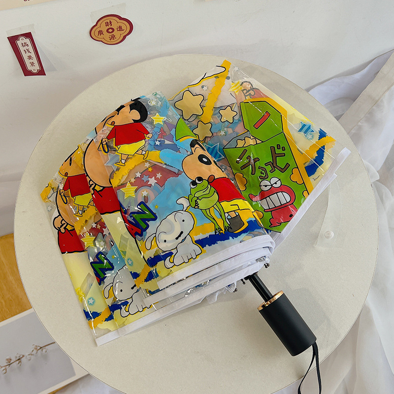 크레용 신 새로운 투명 우산 3 배 우산 완전 자동 인터넷-유명한 스트레이트 핸들 우산 귀여운 접는 어린이 성인 두꺼운 여성