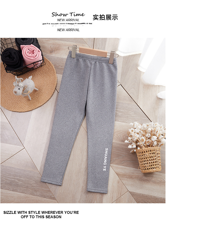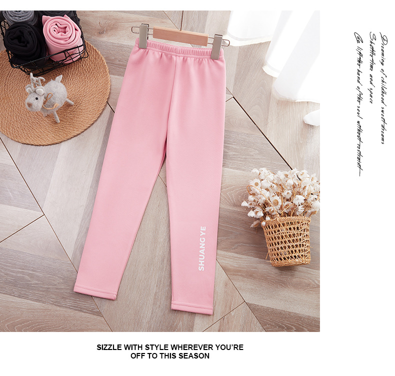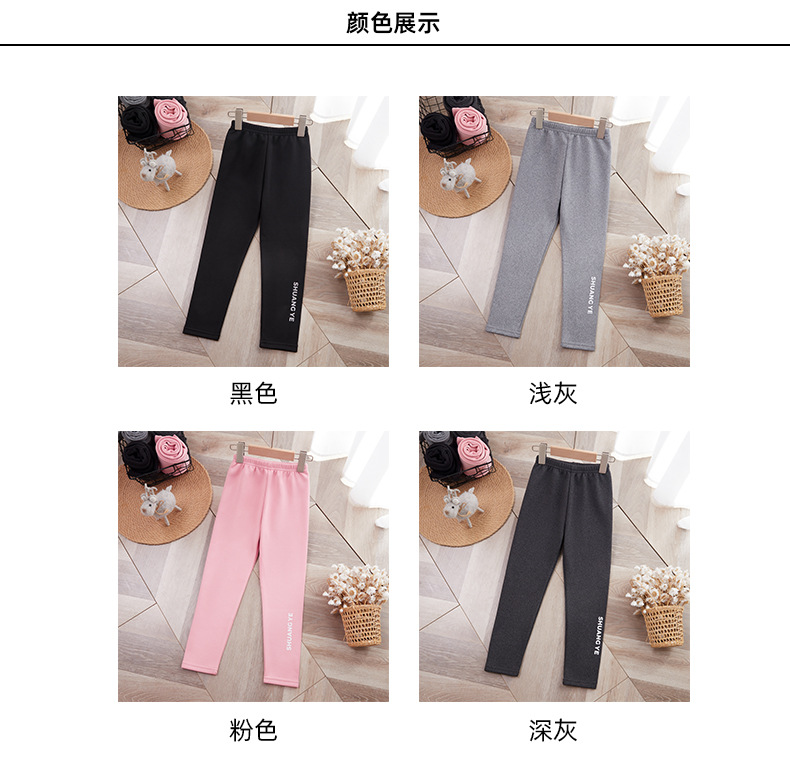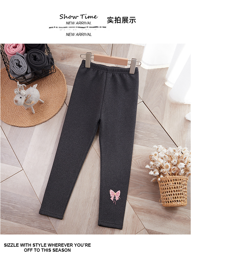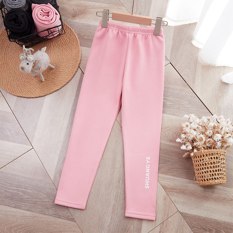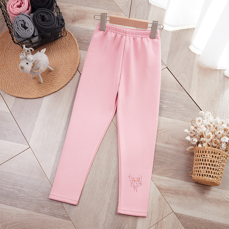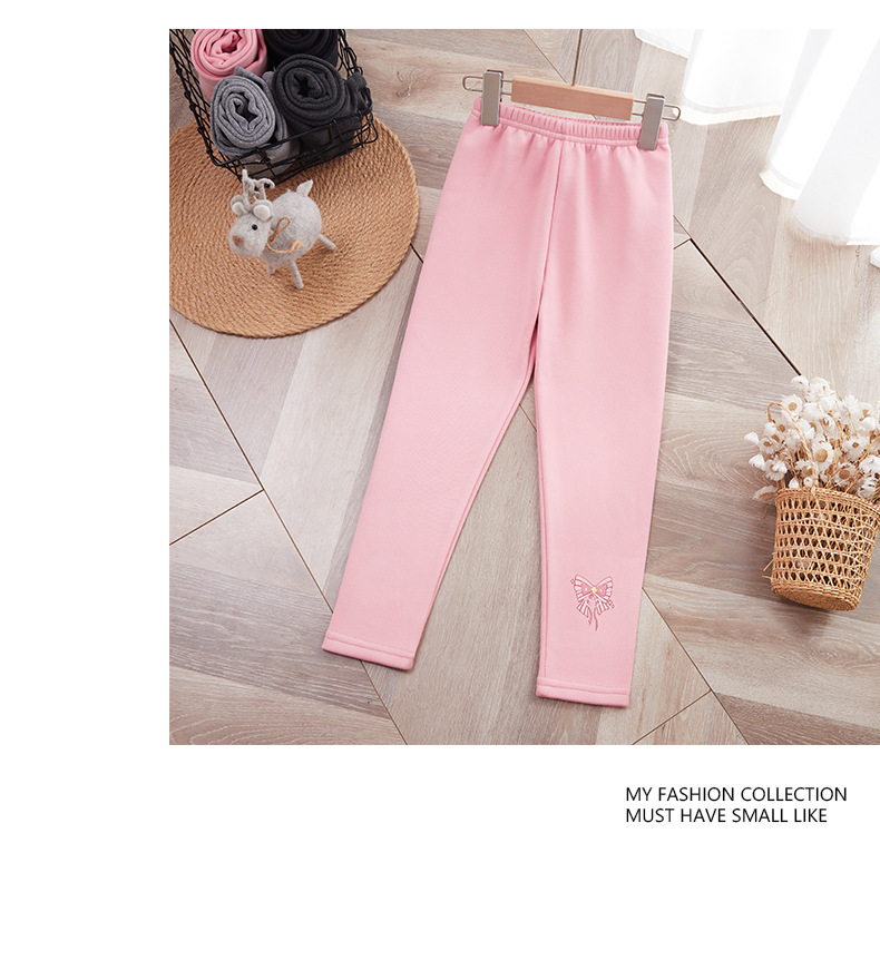 25 가을 겨울 아동용 기모 안감 보온 바지 여아용 리본 프린트 레깅스 유아용 레터링 캐주얼 바지스토어 가기