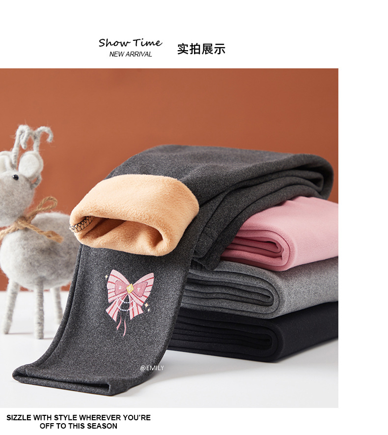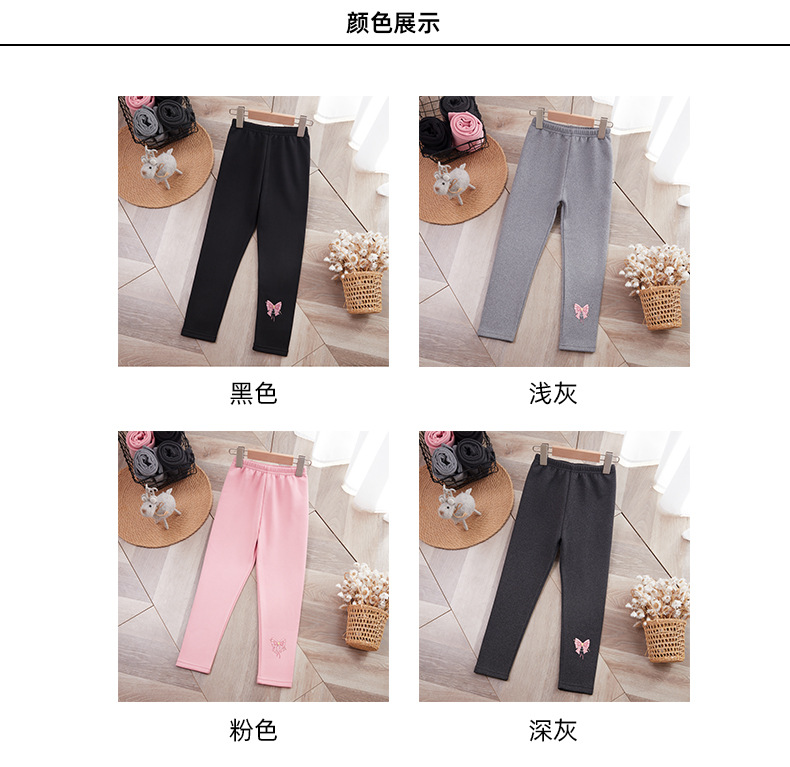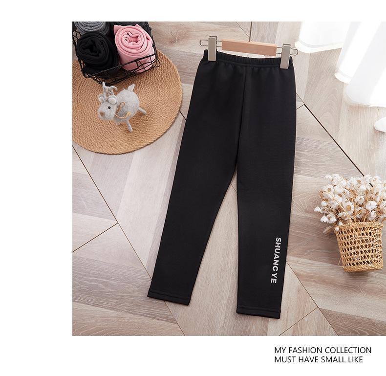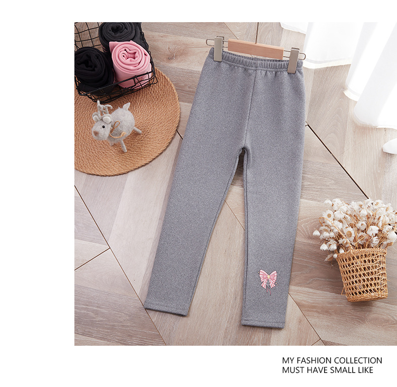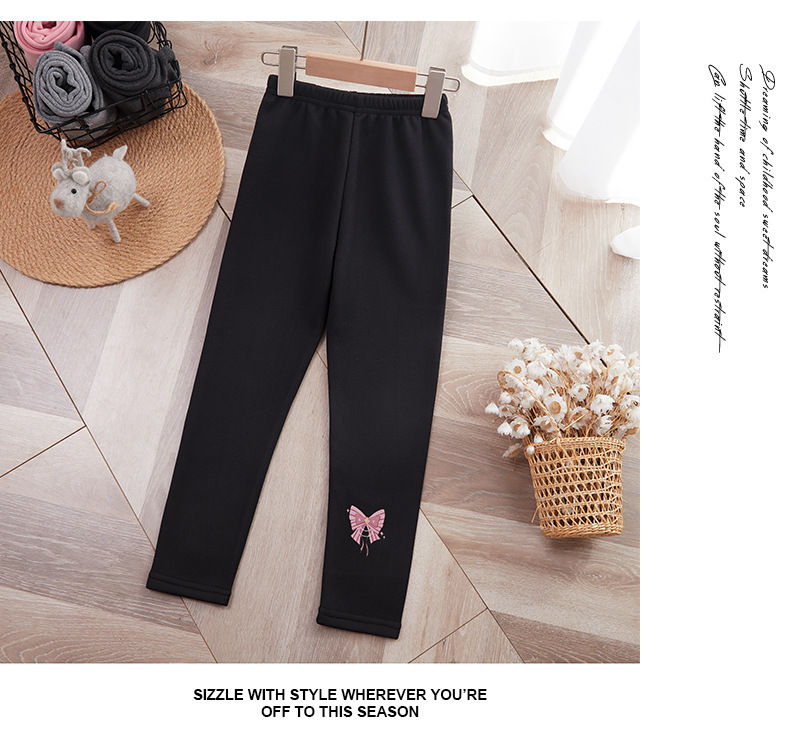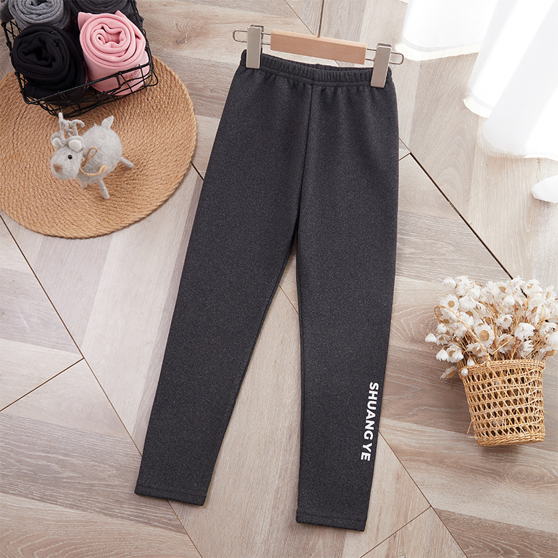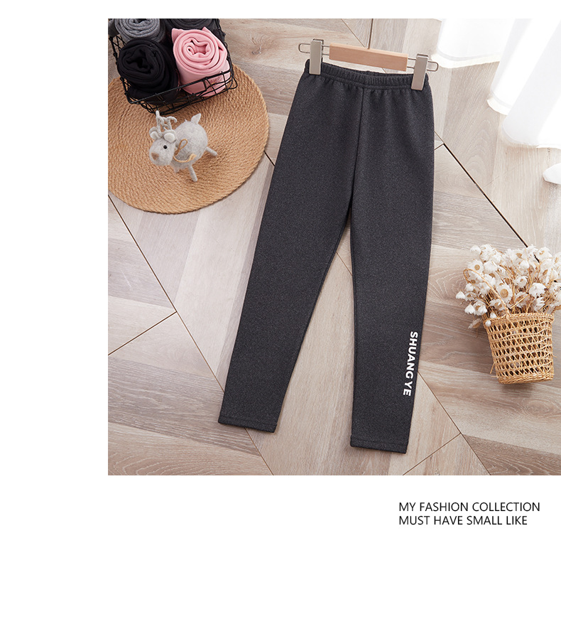 25 가을 겨울 아동용 기모 안감 보온 바지 여아용 리본 프린트 레깅스 유아용 레터링 캐주얼 바지스토어 가기