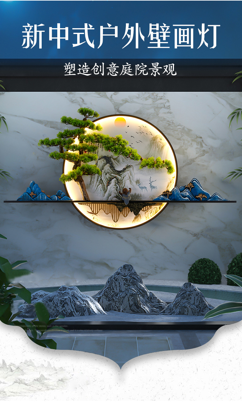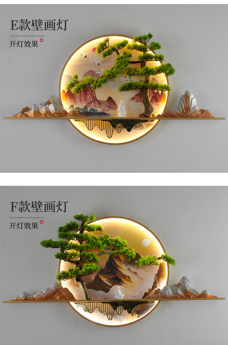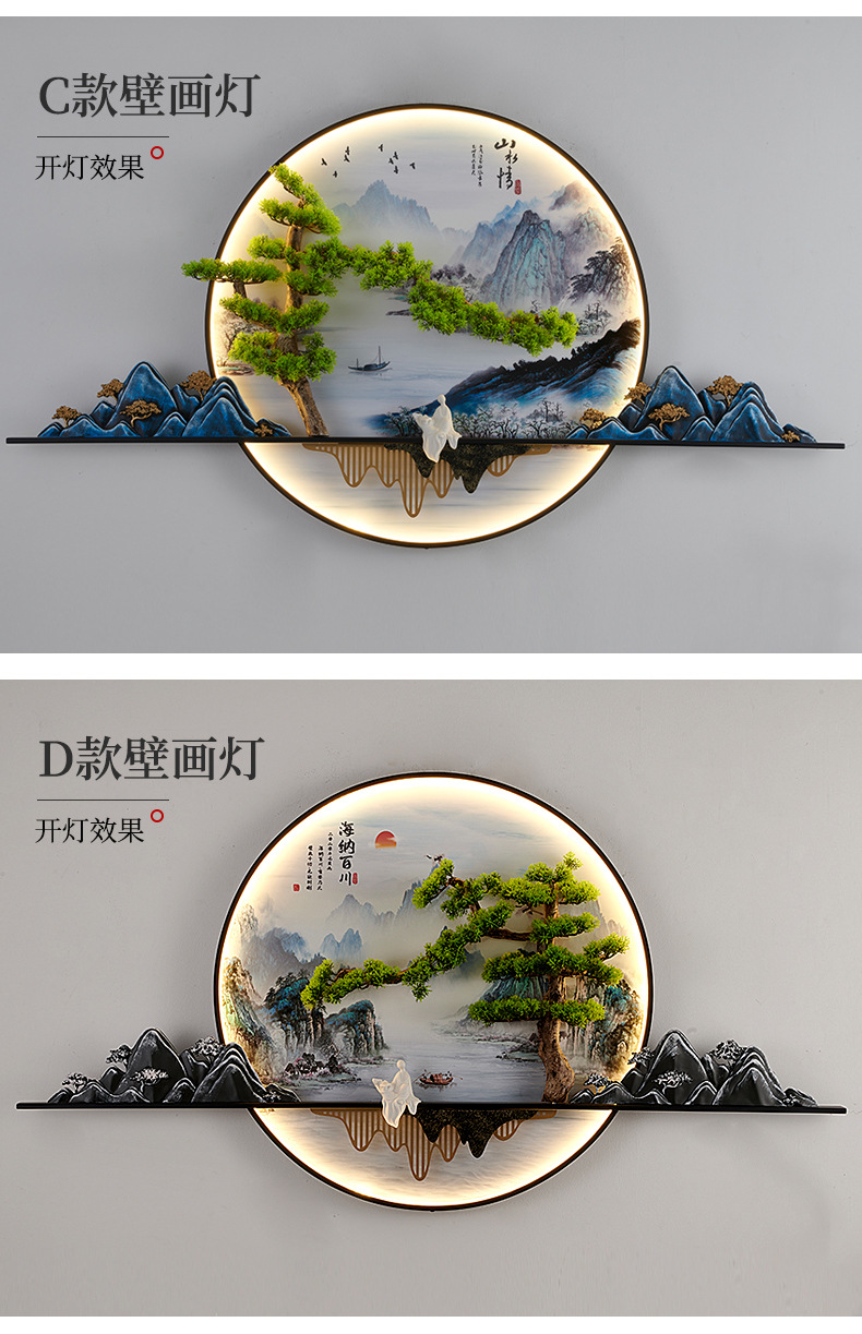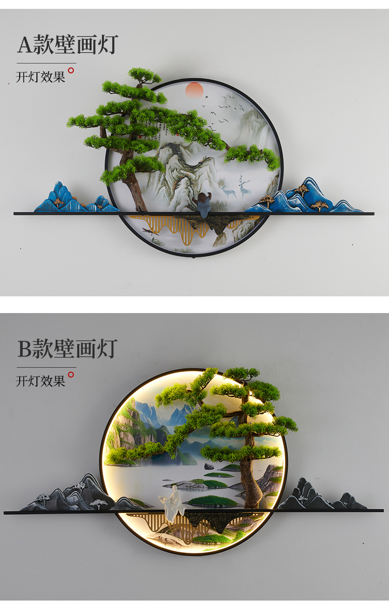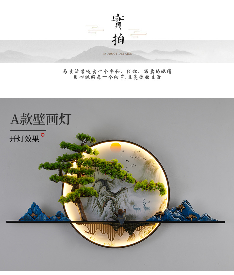 새로운 중국 스타일 거실 소파 배경 벽 환영 소나무 장식 그림 복도 풍경 젠 티 룸 티 테이블 교수형 그림 벽 램프