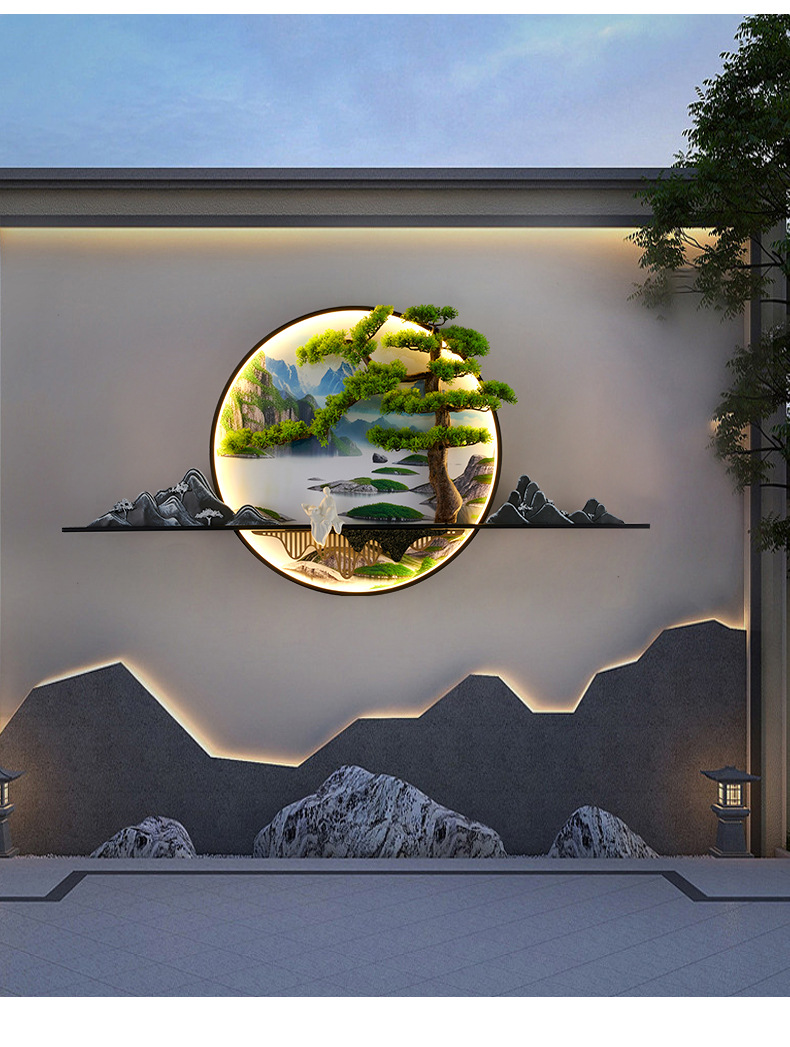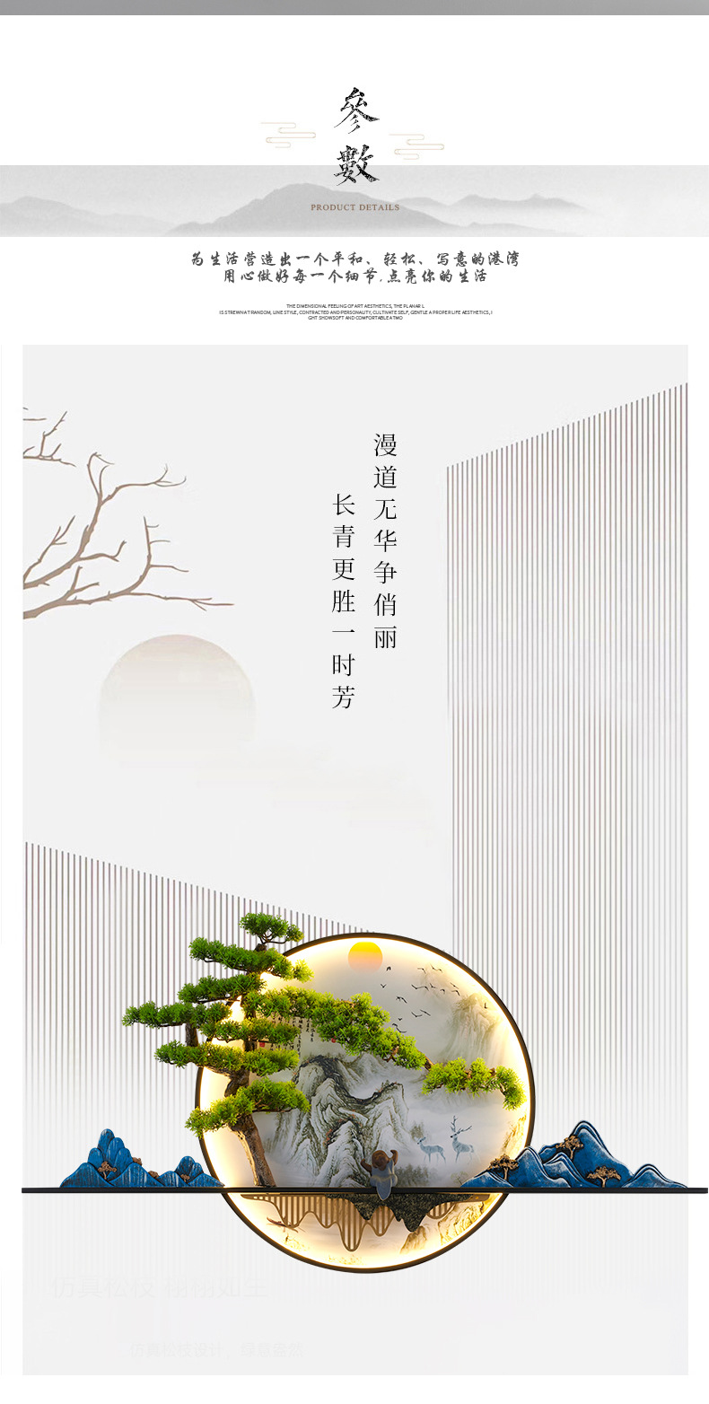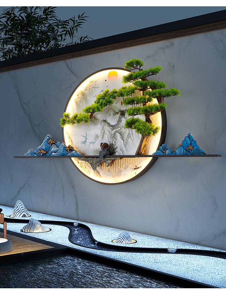 새로운 중국 스타일 거실 소파 배경 벽 환영 소나무 장식 그림 복도 풍경 젠 티 룸 티 테이블 교수형 그림 벽 램프스토어 가기