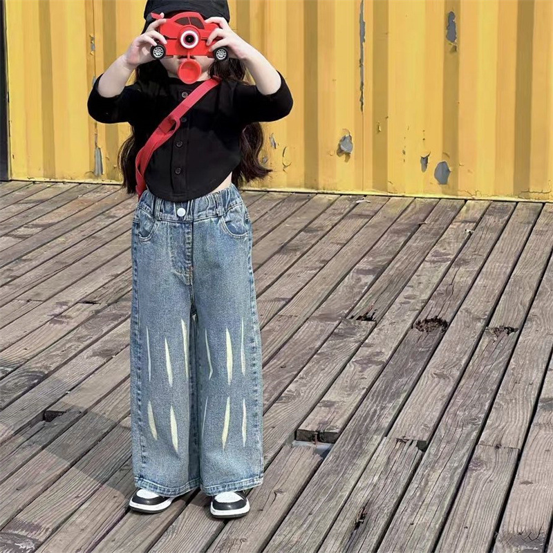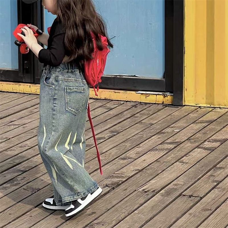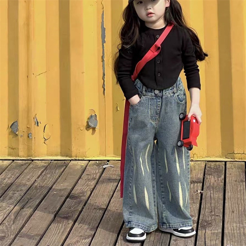 가을 77208 새로운 어린이 청바지 봄과 가을 옷 아기 소녀의 티셔츠 웨스턴 스타일 투피스 세트 소녀의 세트 가을스토어 가기
