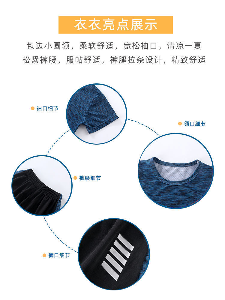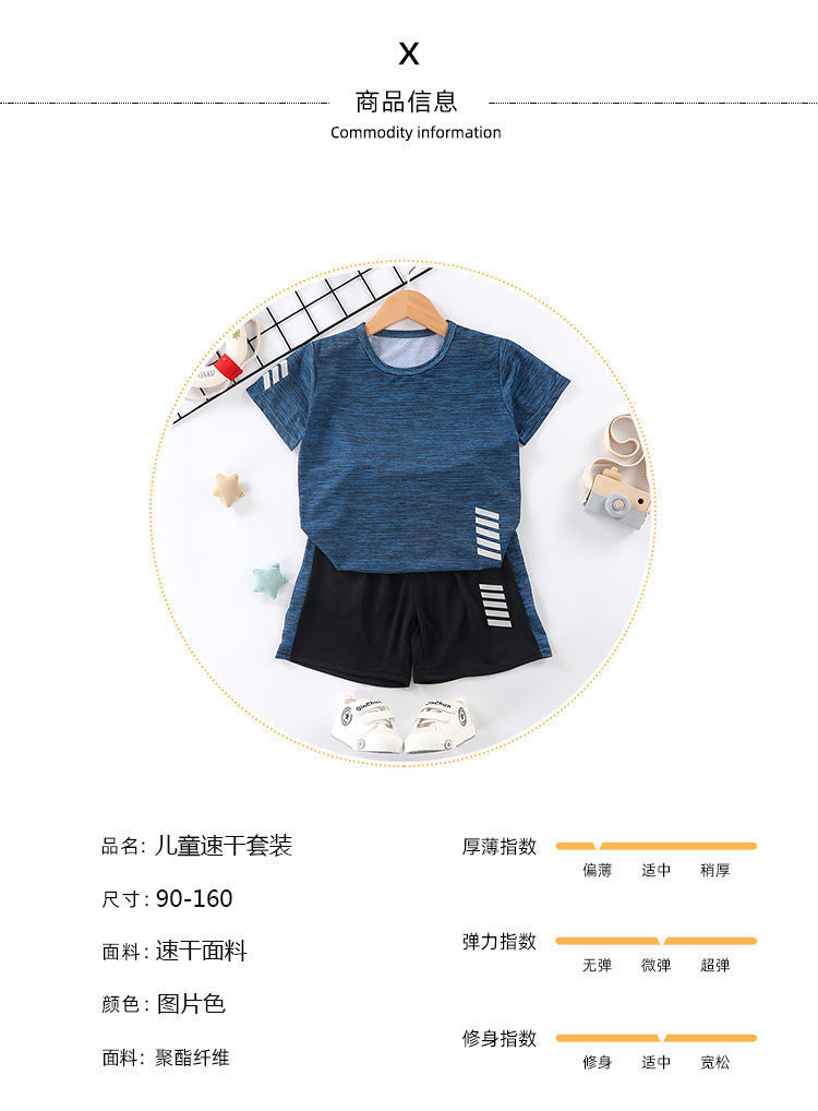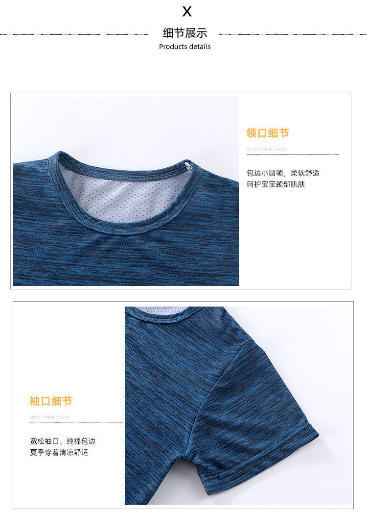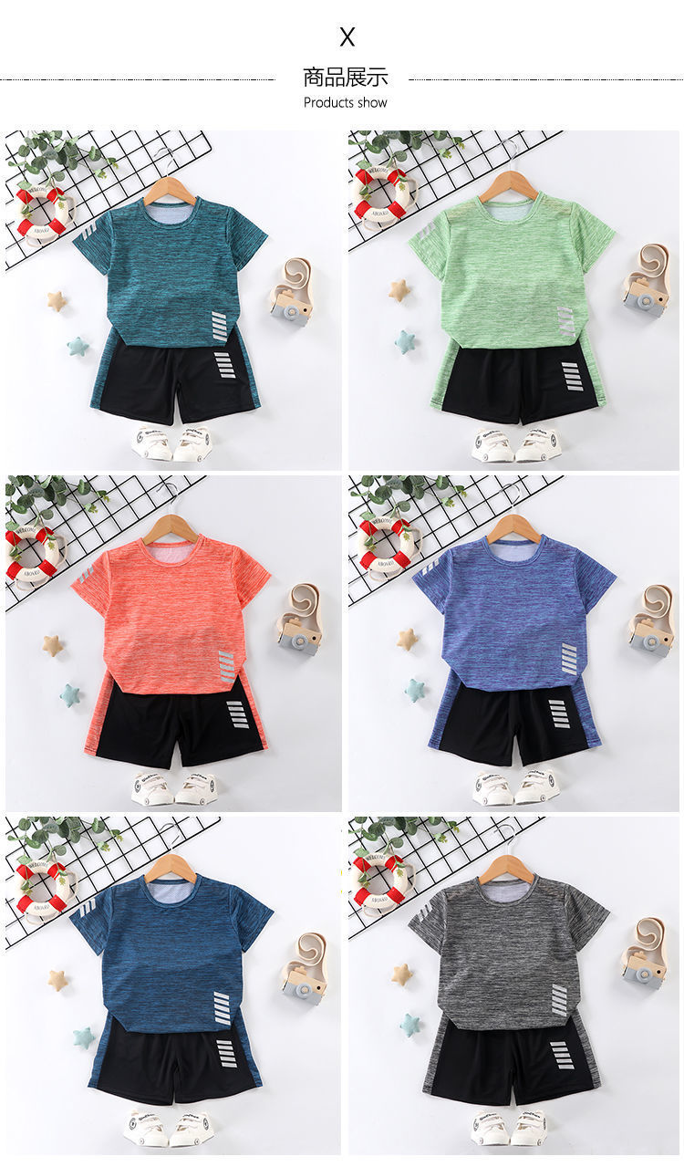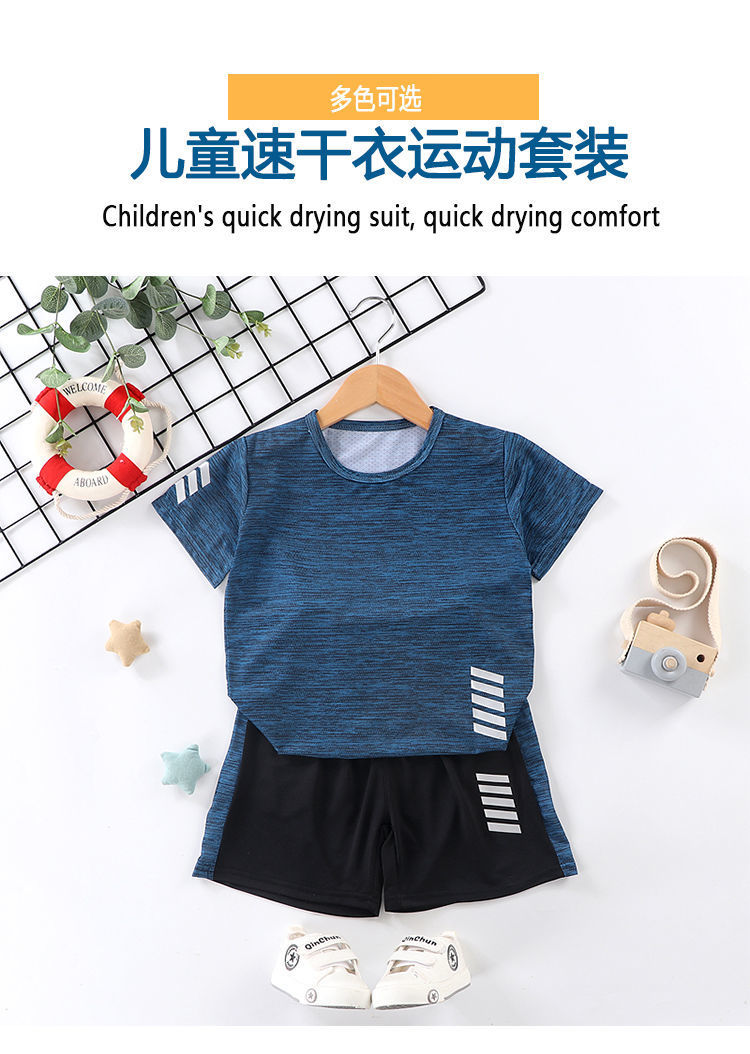 어린이 속건성 의류 세트 여름 운동복 소년 소녀용 아이스 실크 속건성 의류 새로운 반팔 반바지 투피스 세트스토어 가기