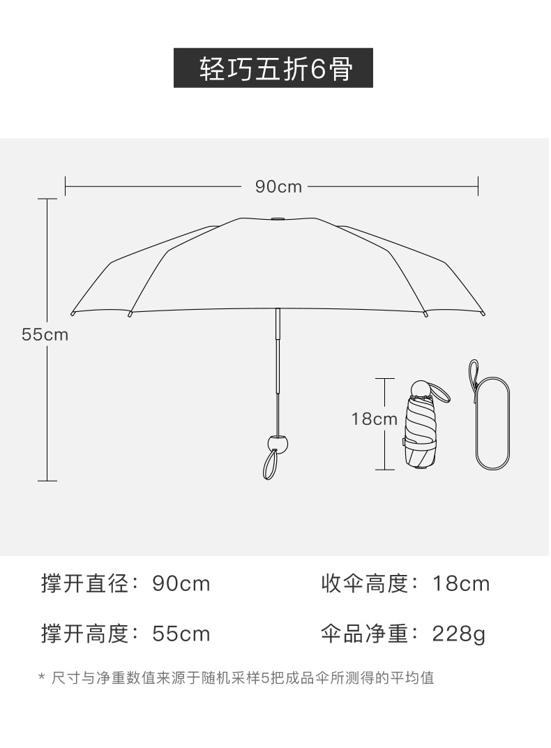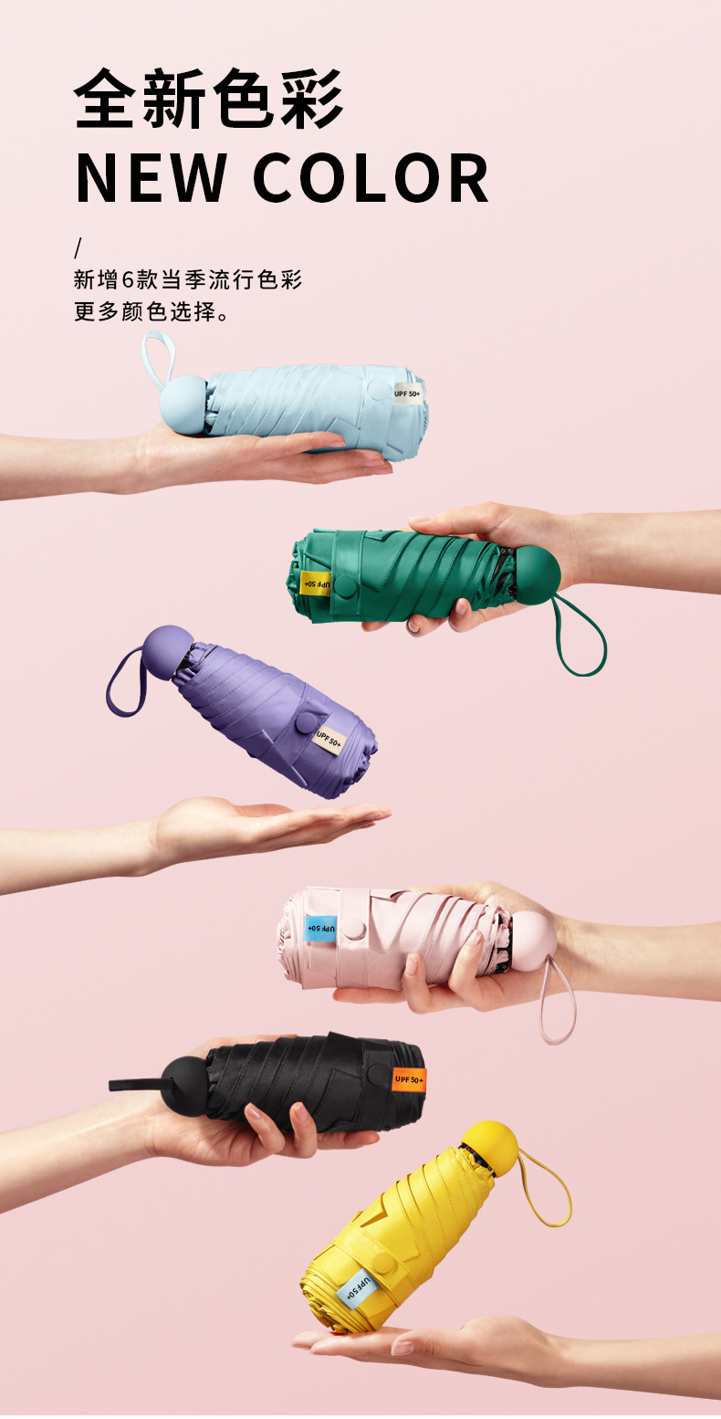 캡슐 태양 우산 선스크린 자외선 차단 맑고 비 방지 이중 사용 여성용 접이식 소형 휴대용 햇빛 미니 5 배 우산
