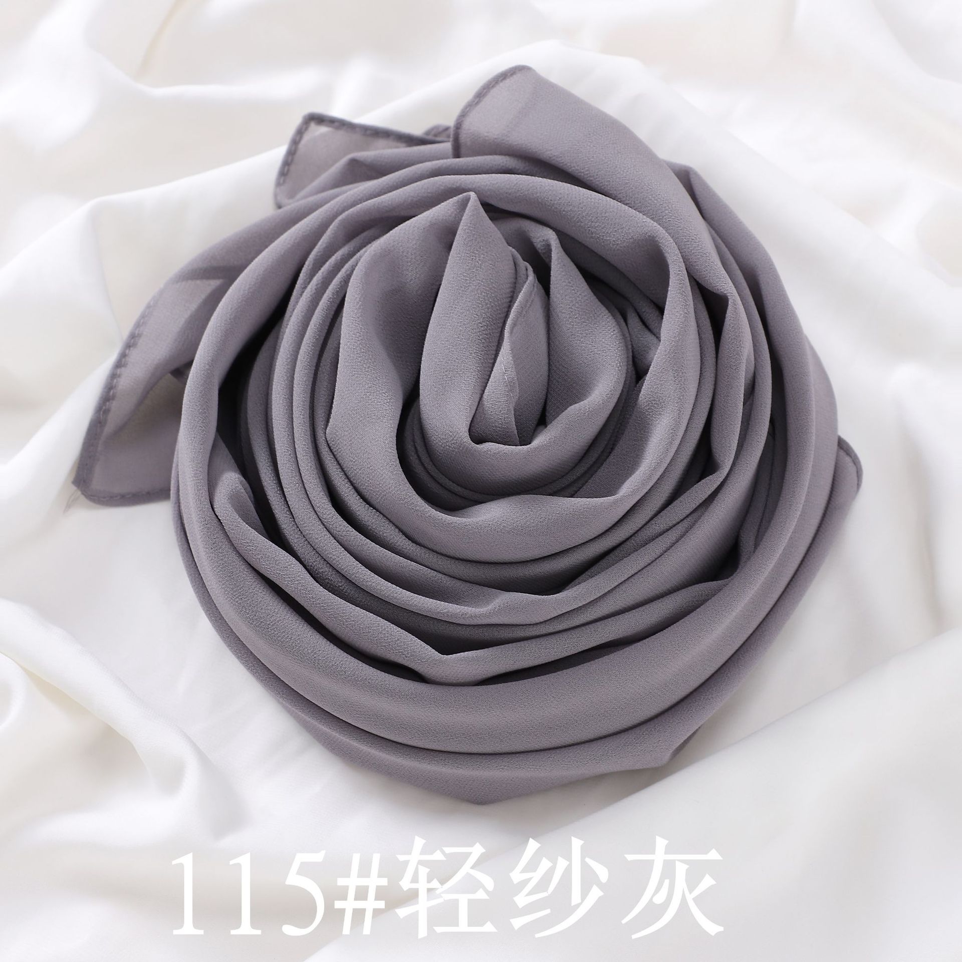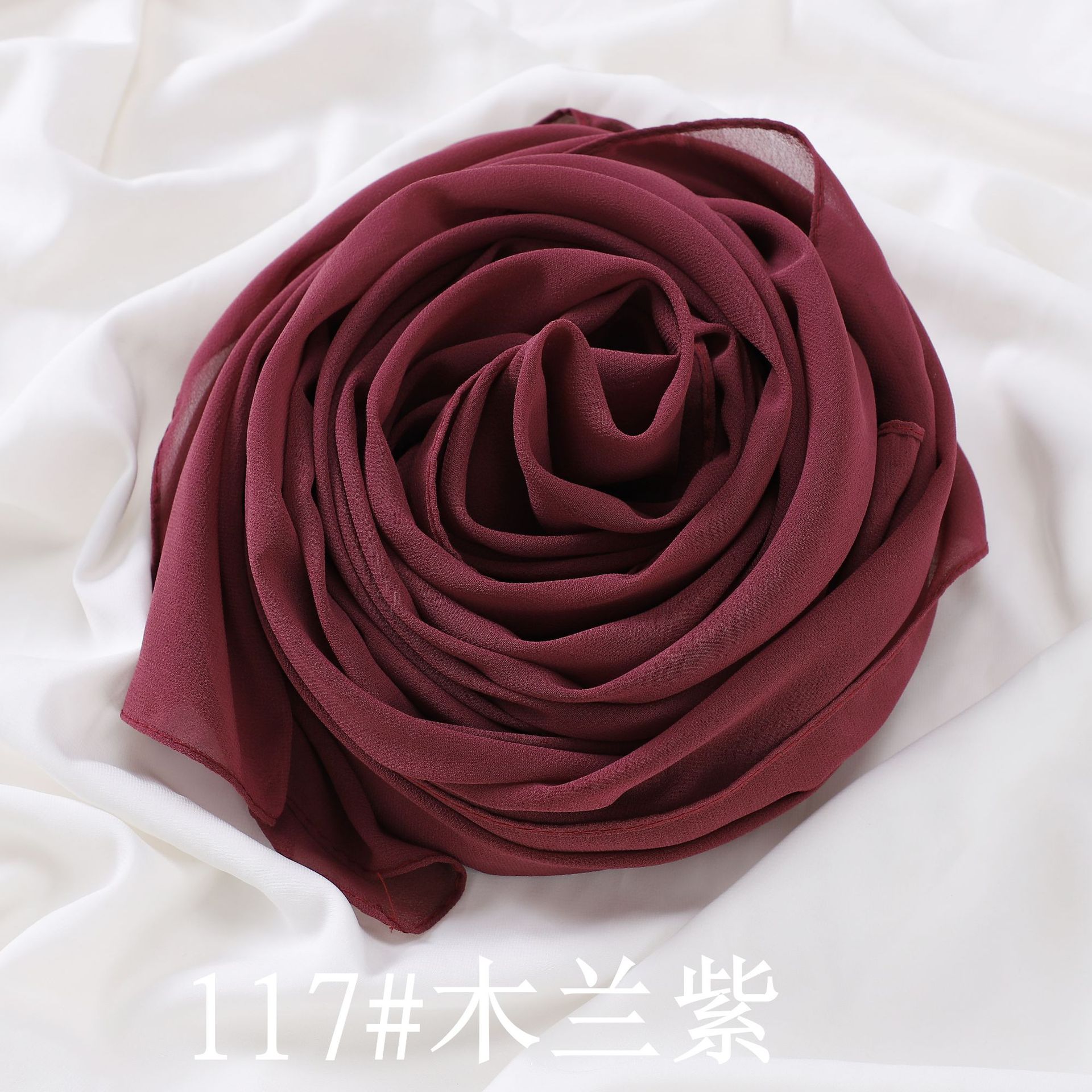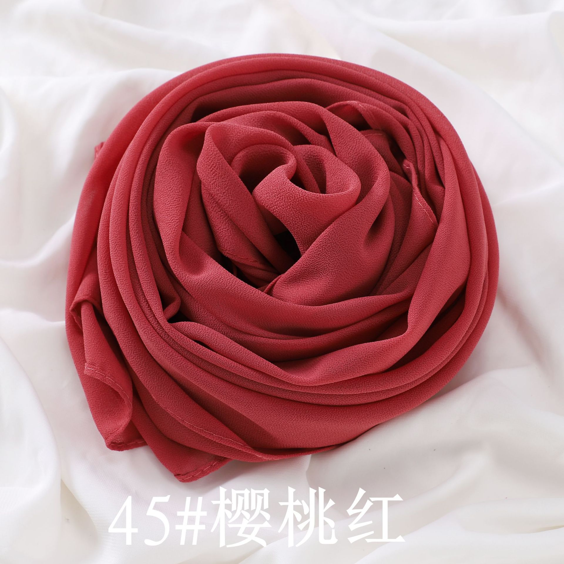 공장 직접 단색 진주 쉬폰 롱 스카프 단색 쉬폰 비즈 거즈 여성용 가방 터번 크로스 보더 숄 스카프