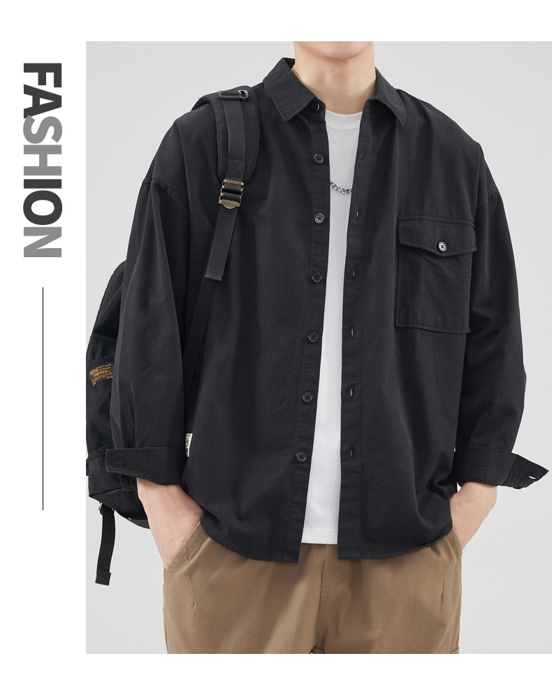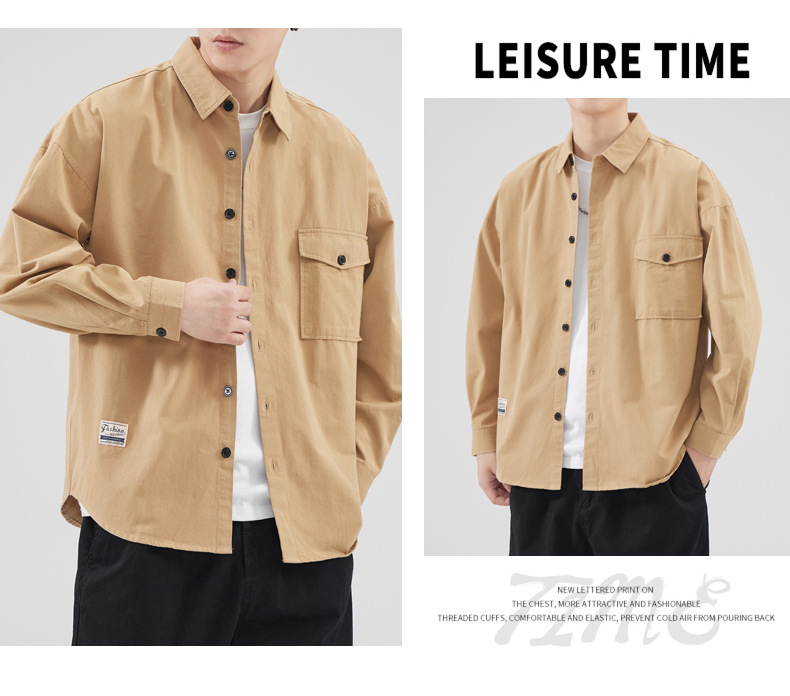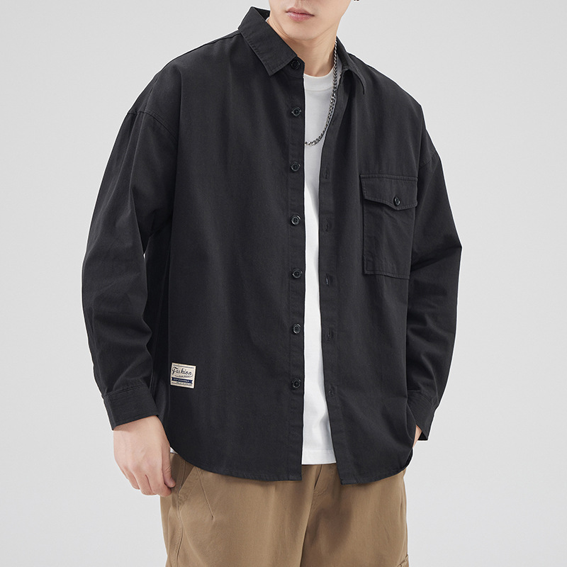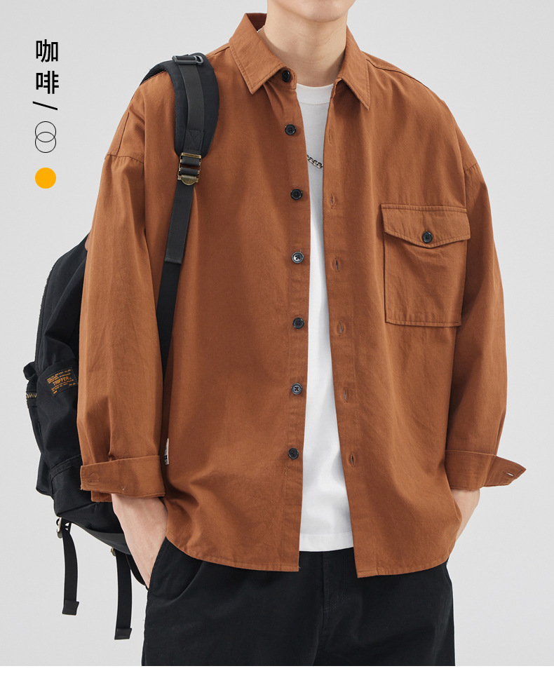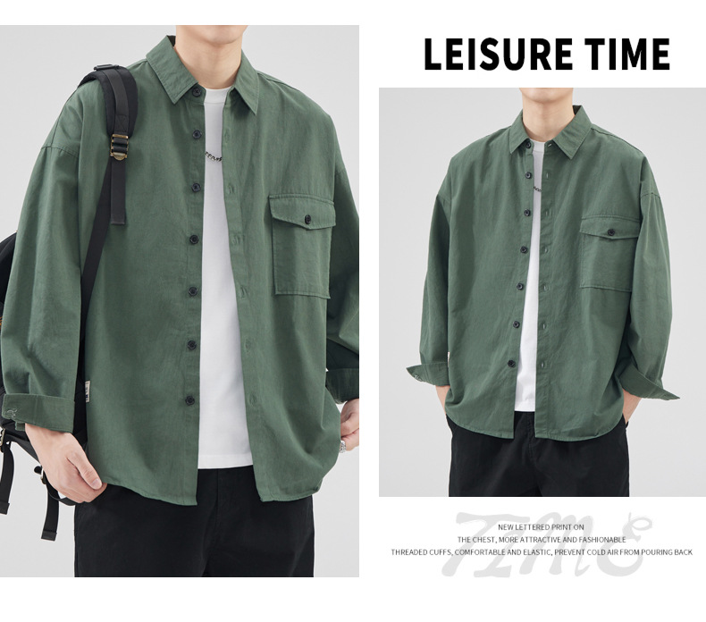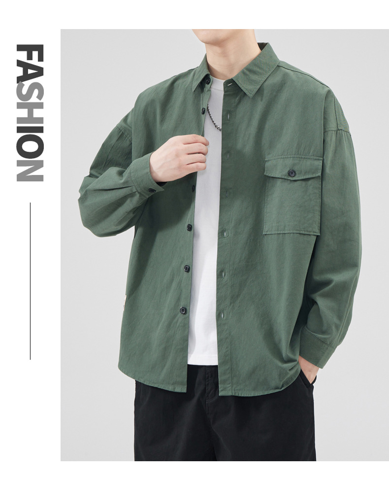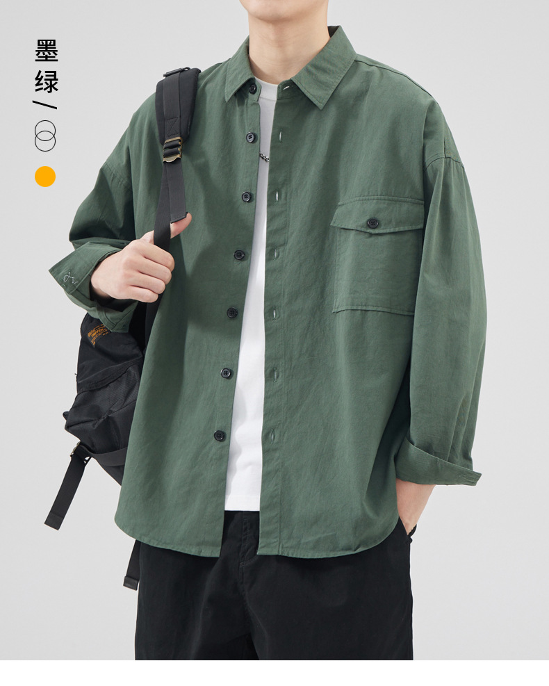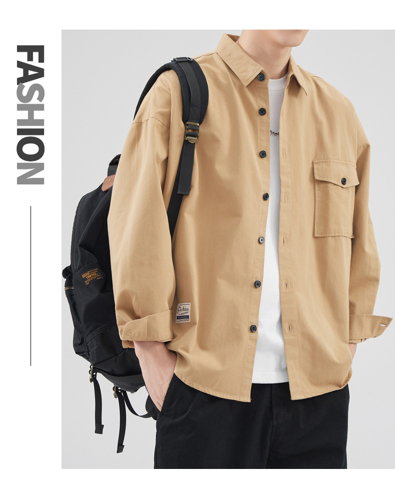 면 긴 소매 셔츠 남성용 봄과 가을 일본식 캐주얼 루즈한 재킷 남성용 트렌디 한 모든 매치 작업복 패션 셔츠