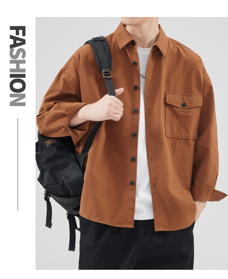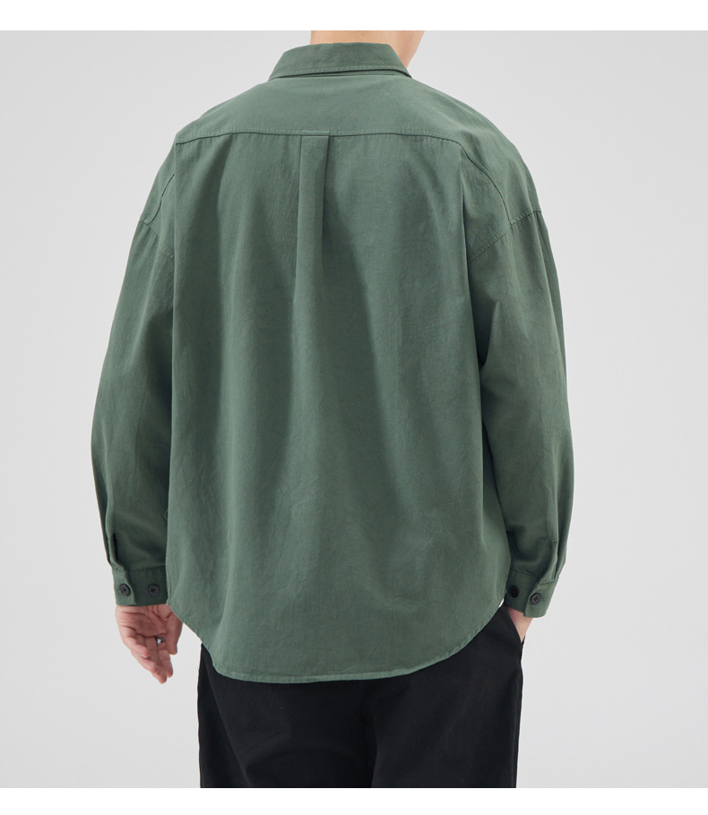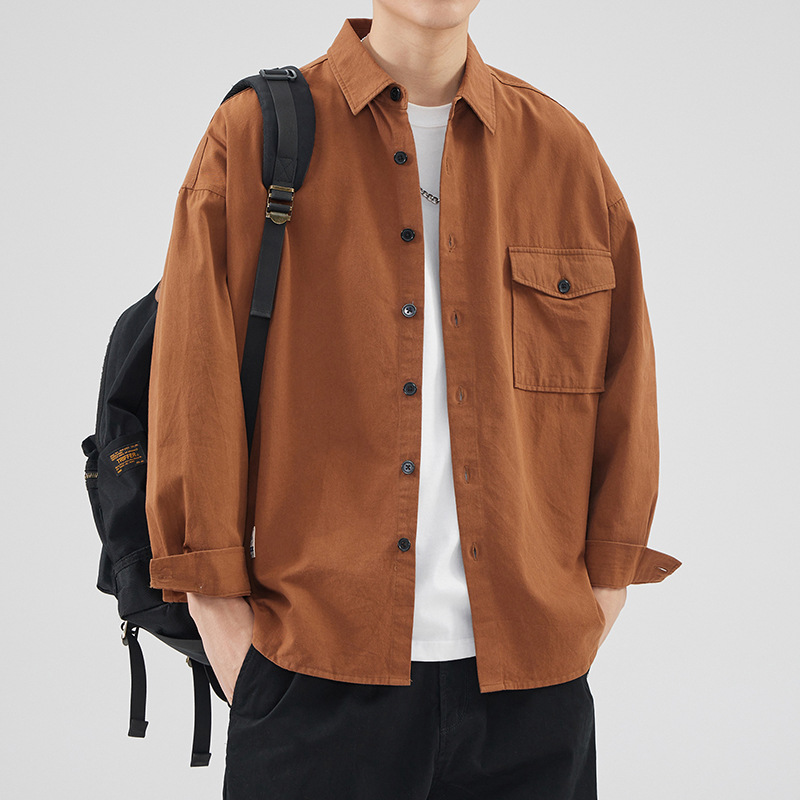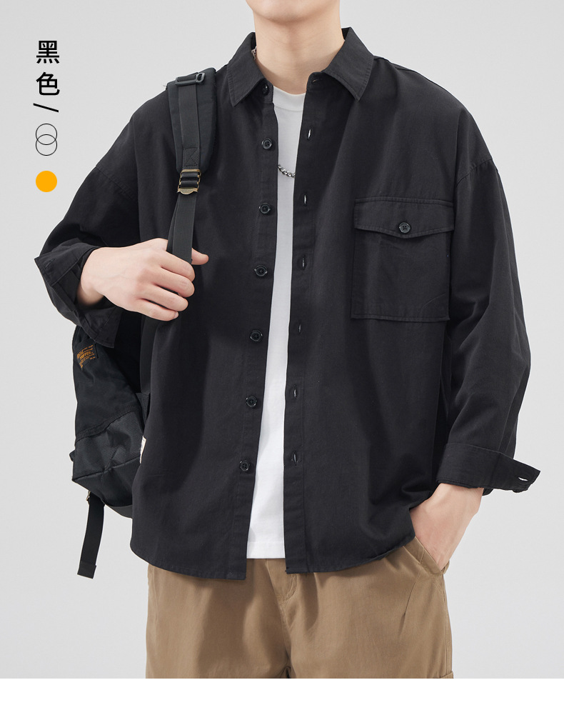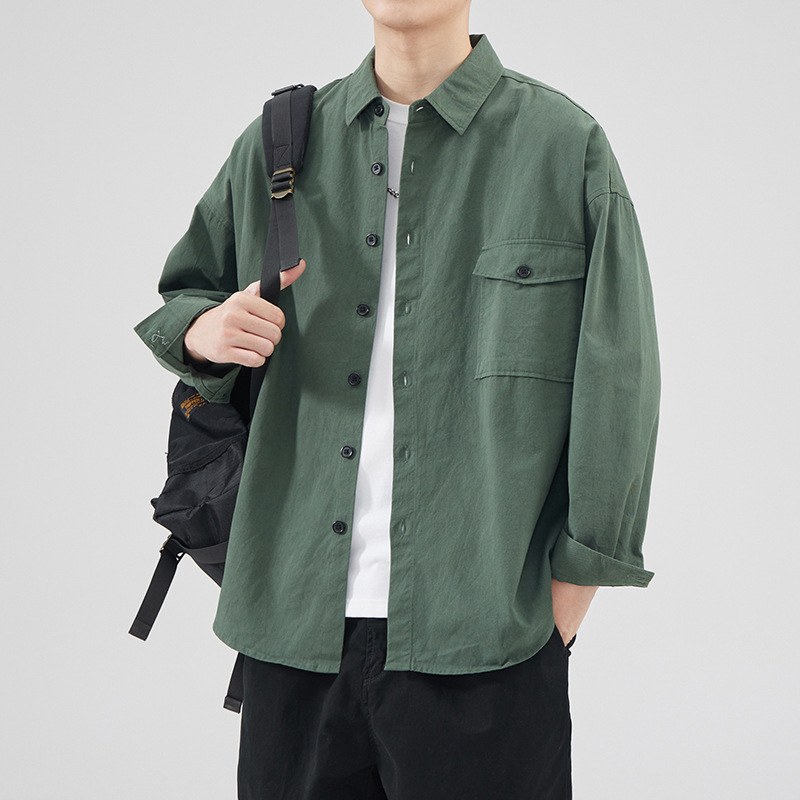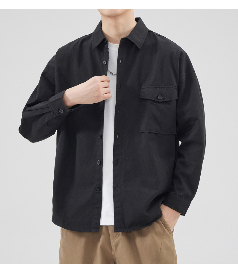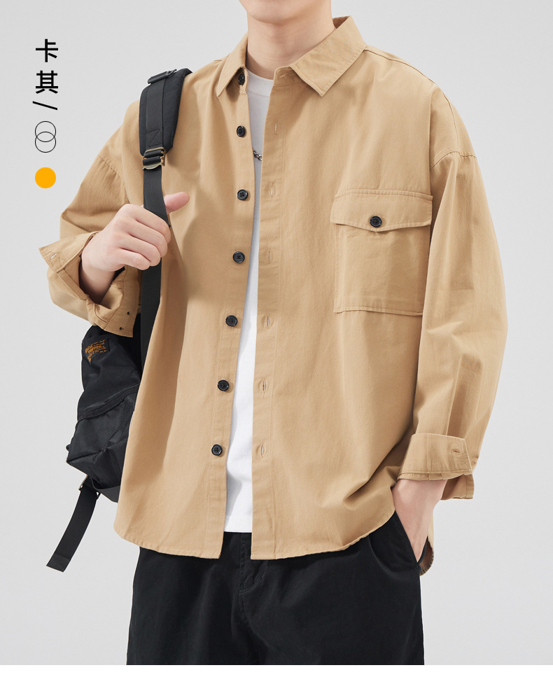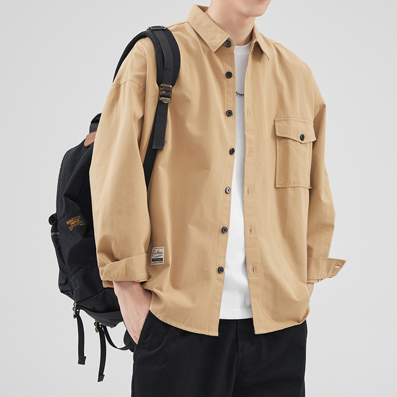 면 긴 소매 셔츠 남성용 봄과 가을 일본식 캐주얼 루즈한 재킷 남성용 트렌디 한 모든 매치 작업복 패션 셔츠