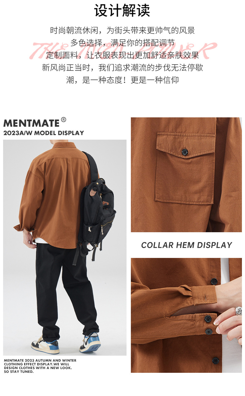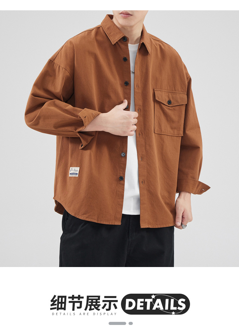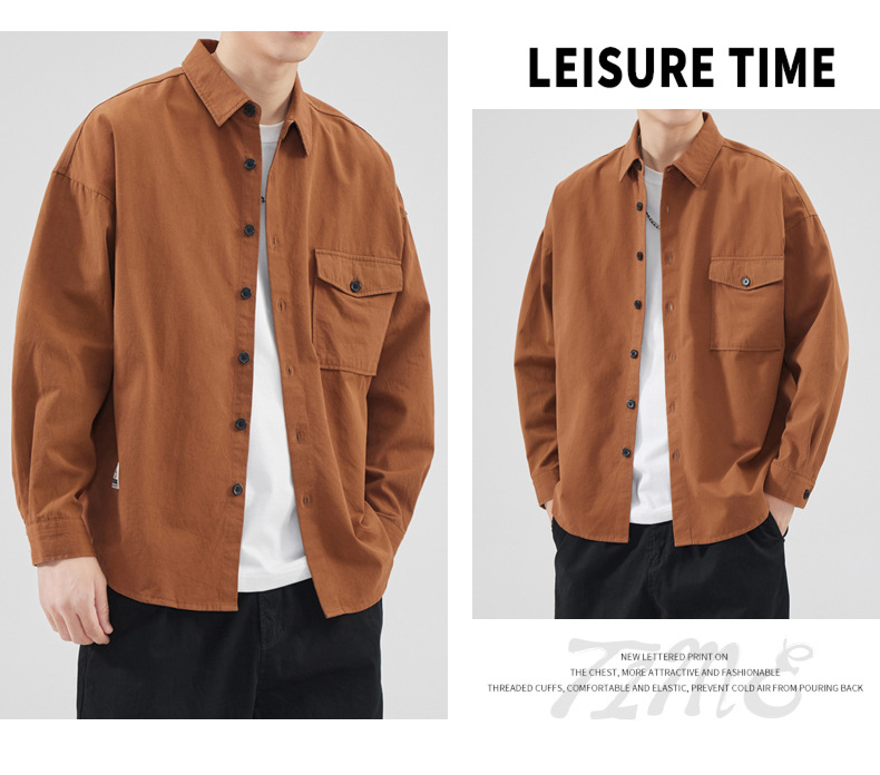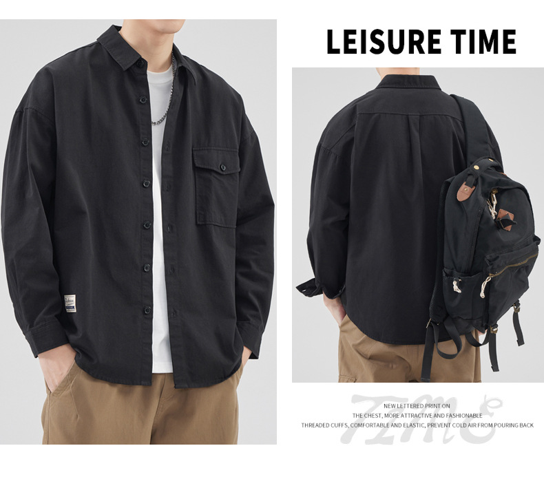 면 긴 소매 셔츠 남성용 봄과 가을 일본식 캐주얼 루즈한 재킷 남성용 트렌디 한 모든 매치 작업복 패션 셔츠스토어 가기