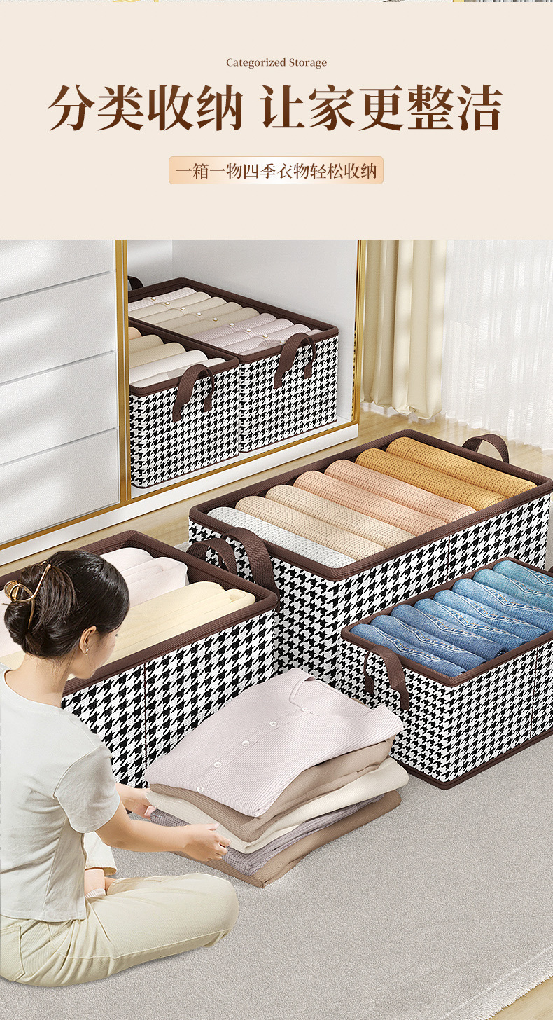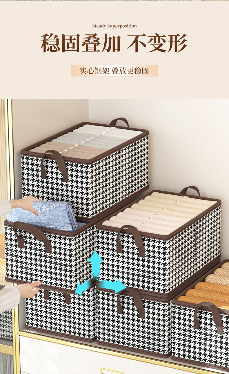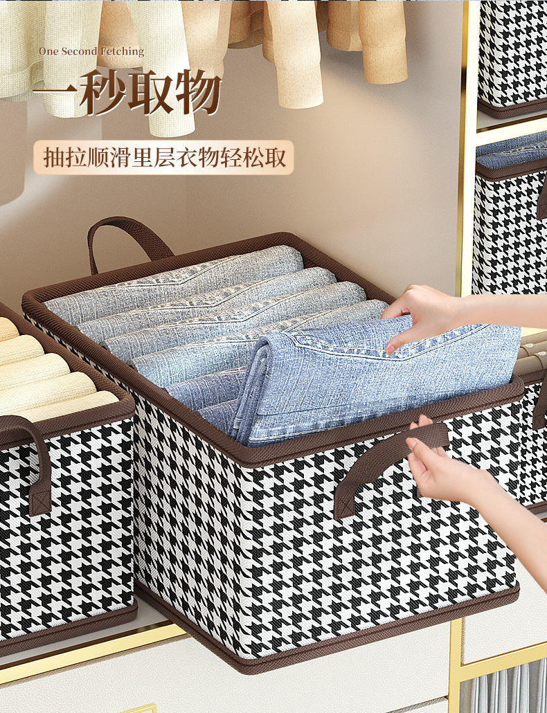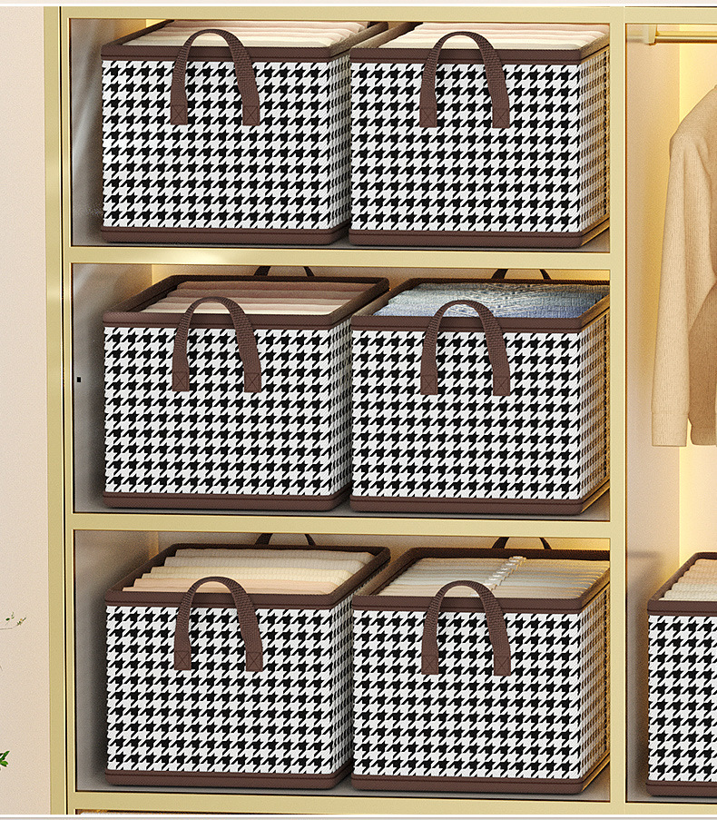 Houndstooth 의류 보관함 홈 옷장 바지 PP 보드 면 및 린넨 패브릭 접는 마무리 상자 계절 변경 유물