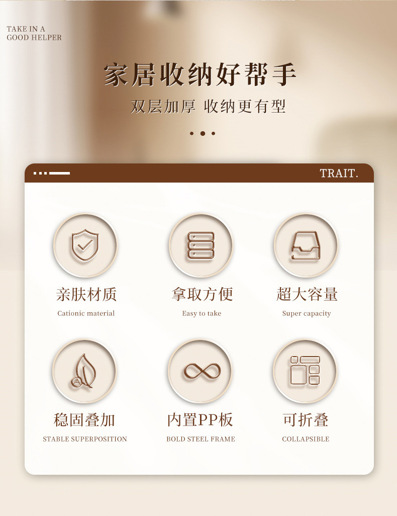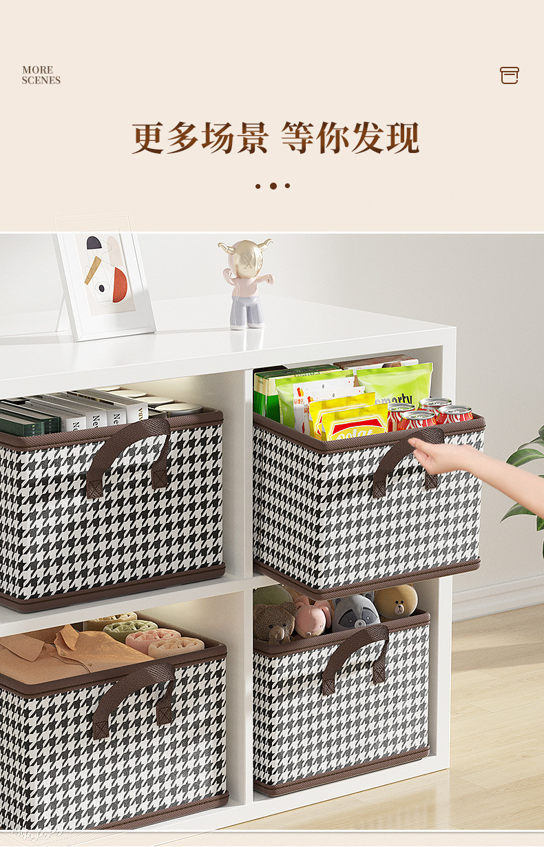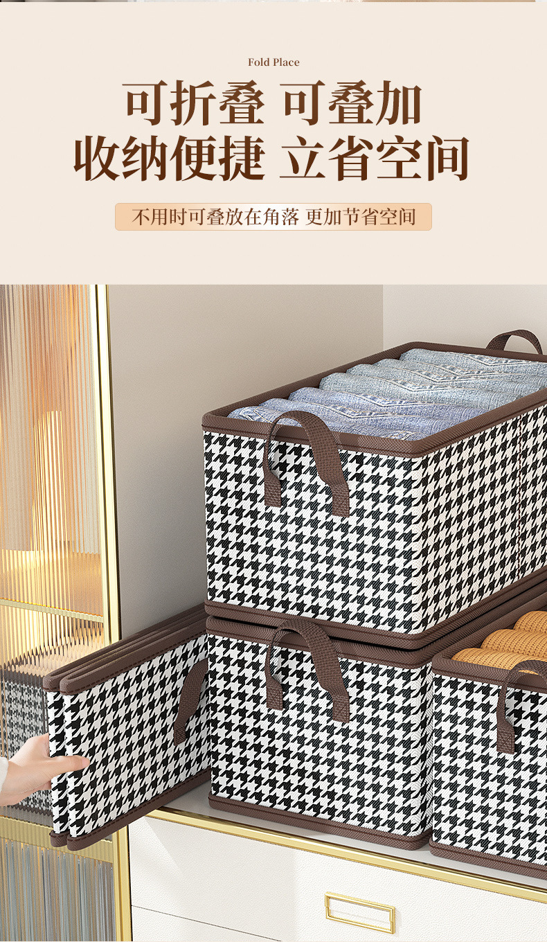 Houndstooth 의류 보관함 홈 옷장 바지 PP 보드 면 및 린넨 패브릭 접는 마무리 상자 계절 변경 유물