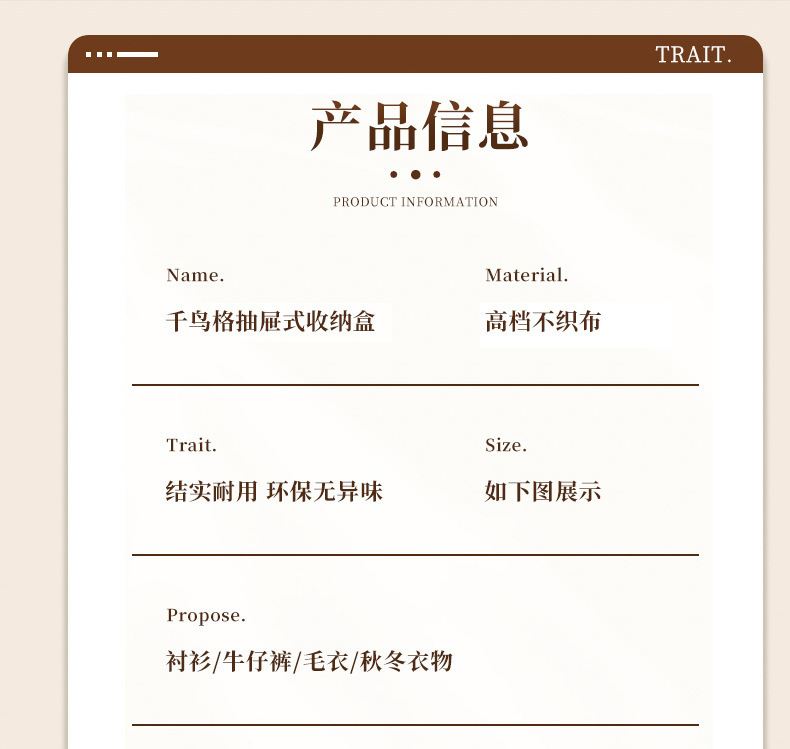 Houndstooth 의류 보관함 홈 옷장 바지 PP 보드 면 및 린넨 패브릭 접는 마무리 상자 계절 변경 유물스토어 가기