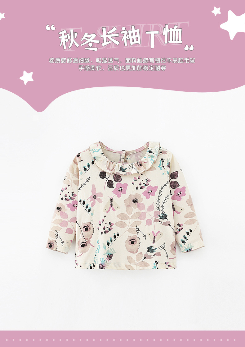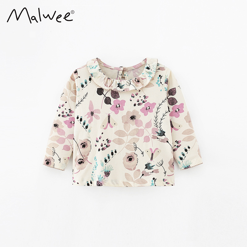 재고 malwee 어린이 티셔츠 가을 새로운 라운드 넥 어린이 긴 소매 기본 셔츠 서양 스타일 유럽과 미국 여자 옷스토어 가기