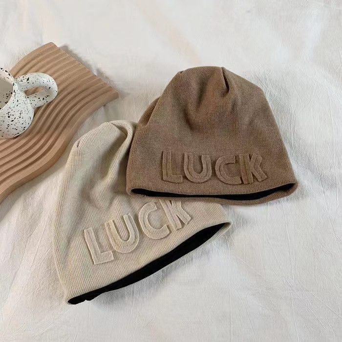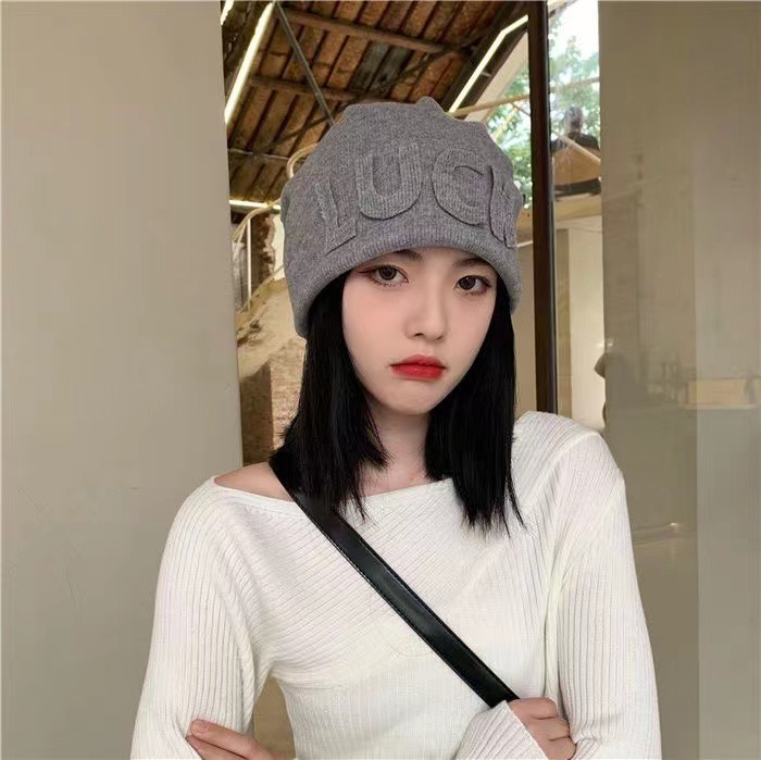 가을과 겨울 여성 파일 캡 LUCK 문자 콜드 캡 일본 올 매치 풀오버 캡 얼굴 작은 바오 터우 패치 모자