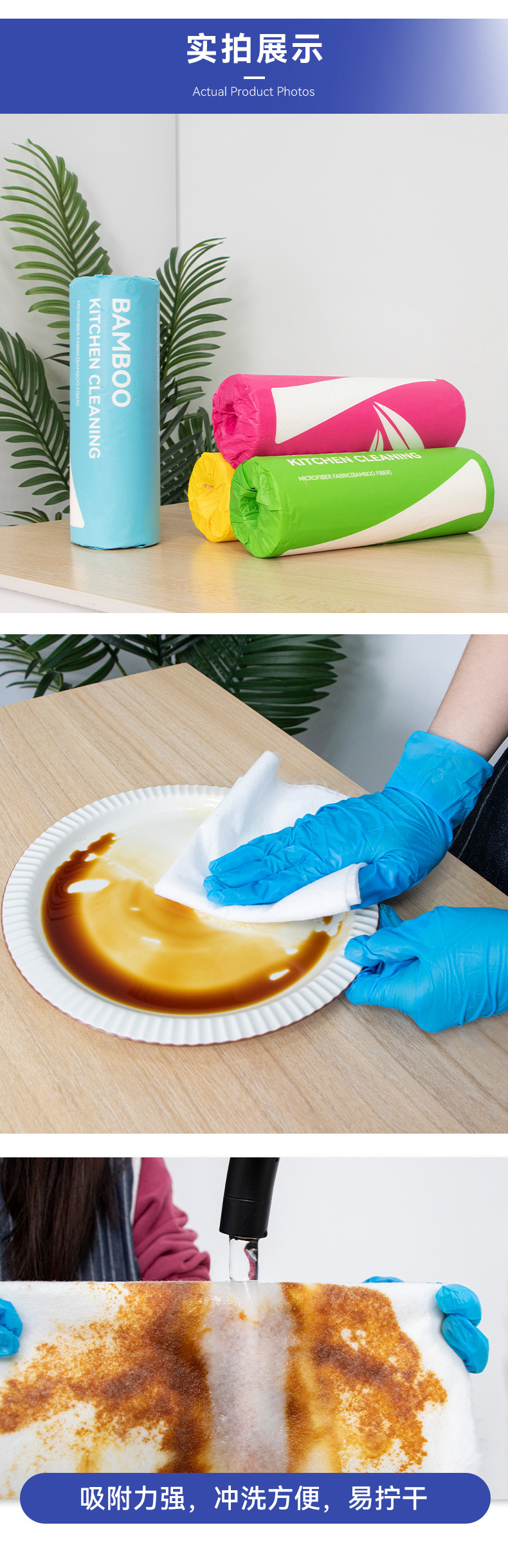 대나무 섬유 일회용 다용도 청소용품 건습 겸용 오염 제거 흡수 청소용 종이 두꺼운 주방 설거지용 천 도매