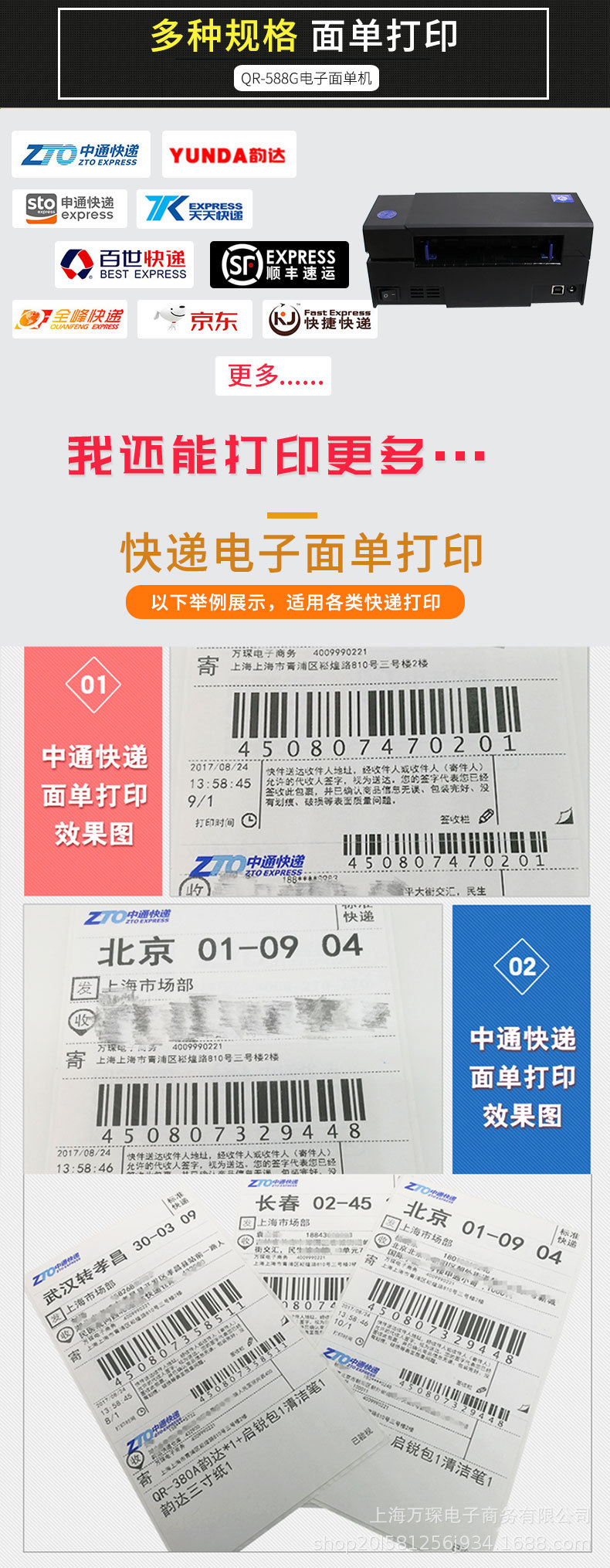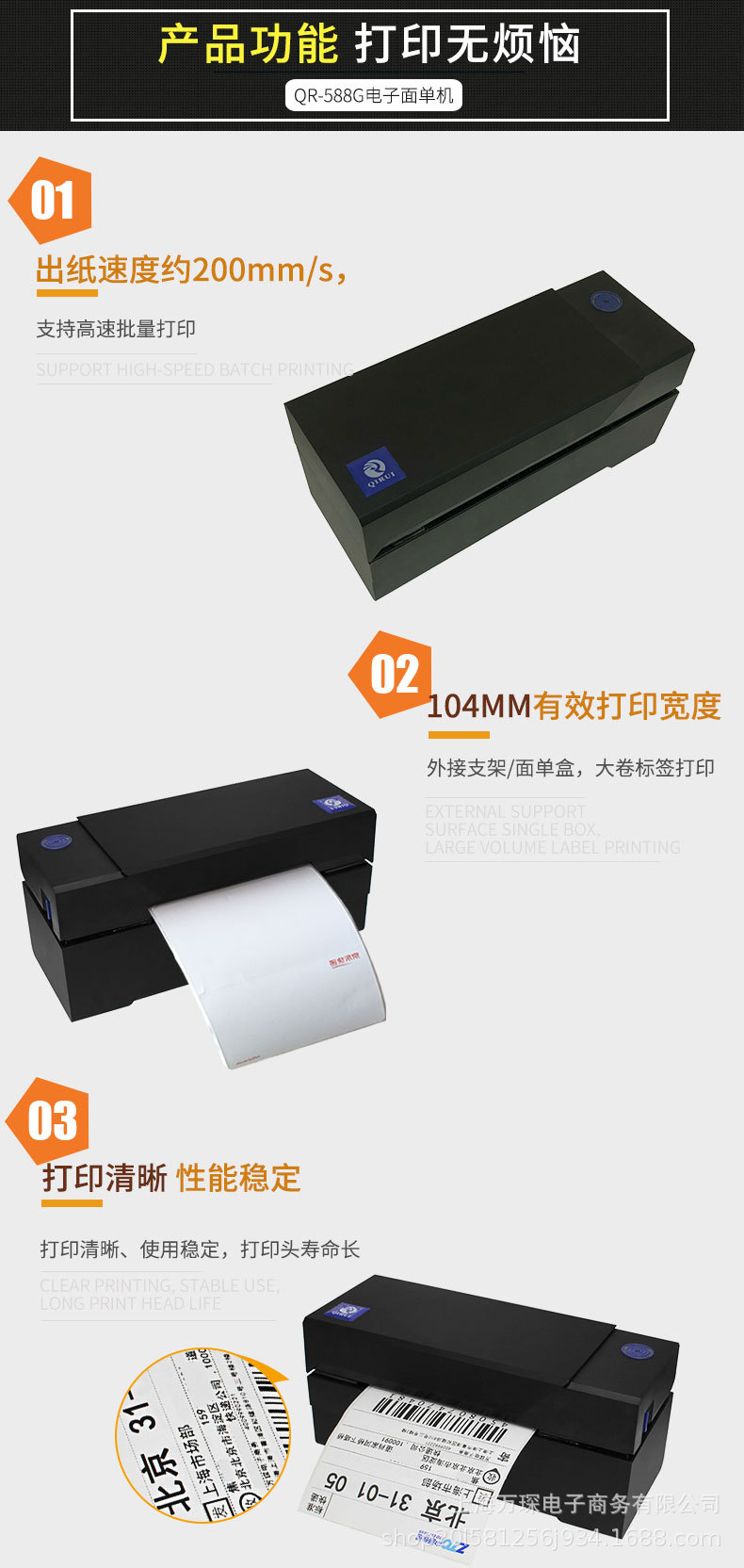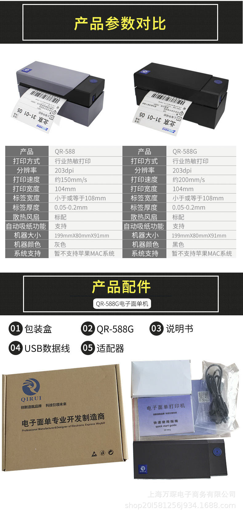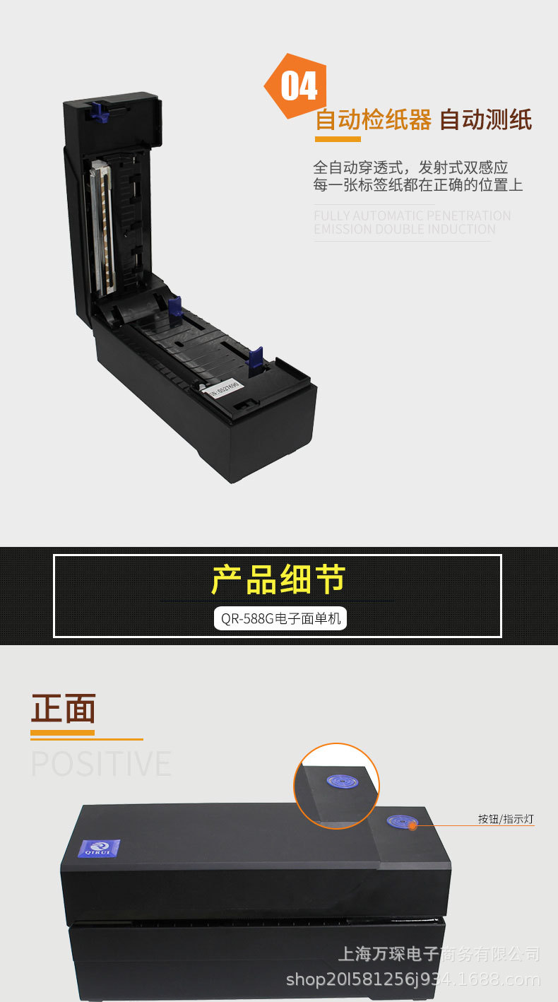 Qirui QR588G 열 라벨 프린터 1 대 및 2 대 단일 고속 물류 전자 단일 라벨 바코드 인쇄스토어 가기